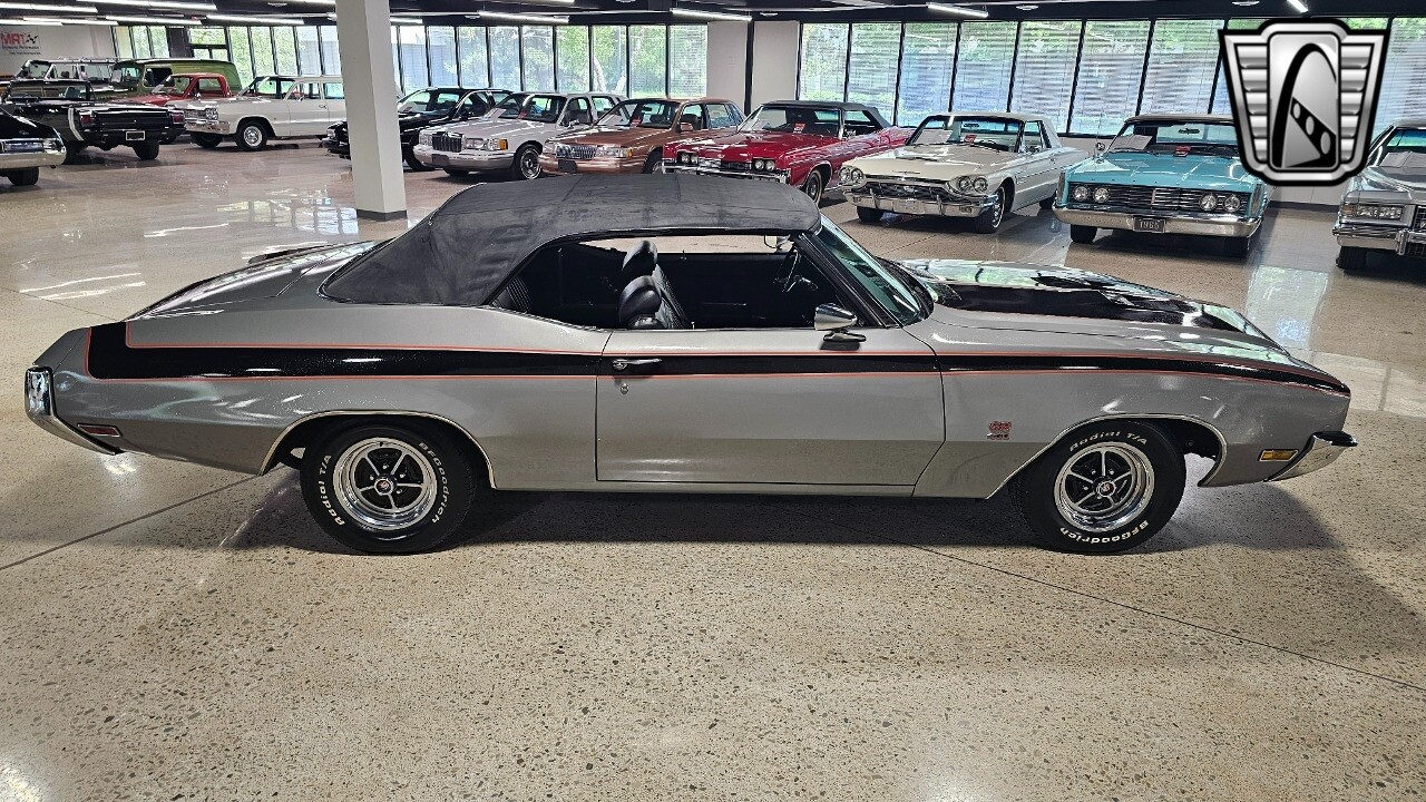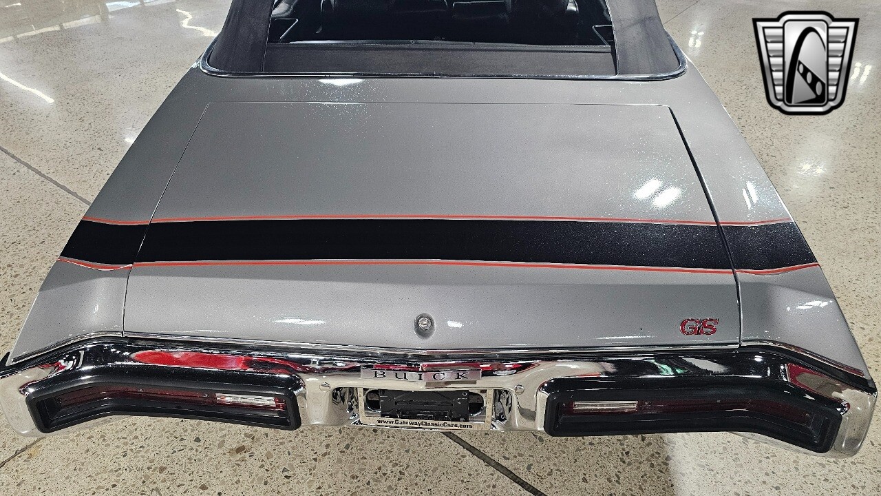 Gateway Classic Cars of Detroit is excited to present this 1972 Buick GS Convertible! This Gran Sport epitomizes the pinnacle of automotive allure, a true gem in the sea of vintage cars. Its distinctive grey exterior, accentuated by bold black stripes adorned with striking red detailing, commands attention and admiration at every turn. Stepping inside, the luxurious black vinyl interior welcomes you with open arms, offering a haven of comfort and sophistication.