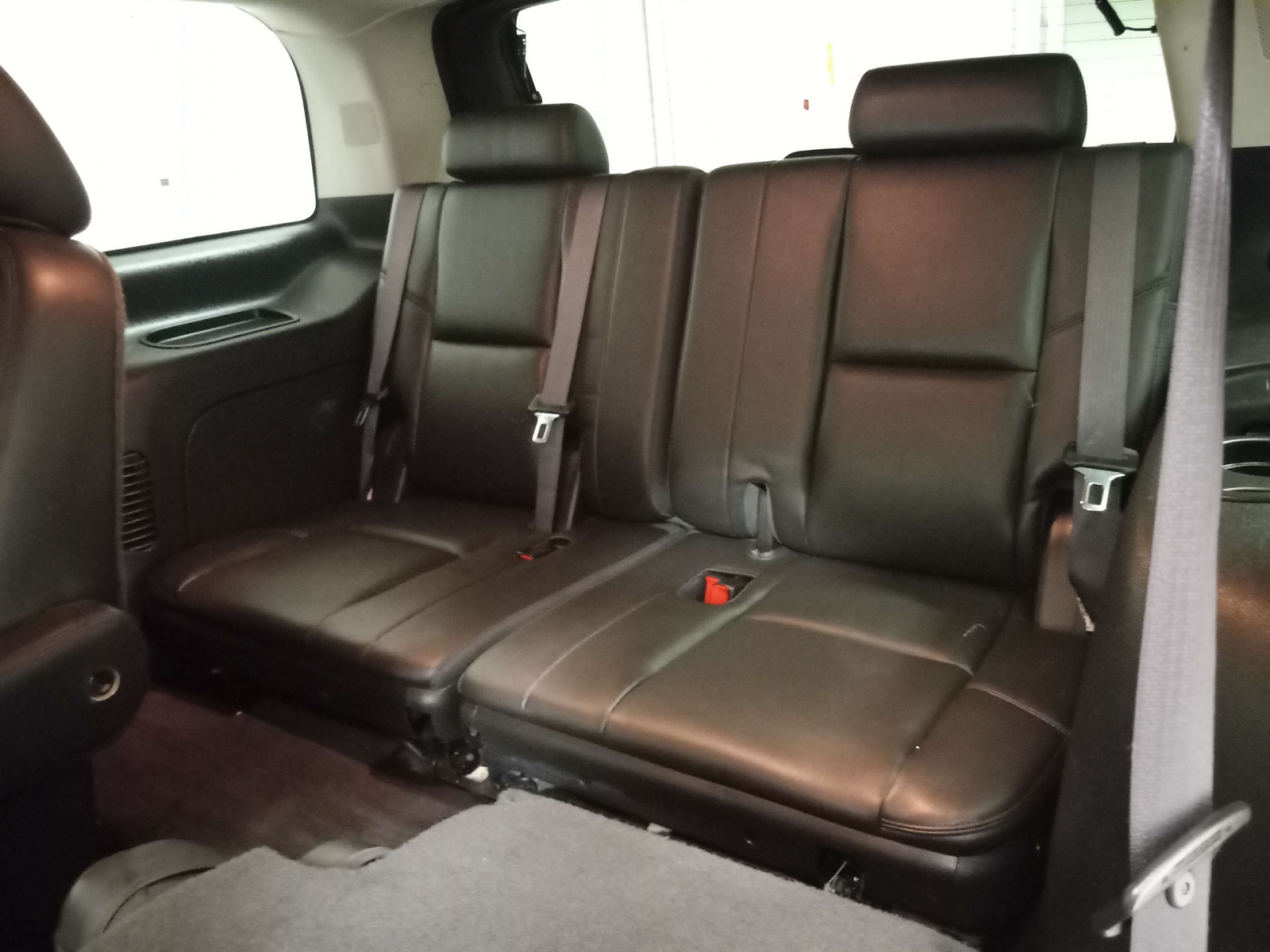Safety belts, first and second row belts to body, third row belts to seat, lap and shoulder all seating positions