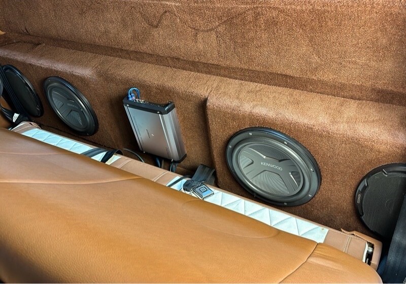 Step inside, and you'll be greeted by a custom brown leather interior that exudes elegance and sophistication. Diamond-stitched cream inserts on the seats and headliner elevate the cabin to new levels of luxury, enveloping you in comfort and style as you embark on your next adventure.