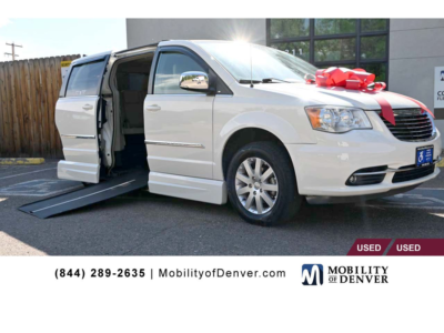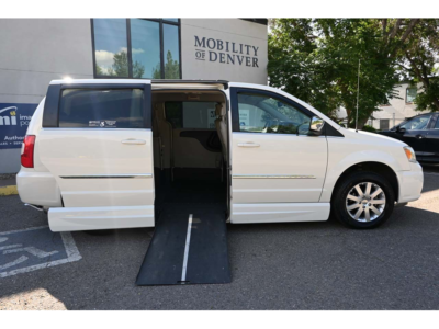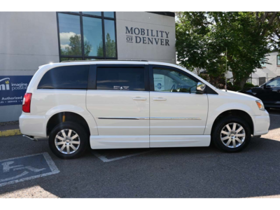 Door Opening Height: 56" and width: 29". 2011 Chrysler Town & Country Touring-L VMI NorthStar Side Entry van for sale. This disability equipped handicap wheelchair accessible ramp van is ideal for wheelchair users and drivers. The front seats are removable for a wheelchair user to sit up front or in the second row. Seat up to 5 + a wheelchair with the full third row of seats in the rear. This van has the power in-floor solid aluminum ramp and includes a set of Q'Straint wheelchair tie-down straps with floor rails throughout. This low miles, clean van runs very well and was well maintained by it's previous owners. It also features: White exterior, tan leather interior, 15in alloy wheels, tires have 95% tread life left, power front seats, AM/FM/CD Stereo, Hot heat and cold AC with Rear controls, power windows, key-less remote with power locks, power windows and mirrors, cruise control, dual power rear sliding doors, traction control, stability control, 4-wheel ABS system, front and rear air bags, efficient 3.0L V6 Chrysler motor with front wheel drive, and much more. This vehicle is currently available for sale at Mobility of Denver, located at: 2311 S Platte River Drive, Denver CO 80223. We don't charge a Dealer Handling Fee and are now your mobility one-stop-shop. Just give us a call as we offer it all: sales, service, parts, and rentals. Open M-F 9am - 6pm. Sat by appt. Call 303-351-7379