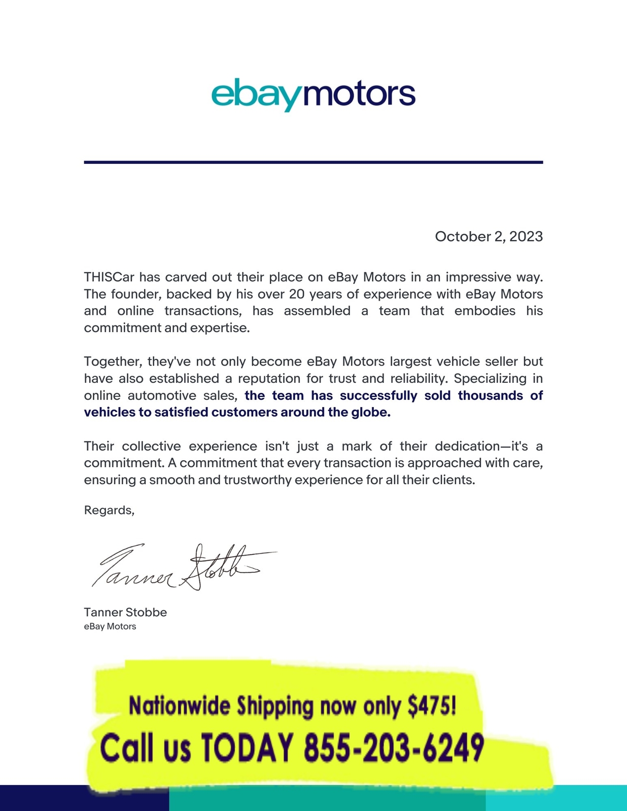 Notice to Bidders: The vehicles we list for sale on eBay are owned by THIScar and/or our retail partners and are also for sale at our collective retail locations nationwide. As a result, vehicles may sell locally while the listing is still active.