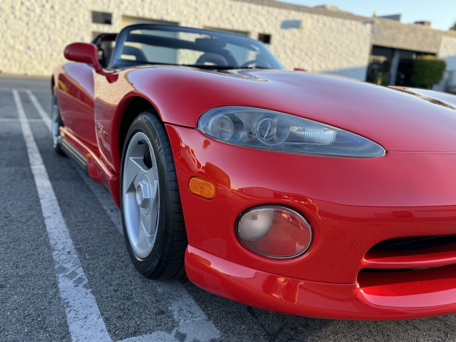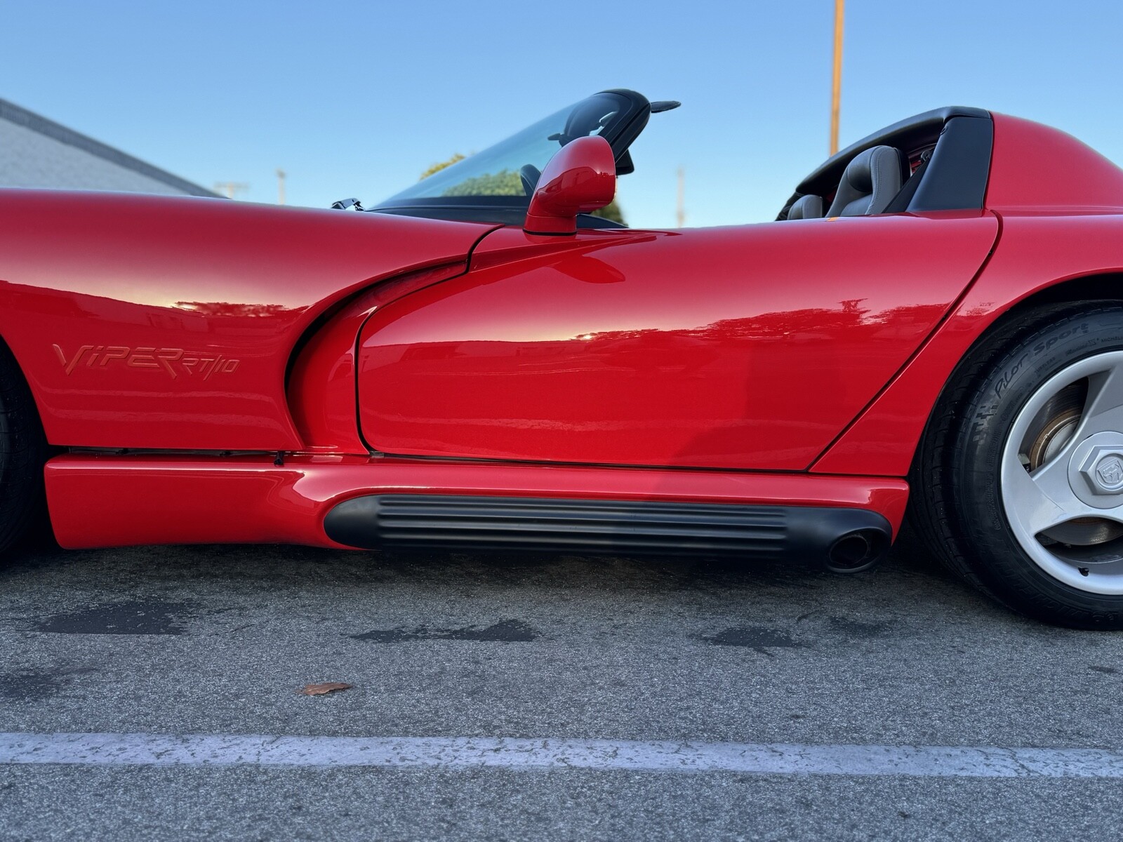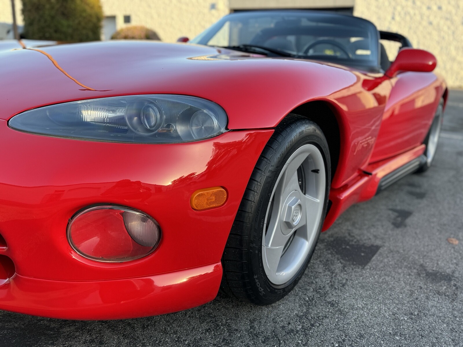 Aside for a couple of small typical flaws this serpent is in showroom condition, "typical" because most all 1992 RT/10's have them. There are some paint flaws/fish scaling in certain areas where you find fiber glass and/or curves. The only paint work we performed was the front bumper, because it had a lot of deep scrapes, and both rockers and that's because they tend to bubble up and if left untreated, they'll crack the paint and also oxidize. I simply had all 3 repainted professionally. Aside from that, no cosmetics, all original factory paint, interior, down to the tires.