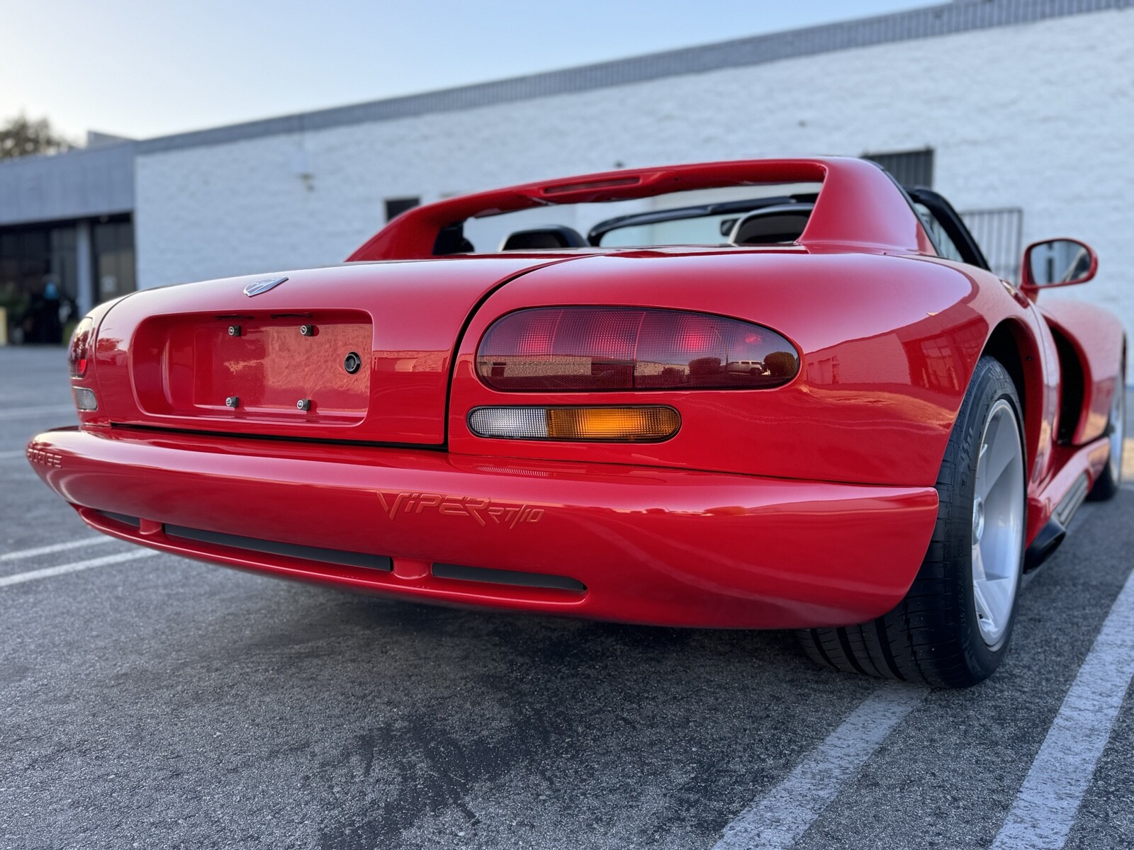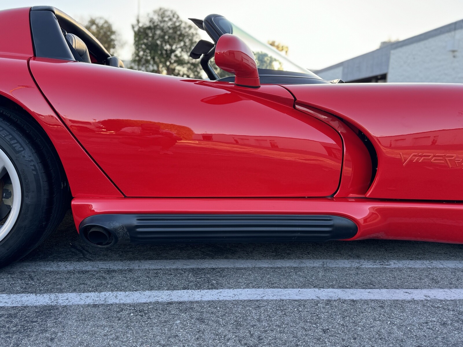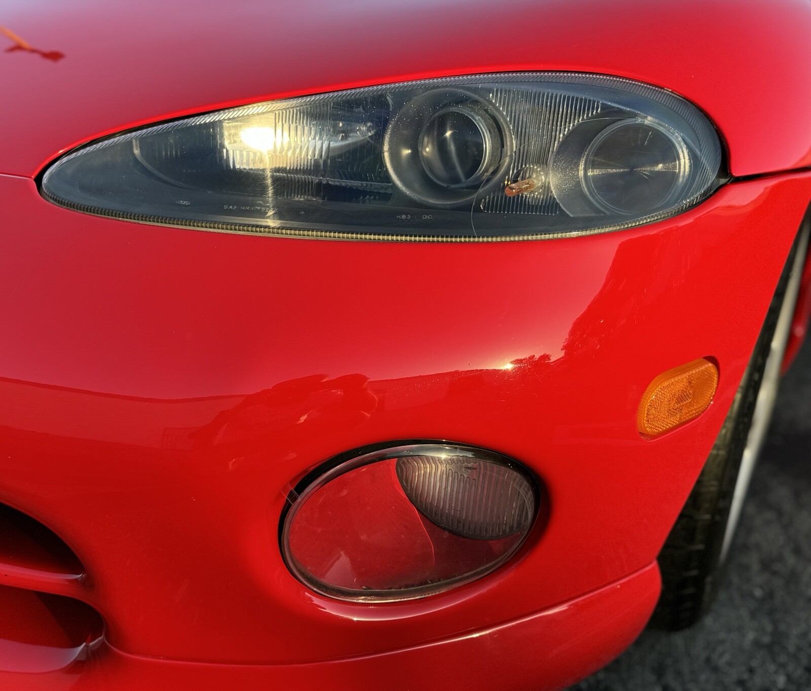 Aside for a couple of small typical flaws this serpent is in showroom condition, "typical" because most all 1992 RT/10's have them. There are some paint flaws/fish scaling in certain areas where you find fiber glass and/or curves. The only paint work we performed was the front bumper, because it had a lot of deep scrapes, and both rockers and that's because they tend to bubble up and if left untreated, they'll crack the paint and also oxidize. I simply had all 3 repainted professionally. Aside from that, no cosmetics, all original factory paint, interior, down to the tires.