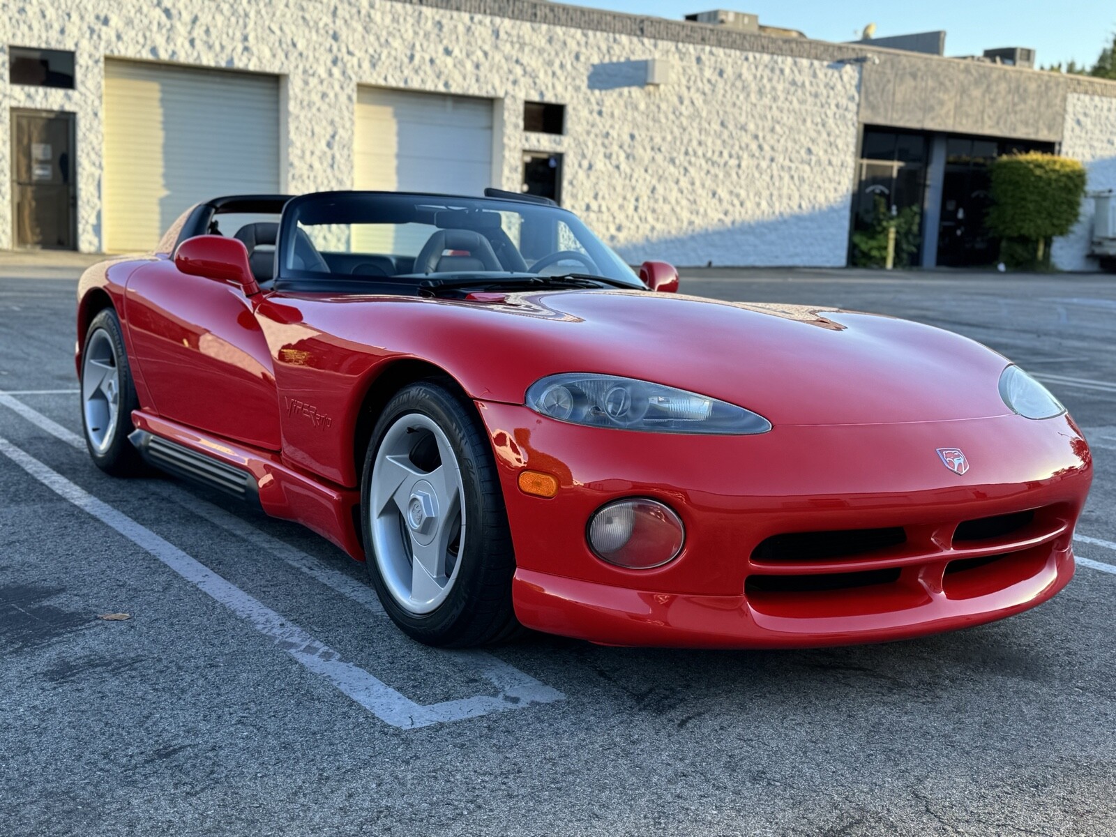 The first-generation Viper was designed in-house at Chrysler by Tom Gale and utilizes composite body panels over a tubular steel space-frame chassis. This example is finished in Viper Red (PRN) and features fog lights, a removable soft vinyl top, a removable rear window, zip-up vinyl side windows, a tonneau cover, a forward-opening clamshell hood, and side-exit exhaust outlets. The 17? tri-spoke alloy wheels are mounted with Michelin XGT Z tires measuring 275/40 up front and 335/35 out back. The RT/10 is equipped with power-assisted rack-and-pinion steering, a four-wheel independent suspension, and four-wheel vented disc brakes with front Viper-branded calipers. 1992 models were not equipped with ABS. The 8.0-liter OHV V10 was factory rated at 400 horsepower and 450 lb-ft of torque. Power is sent to the rear wheels through a Tremec T-56 six-speed manual transmission and a limited-slip differential.Vehicle Details