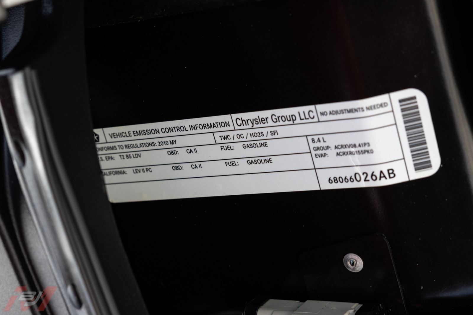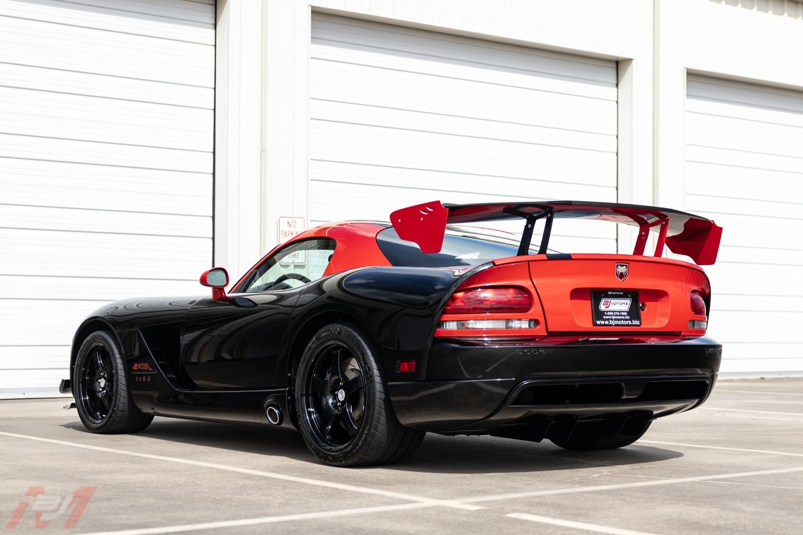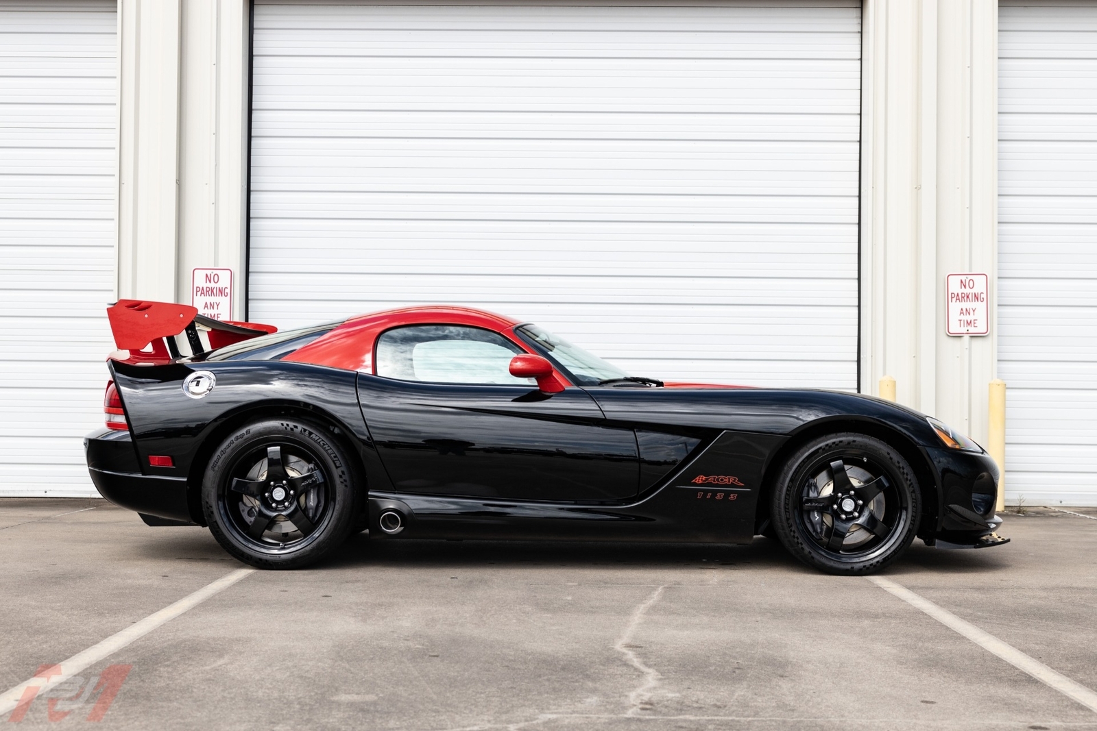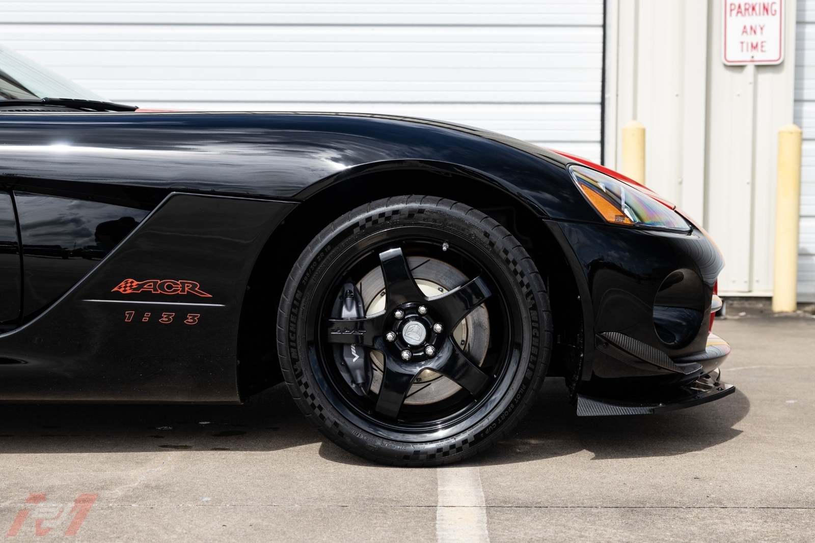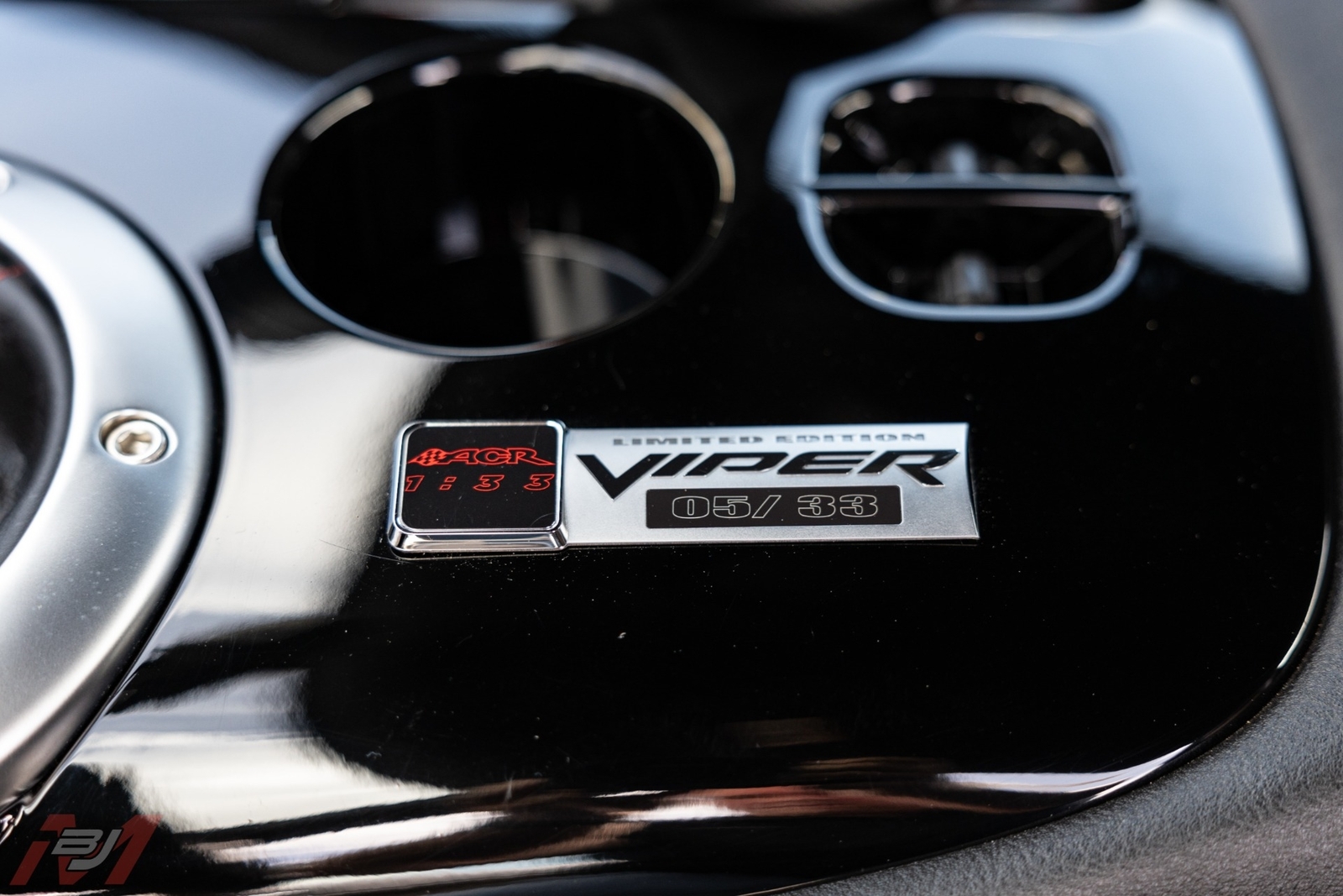 BJ Motors is proud to offer this 2010 Dodge Viper ACR 1:33 Edition finished in Viper Black over Black Interior. This example is car #5 of 33 examples produced to commemorate the 1:33.91 Laguna Seca Lap record set by the Viper in 2010. Each example features Viper Black Exterior Paint combined with a Red Top and Black Drivers Stripe, along with OEM Red Sidewinder Wheels, Black Interior with Red Stitching and Accents, as well as a numbered plaque. We had the privilege of selling this example to its 2nd owner back in 2021 with 6,062 miles and were thrilled to have the opportunity to find its next caretaker. This example was fitted with several quality upgrades, including OEM Black Sidewinder Wheels (Red Wheels included), Belanger Headers and Exhaust, and Arrow PCM. Additionally, the car is covered in Paint Protection Film on the Front Bumper, Hood, Front Fenders, Rocker Panels, and Roof. Contact us for more details and dont miss out on this incredible opportunity!