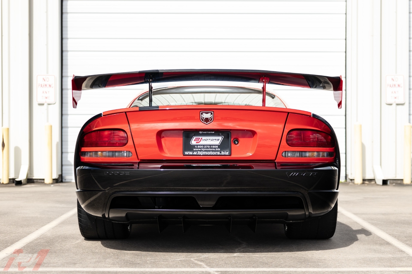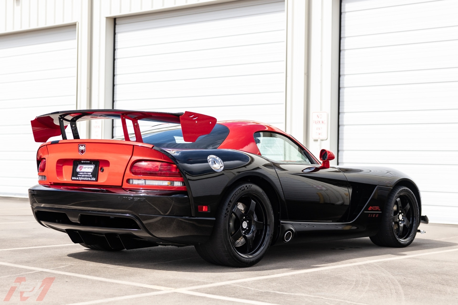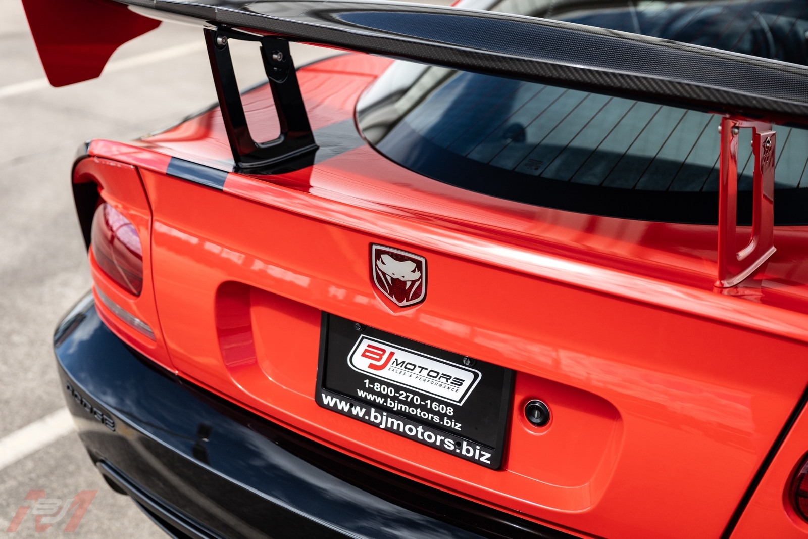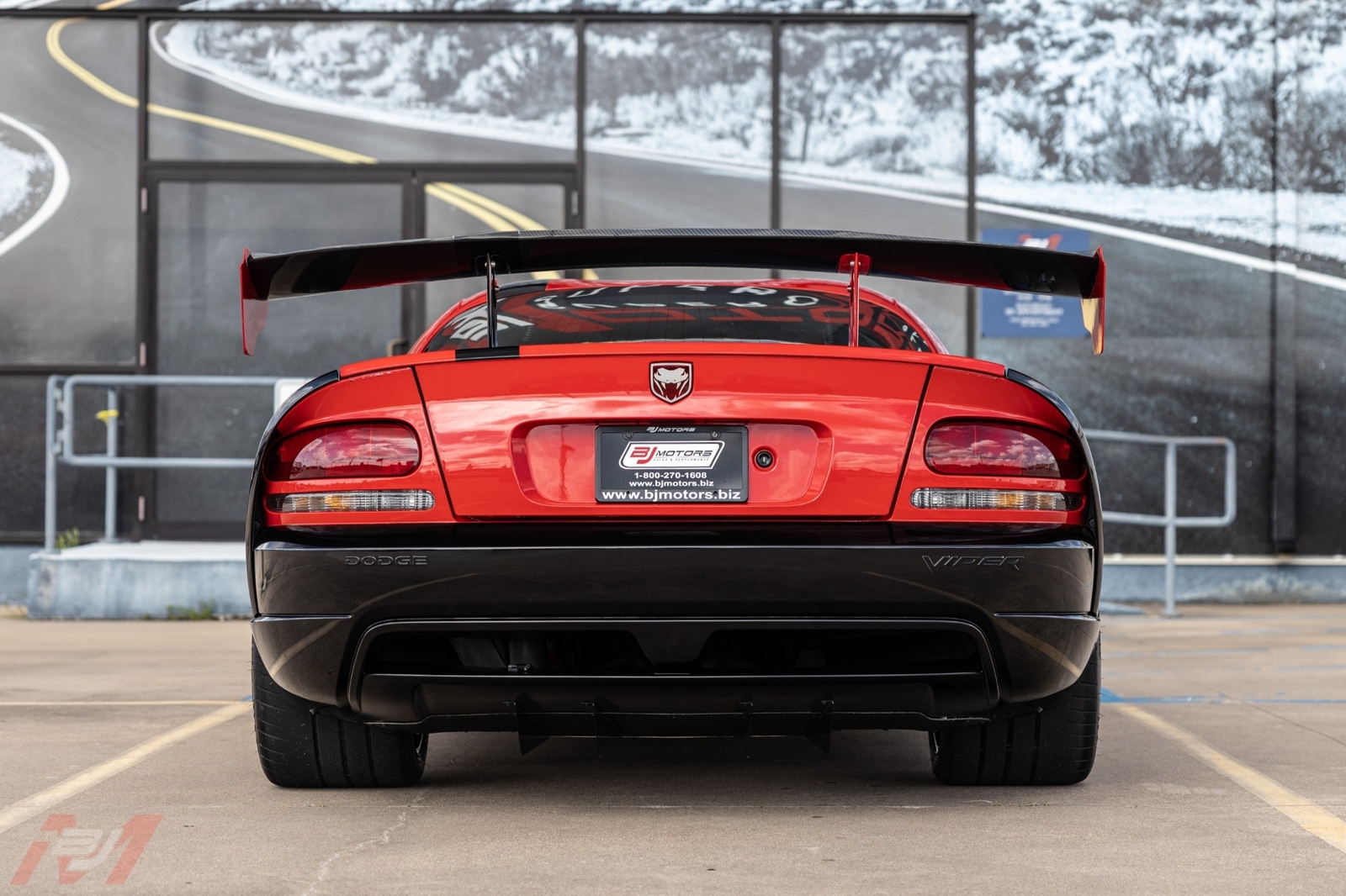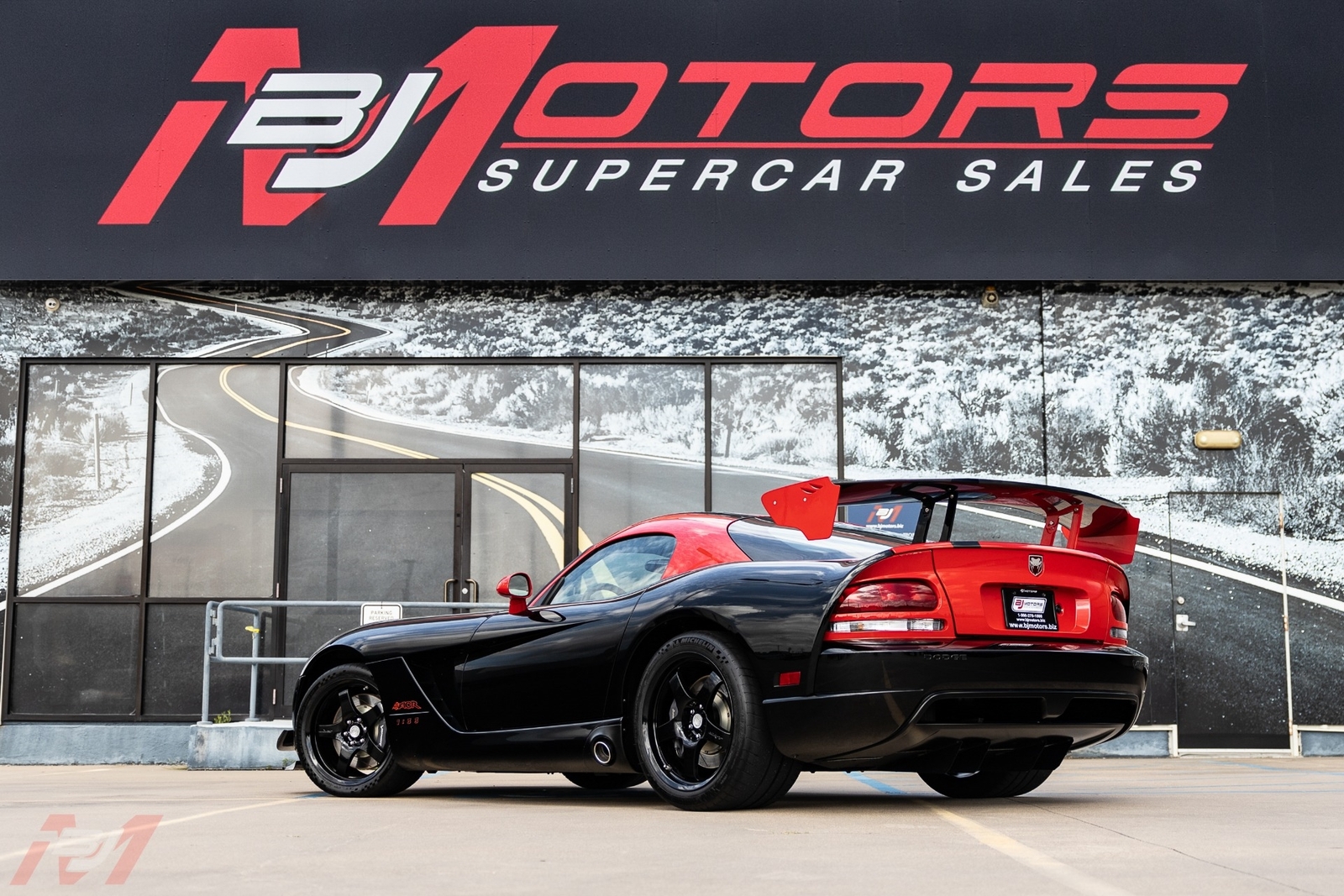 BJ Motors is proud to offer this 2010 Dodge Viper ACR 1:33 Edition finished in Viper Black over Black Interior. This example is car #5 of 33 examples produced to commemorate the 1:33.91 Laguna Seca Lap record set by the Viper in 2010. Each example features Viper Black Exterior Paint combined with a Red Top and Black Drivers Stripe, along with OEM Red Sidewinder Wheels, Black Interior with Red Stitching and Accents, as well as a numbered plaque. We had the privilege of selling this example to its 2nd owner back in 2021 with 6,062 miles and were thrilled to have the opportunity to find its next caretaker. This example was fitted with several quality upgrades, including OEM Black Sidewinder Wheels (Red Wheels included), Belanger Headers and Exhaust, and Arrow PCM. Additionally, the car is covered in Paint Protection Film on the Front Bumper, Hood, Front Fenders, Rocker Panels, and Roof. Contact us for more details and dont miss out on this incredible opportunity!