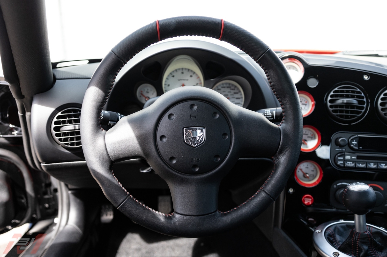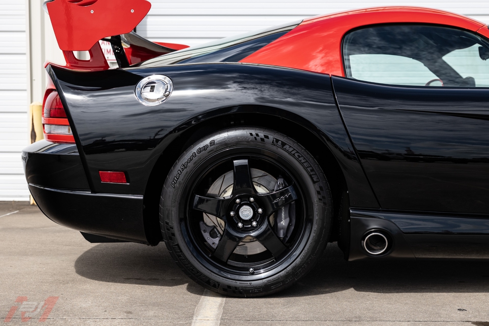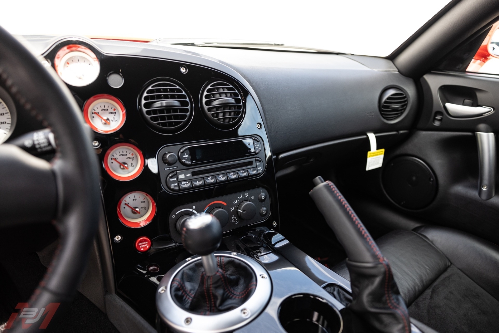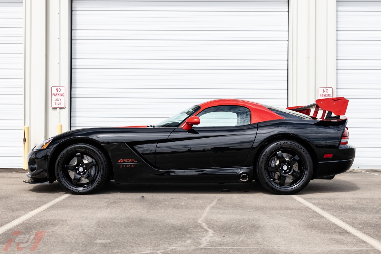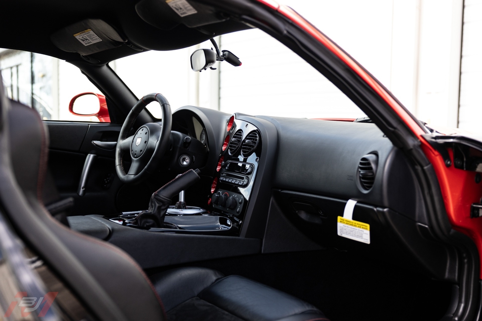 BJ Motors is proud to offer this 2010 Dodge Viper ACR 1:33 Edition finished in Viper Black over Black Interior. This example is car #5 of 33 examples produced to commemorate the 1:33.91 Laguna Seca Lap record set by the Viper in 2010. Each example features Viper Black Exterior Paint combined with a Red Top and Black Drivers Stripe, along with OEM Red Sidewinder Wheels, Black Interior with Red Stitching and Accents, as well as a numbered plaque. We had the privilege of selling this example to its 2nd owner back in 2021 with 6,062 miles and were thrilled to have the opportunity to find its next caretaker. This example was fitted with several quality upgrades, including OEM Black Sidewinder Wheels (Red Wheels included), Belanger Headers and Exhaust, and Arrow PCM. Additionally, the car is covered in Paint Protection Film on the Front Bumper, Hood, Front Fenders, Rocker Panels, and Roof. Contact us for more details and dont miss out on this incredible opportunity!