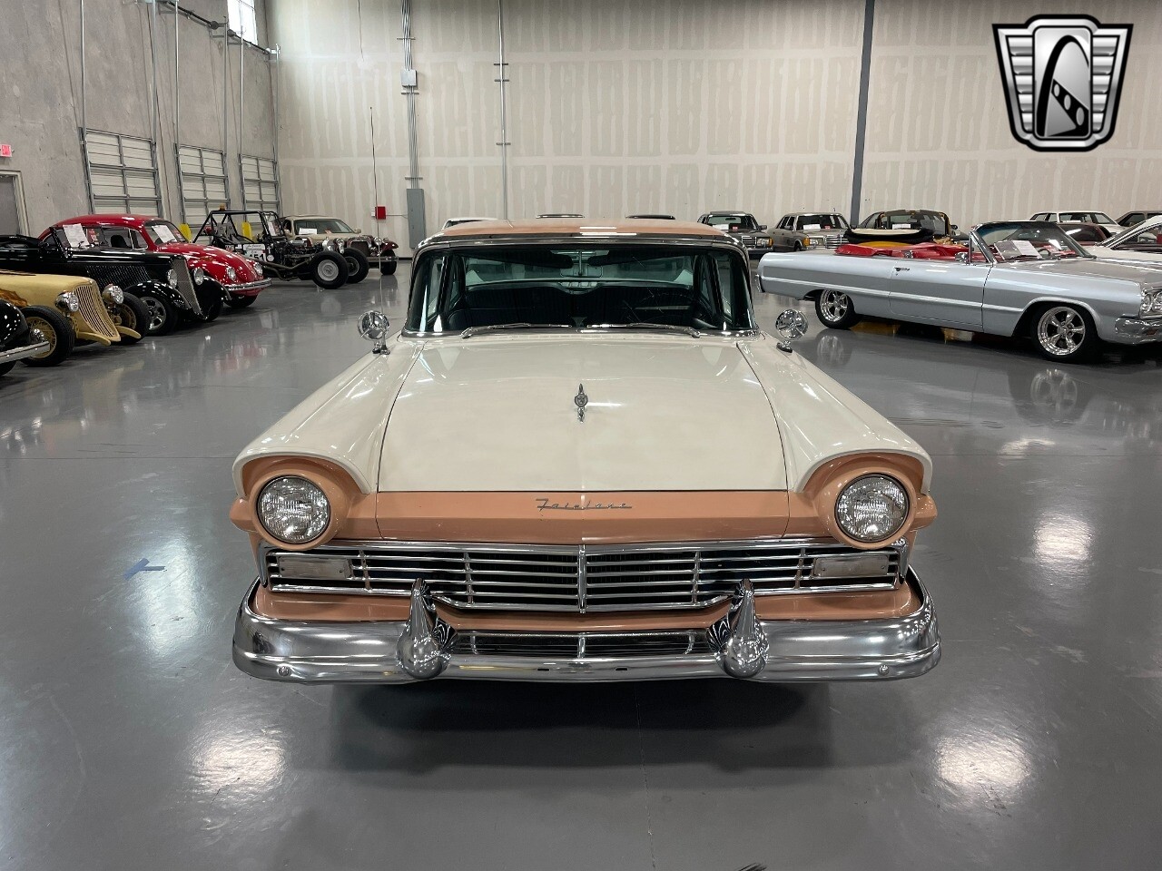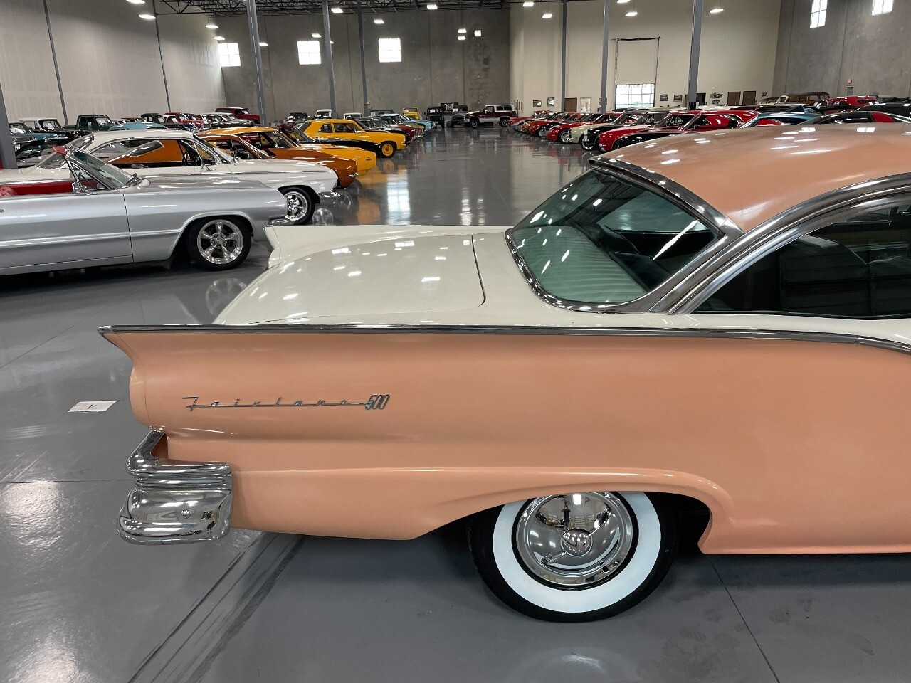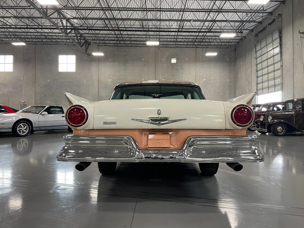 Gateway Classic Cars of San Antonio/ Austin is proud to present this 1957 Ford Fairlane 500, lusciously colored in a unique white/salmon exterior. The two-tone color scheme is tastefully eye-catching, setting it apart from other vehicles on the road. Introduced in 1957, the Ford Fairlane 500 epitomized the era's American automotive ambition, combining luxury, performance, and standout style. This flagship model featured a lower, longer body with distinctive tailfins and lavish chrome detailing, catering to a public eager for glamour and power. Beneath the hood, the Fairlane 500 boasts a 312 CID V8 engine, offering an engaging driving experience that pairs beautifully with its automatic transmission. Smooth and responsive, this car makes every drive an absolute pleasure. In terms of features, this Ford Fairlane 500 is equipped with an AM radio. Enjoy the nostalgia of tuning into your favorite AM stations while cruising down the road. To enhance the driving experience, this classic car comes with power steering, an important feature that ensures easy handling and maneuverability. No need to worry about tight parking spots or tricky turns, this Fairlane handles them with ease. The car rides on radial tires which are known for their durability and stability. Adding to its classic aesthetic, the tires are adorned with signature wide white walls, a nod to the '50s style. Join the ranks of classic car enthusiasts with this distinctive 1957 Ford Fairlane 500. It's a bold statement of style, comfort, and performance, wrapped in a beautiful package that's sure to turn heads wherever you go..