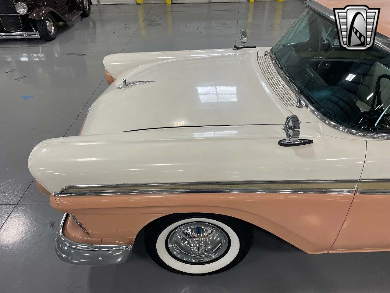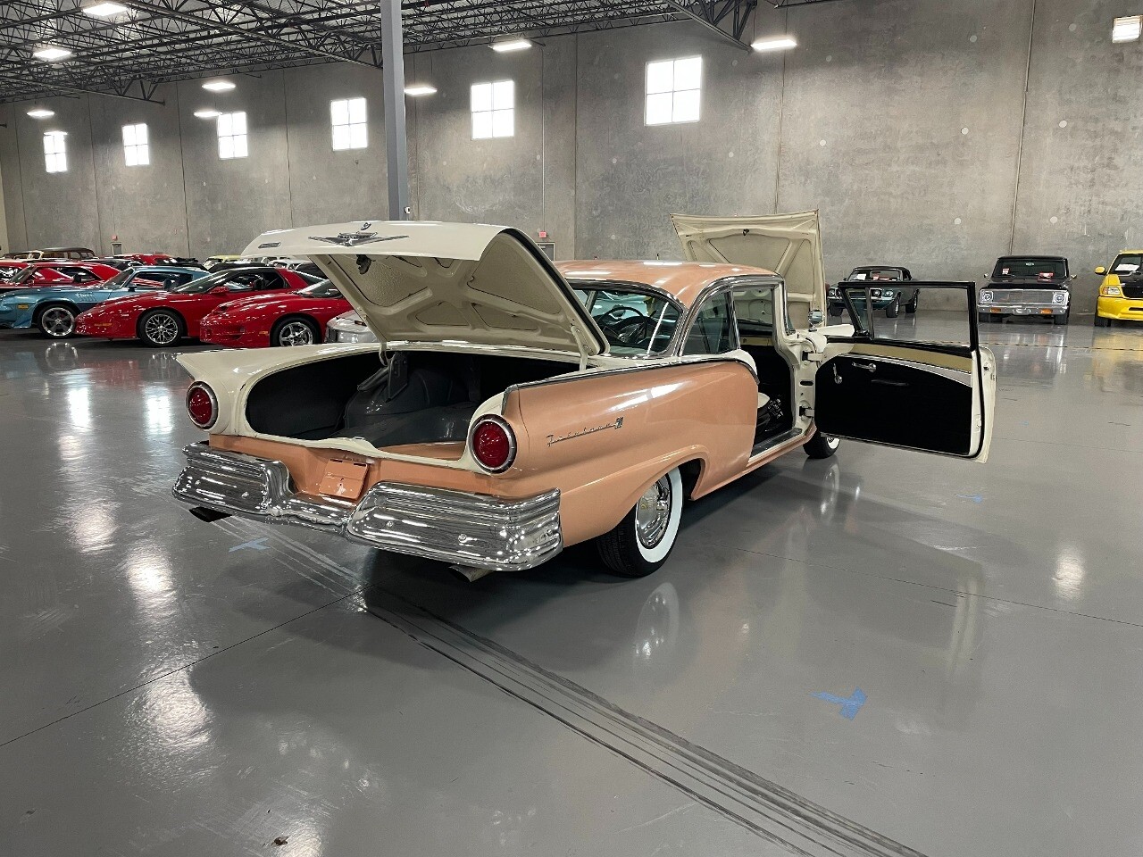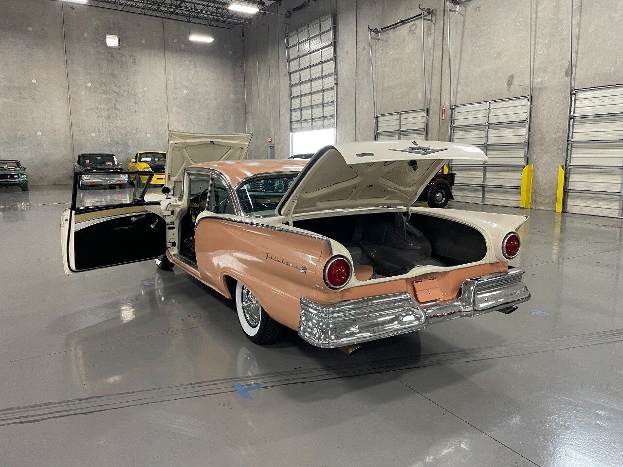 Gateway Classic Cars of San Antonio/ Austin is proud to present this 1957 Ford Fairlane 500, lusciously colored in a unique white/salmon exterior. The two-tone color scheme is tastefully eye-catching, setting it apart from other vehicles on the road. Introduced in 1957, the Ford Fairlane 500 epitomized the era's American automotive ambition, combining luxury, performance, and standout style. This flagship model featured a lower, longer body with distinctive tailfins and lavish chrome detailing, catering to a public eager for glamour and power. Beneath the hood, the Fairlane 500 boasts a 312 CID V8 engine, offering an engaging driving experience that pairs beautifully with its automatic transmission. Smooth and responsive, this car makes every drive an absolute pleasure. In terms of features, this Ford Fairlane 500 is equipped with an AM radio. Enjoy the nostalgia of tuning into your favorite AM stations while cruising down the road. To enhance the driving experience, this classic car comes with power steering, an important feature that ensures easy handling and maneuverability. No need to worry about tight parking spots or tricky turns, this Fairlane handles them with ease. The car rides on radial tires which are known for their durability and stability. Adding to its classic aesthetic, the tires are adorned with signature wide white walls, a nod to the '50s style. Join the ranks of classic car enthusiasts with this distinctive 1957 Ford Fairlane 500. It's a bold statement of style, comfort, and performance, wrapped in a beautiful package that's sure to turn heads wherever you go..