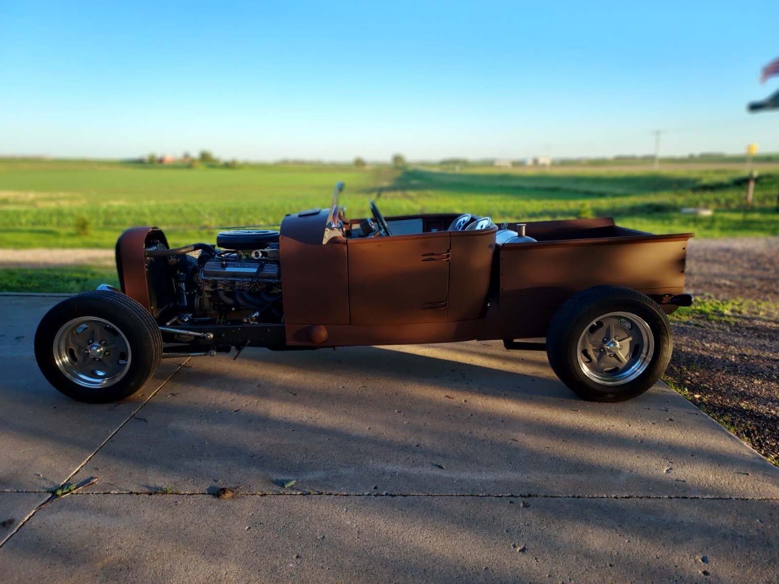 1922 Studebaker Roadster. Hotrod/Ratrod whichever you want to call it. Body is all steel, no fiberglass. Bucket is '22 Studebaker and is Titled as such. Bed is custom built steel. Olds 350 Rocket w/TH350 auto. GM 10 bolt rear w/ triangulated 4 link and coil overs. Front is eliptical parallel leafs springs w/ panhard bar and tube Axle. Lots of cool little details. Car starts, runs, drives and stops as it should. Disk brakes in front w/ drums in the rear. 17" front 18" rear AR Salt Flats. Suicide doors and new bomber seats ( drivers side has slider for adjustments. Custom lexan windshield with hand aluminum frame. Studebaker wheel and Plymouth dash cluster. All guages work,except fuel, all lights work, headlights high/low, signals front and rear. Fun little cruiser for car shows etc. Nice entry level hotrod/ratrod/streetrod. Body is all straight. Could use some tweeking for alignments of doors etc and paint and it would be killer. Hand pinstriping on breather and tailgate. Gate does not function. As far as HotRods go, it's pretty nice, as far as a RatRod...its beautiful. I would say it's more along the lines of a traditional 40's 50's HotRod but some people say because it's hand made its a RatRod. Nothing ratty about it though. I can send videos of start up etc and answer whatever questions I can ( I've only owned it a short time as I took it on a trade. Would love to keep it but I have a '29 Model A and other projects so I need the room. Can assist with loading. Payments are cash, cashiers check or personal check once cleared. No PayPal. Thanks for looking.
