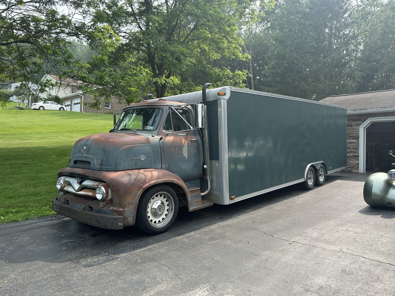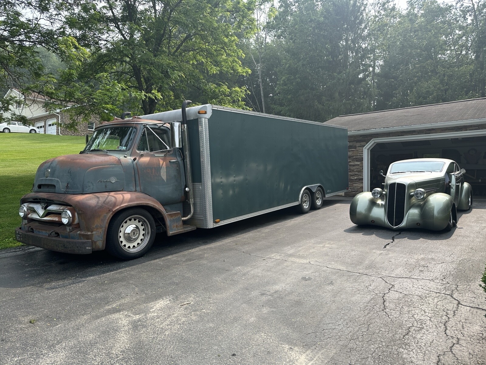 This custom cab over has been extensively modified by one of the top builders in our area. He has built many show winners and magazine cover cars. With the custom frame mated to a 24 foot car hauler. It runs and drives smooth we used it to travel too many shows up to 300 miles away Has a Cadillac front clip from a Front Wheel Dr., El Dorado 500 in.3 engine that was recently refreshed. This thing is the talk of the town when it’s parked and gets many thumbs up, pictures snapped, and horns honk when you’re driving down the street! I’m looking for interesting trades and cash offers. I will not accept an offer without a deposit beforehand. Message me along with your offer. The only way I’ll accept an offer is if I have a deposit first