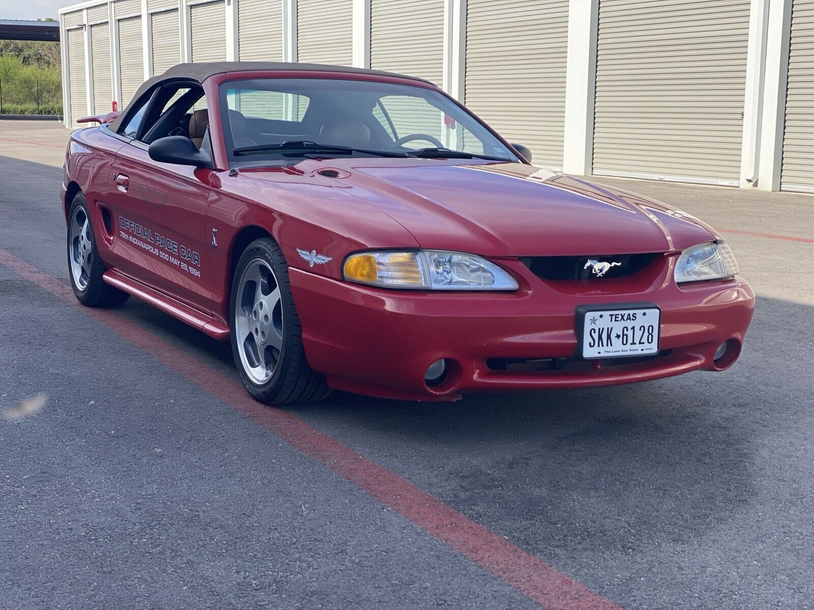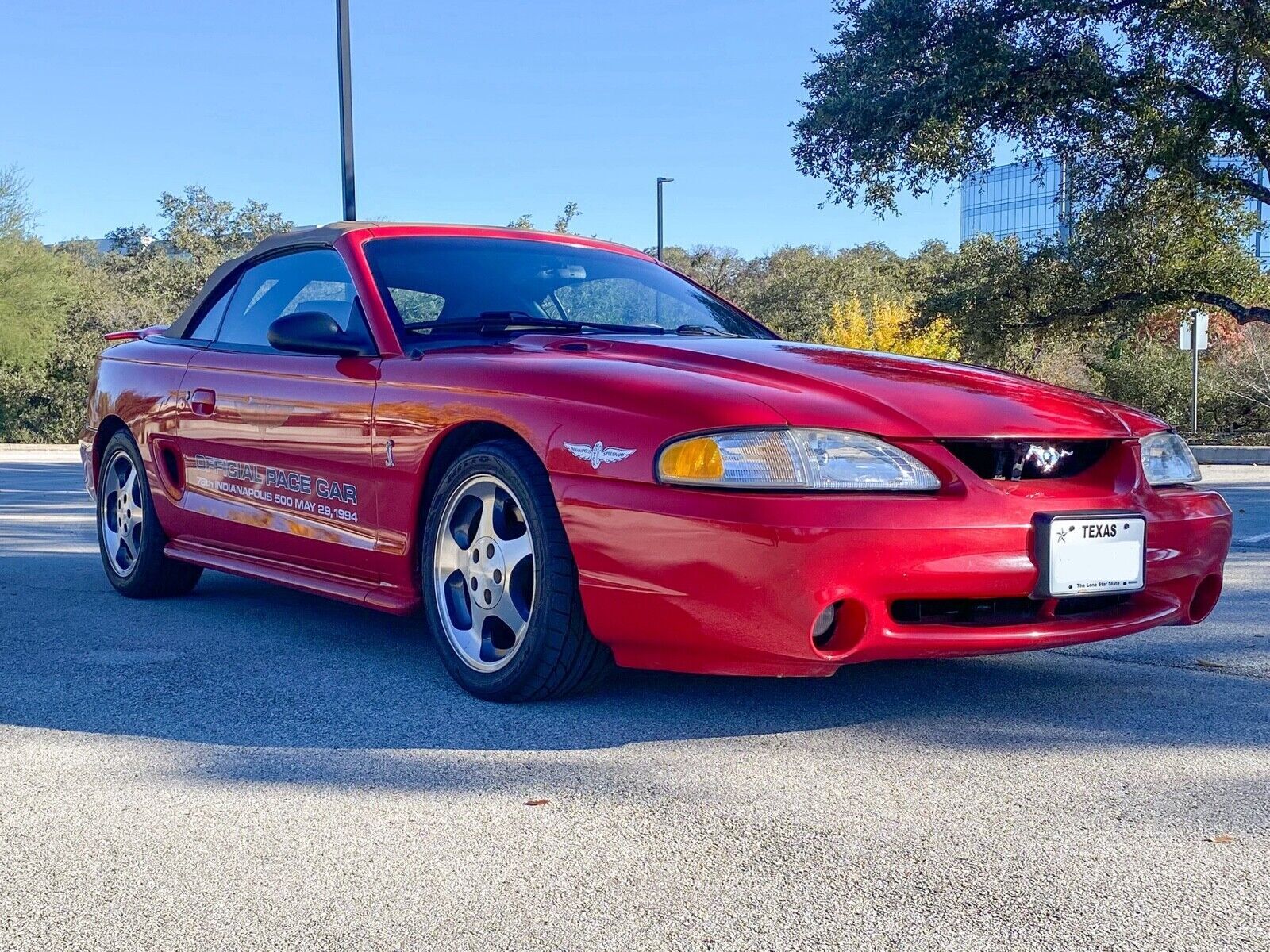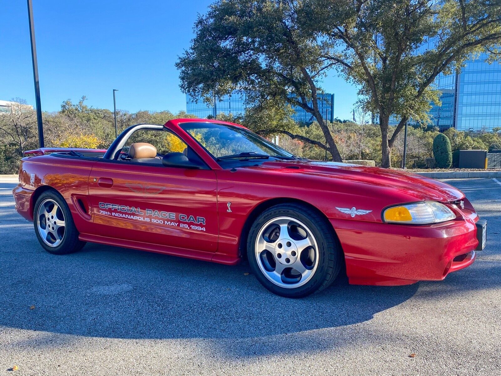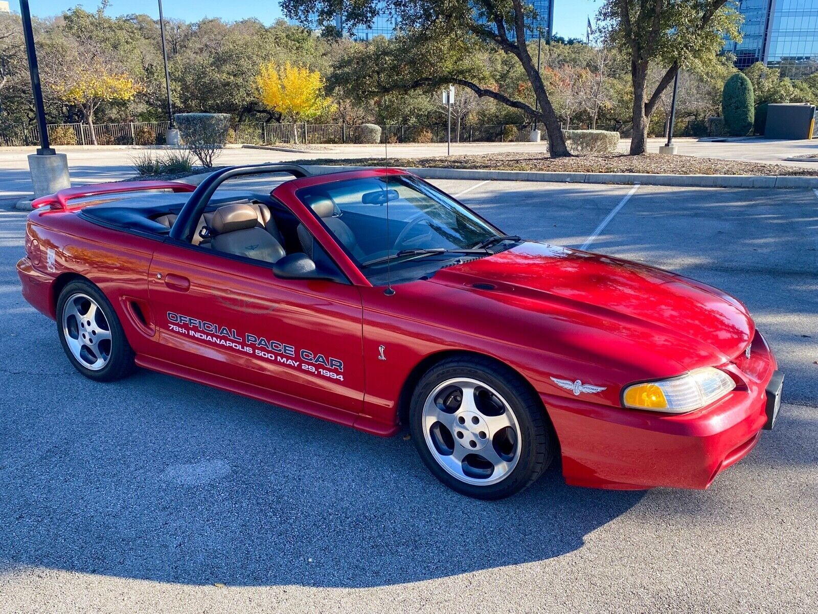 1994 Ford Mustang Cobra Pace Car Edition No. 744/1000 with 89,970 original miles on original 302 engines. 5 speed manual with original leather interior. Driver side front seat has worn with use but in decent shape for the miles and age. Passenger and back seats in great condition. Carpet is intact but does have stains from use. The car mats have absorbed most of the stains and show some age. 5 speed manual transmission shifts strong and quickly. New Nitto 555 tires were added less than 500 miles ago. Original spare and convertible cover are also in good shape and included. You can see video of the car here: https://youtu.be/4pn5E_BRIck?si=7hWFpeswLQLdO50Y