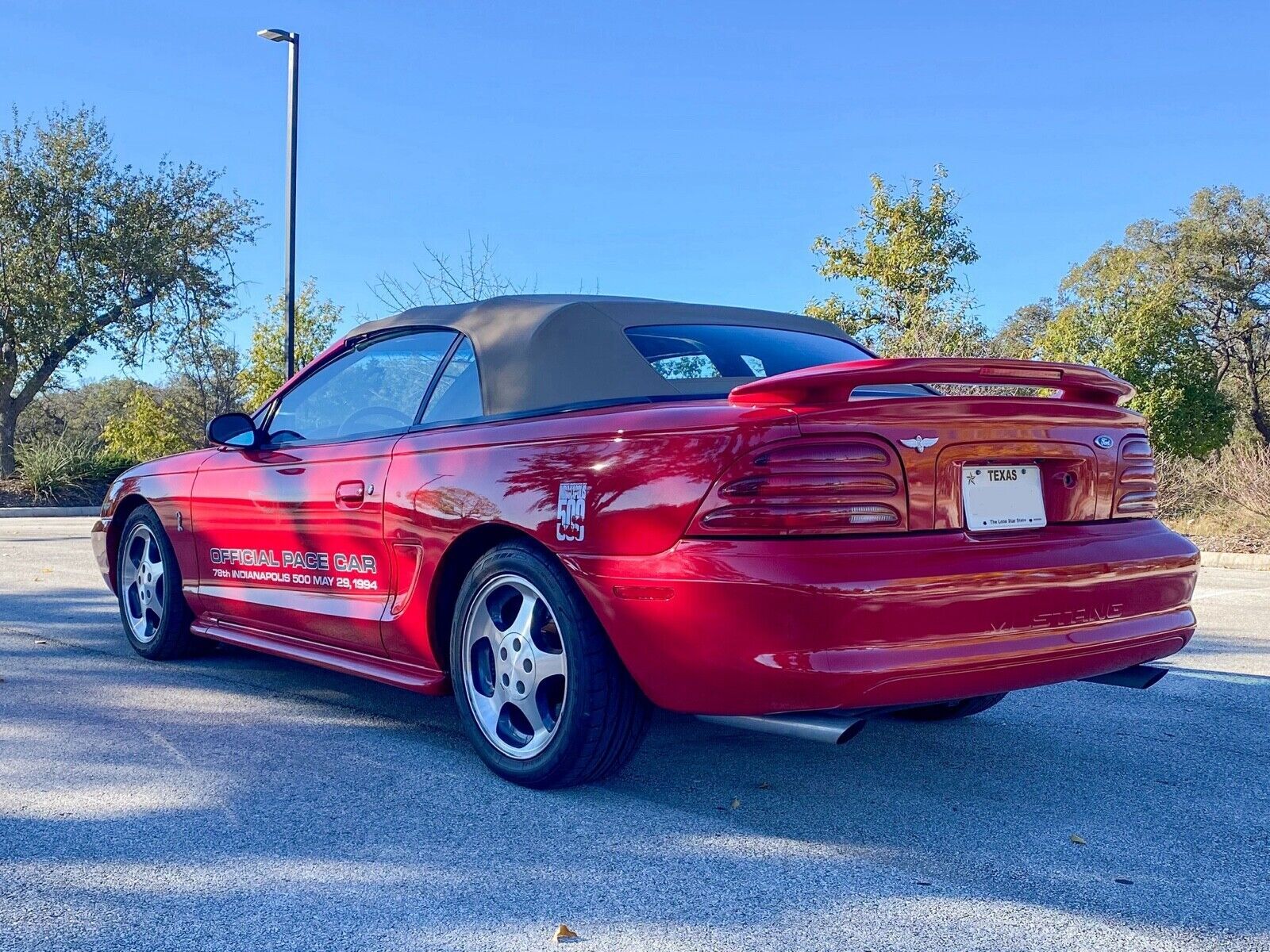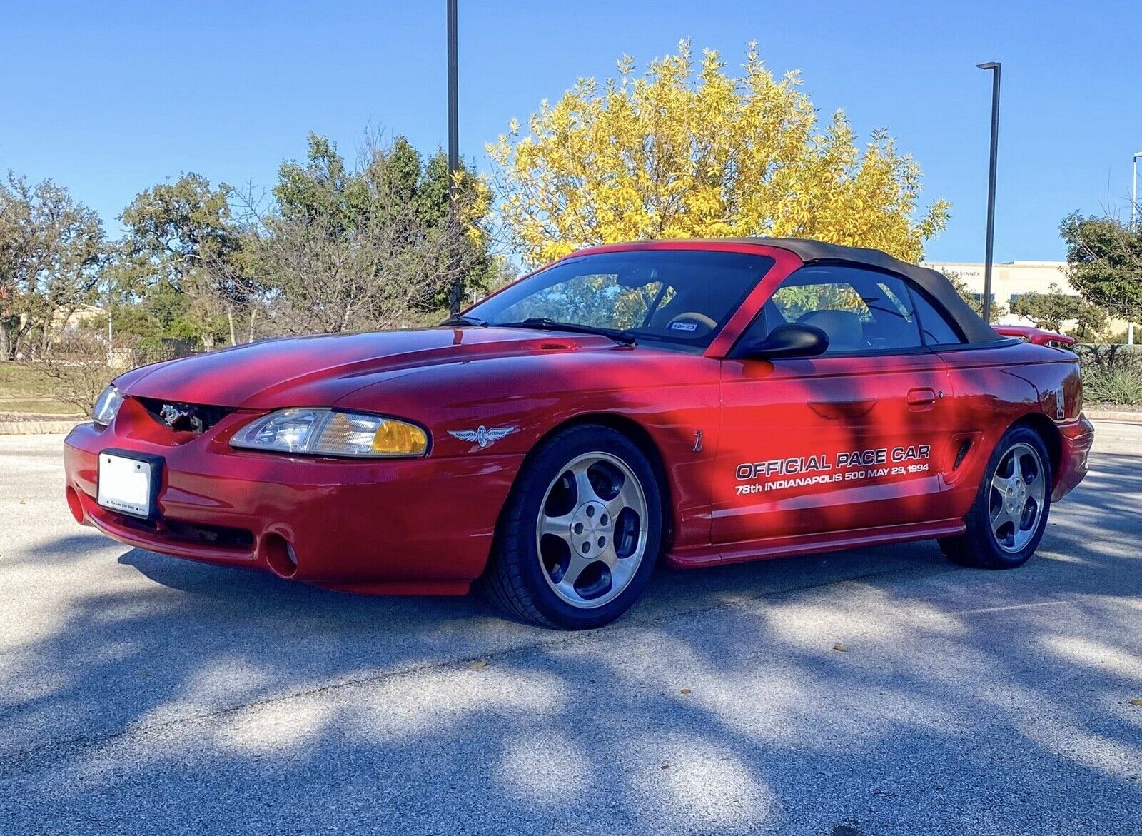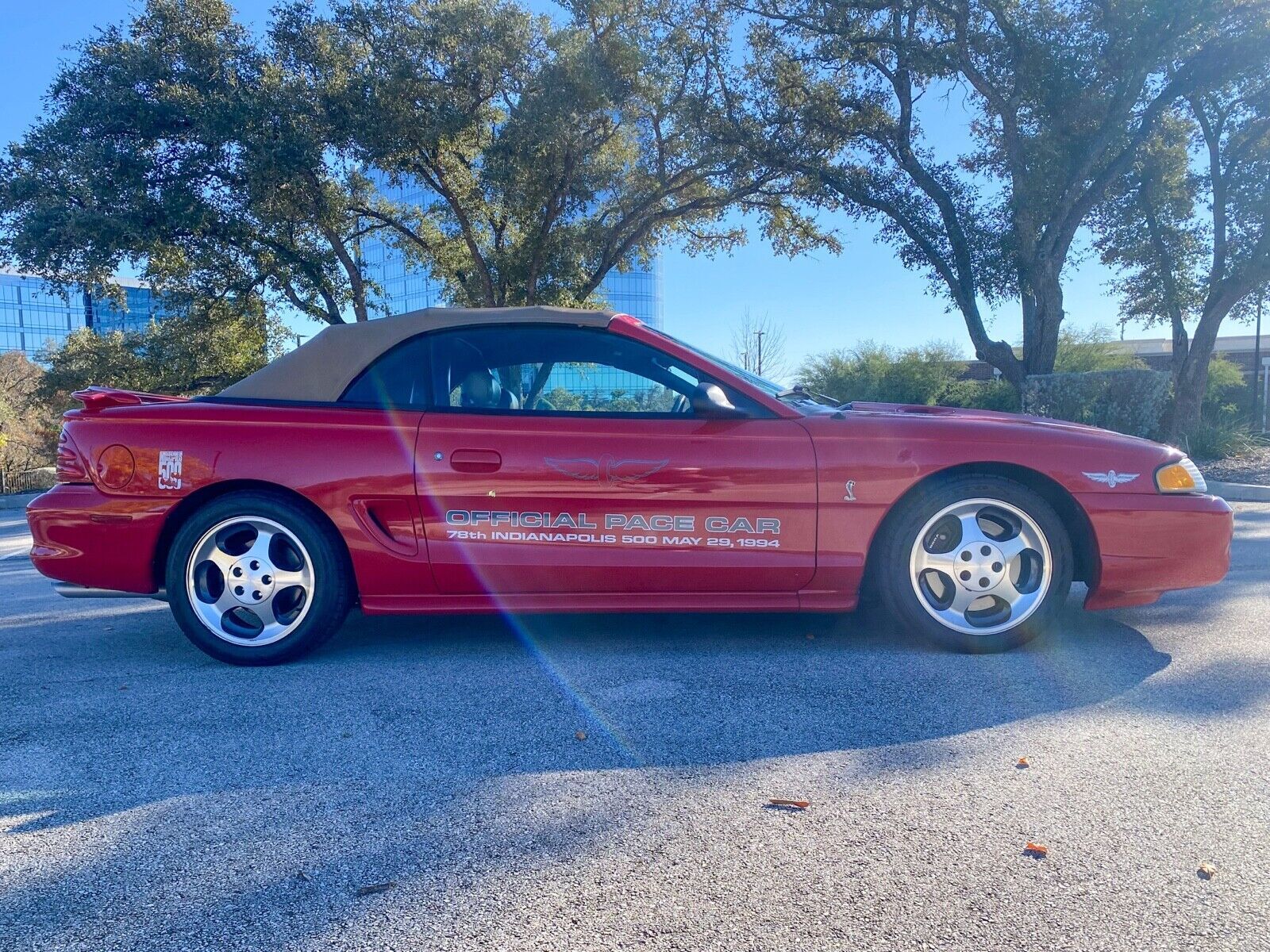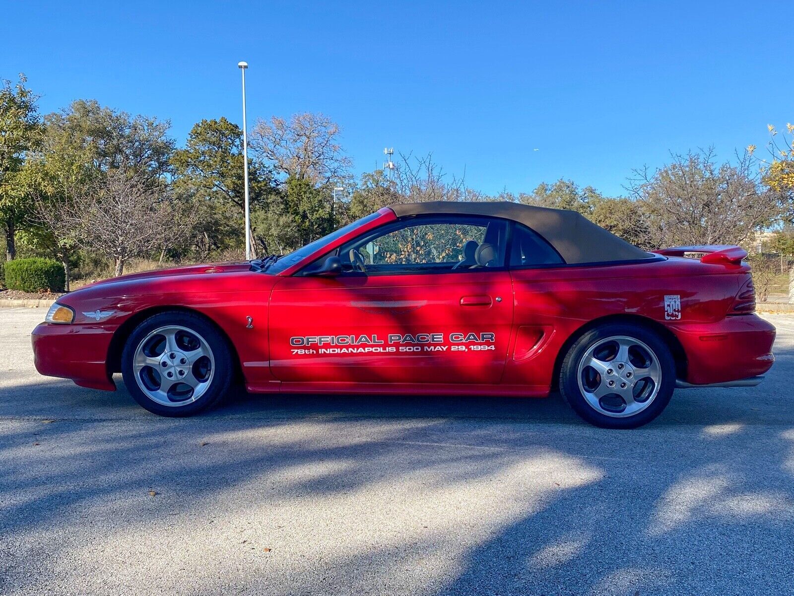 1994 Ford Mustang Cobra Pace Car Edition No. 744/1000 with 89,970 original miles on original 302 engines. 5 speed manual with original leather interior. Driver side front seat has worn with use but in decent shape for the miles and age. Passenger and back seats in great condition. Carpet is intact but does have stains from use. The car mats have absorbed most of the stains and show some age. 5 speed manual transmission shifts strong and quickly. New Nitto 555 tires were added less than 500 miles ago. Original spare and convertible cover are also in good shape and included. You can see video of the car here: https://youtu.be/4pn5E_BRIck?si=7hWFpeswLQLdO50Y
