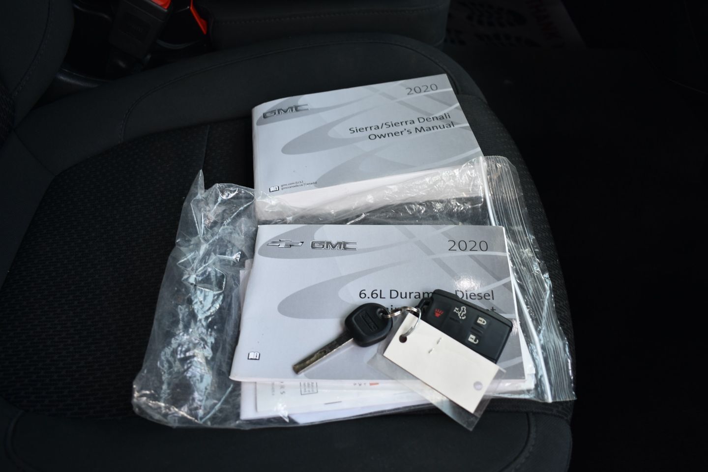 You are looking at a 2020 GMC Sierra 2500HD Crew Cab 4x4. It is powered with a 6.6L Duramax Diesel V8 and Allison automatic transmission. It is equipped with am/fm radio, power windows, power locks, power mirrors, tilt, cruise, spray in bed liner, retractable gooseneck hitch, and receiver hitch. Also included is the owners manuals and one keyless remote.