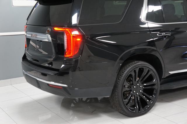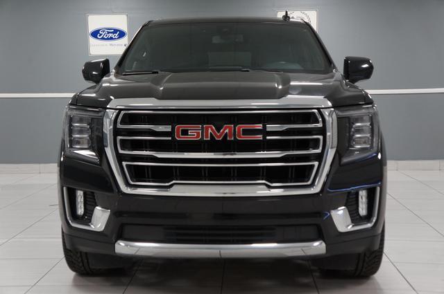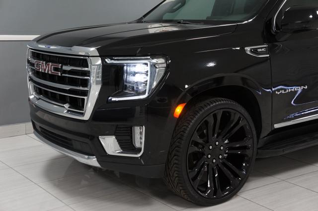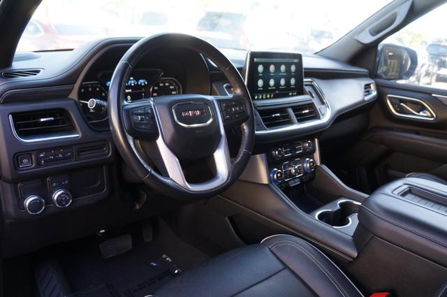 This 2021 Yukon SLT has seating for up to eight passengers with temperature controlled seats and rear a/c. It's equipped with an array of advanced features. The infotainment system comes with a large touchscreen display, offering seamless connectivity and access to various entertainment options. Apple CarPlay and Android Auto compatibility allow you to easily integrate your smartphone for hands-free calling, messaging, and media streaming. Additional features include navigation system, rear entertainment, a custom Bose premium sound system, OnStar, backup camera, park assist and more.