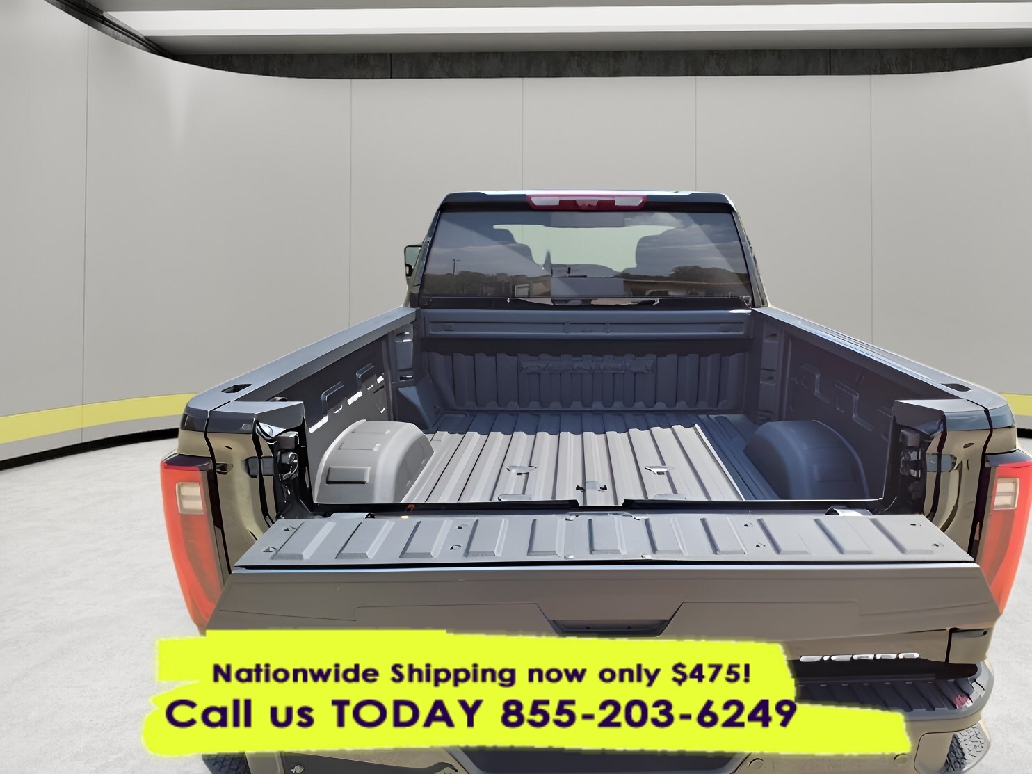 • Bedliner, Spray-on, Pickup bedliner with GMC logo (does not include... spray-on liner on tailgate due to Black composite inner panel) (Denali logo replaces GMC logo. Not available with any Ship Thrus.)