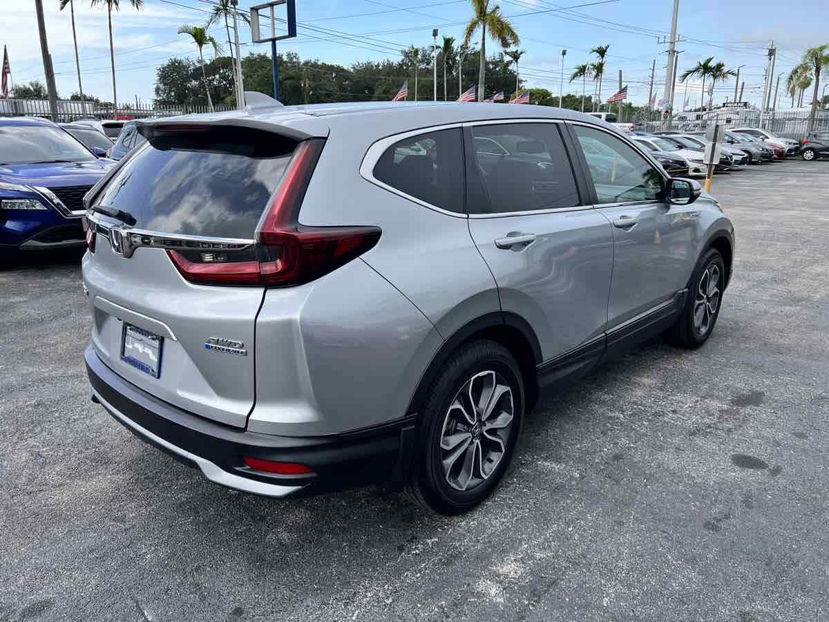 Drive our upscale 2022 Honda CR-V Hybrid EX-L AWD in Lunar Silver Metallic and you'll discover adventure around every corner! Driven by a TurboCharged 2.0 Liter 4 Cylinder and 2 Electric Motors providing a combined 212hp matched to a CVT with a Sport mode for more responsive acceleration. Easy to maneuver on the road or the trail - this All Wheel Drive SUV returns nearly 40mpg in the city with a daring design that looks great nearly everywhere thanks to a dramatic grille - LED lighting - fog lamps - a power sunroof - a power tailgate - and great-looking alloy wheels. It's a look that evokes style and substance! Our EX-L cabin raises the bar for comfort and versatility with leather heated front seats - 12-way power for the driver - a leather heated steering wheel - dual-zone automatic climate controls - remote start - and Smart Entry with Walkway AutoLock. Further innovation comes from smart technology like a 7-inch touchscreen - full-color navigation - Android Auto/Apple CarPlay - Bluetooth - and an eight-speaker sound system. Drive with peace of mind knowing you're surrounded by Honda safety features such as a multi-angle backup camera - automatic braking - a blind-spot monitor - lane-keeping assistance - adaptive cruise control - ABS - Smart Vent airbags - and more. Our CR-V Hybrid saves fuel without sacrificing the sporty utility that you demand from an SUV! Save this Page and Call for Availability. We Know You Will Enjoy Your Test Drive Towards Ownership! This vehicle has a branded title and was DMV inspected in Florida. It is in excellent condition - and everything works perfectly - we have test driven it several times and checked to make sure all the options and features work as they should. It is priced thousands below its J.D. Power retail value based on advertised trim - miles - and options. Our vehicles go through a 151-Point Inspection and this vehicle includes a 3 Month 3 -000 Miles in-house warranty*. It is ready to go for local - nationwide - or international shipping. At Autoworld you will save thousands without sacrificing quality. You can now afford a newer model year - higher trim level - and even lower miles than what you were expecting in your price range. For more than 30 years customers worldwide agree that vehicles from Autoworld of America offer the best value and quality. $$$ DRIVE THE CAR - NOT THE TITLE - SAVE THOUSANDS $$$