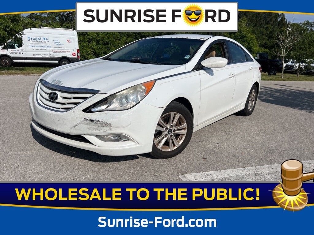 2013 Hyundai Sonata 4D Sedan WHOLESALE TO PUBLIC AS-IS Shimmering White Mica 6-Speed Automatic with Shiftronic GLS Priced below KBB Fair Purchase Price! SHOWN AS IS / SOLD AS IS, SAFETY INSPECTION PERFORMED ON ALL VEHICLES, CUSTOMER RESPONSIBLE FOR ALL REPAIRS AFTER SALE, Camel w/Premium Cloth Seating Surfaces. FWD 2.4L 4-Cylinder DGI DOHC