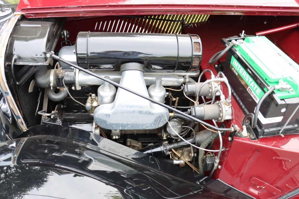 According to Jaguar Heritage Trust, this stunning 3 Litre Mark IV Drophead Coupe chassis number 637251 was produced on the 17th of June 1948 and first sold as a left-hand-drive example through International Motors in Los Angeles, California. Originally finished in Battleship Grey over a black interior, today it wears attractive two-tone maroon over black fenders. The exterior features all the highly finished jewelry expected on a post-war luxury car including painted knock-off wire wheels with whitewall tires, dual fender mirrors, landau bars, and an accessory badge bar. The interior, with seating for five, has been smartly restored in tan leather with an appropriately matched three-position beige soft top. It runs and drives fantastic with its stout inline-six cylinder good for 125-horsepower and 100 mph top speed. This matching-numbers example of Jaguar's final pre-war Jaguar saloon is an especially well-restored example in 3 -Litre specification and the epitome of space, grace, and pace.