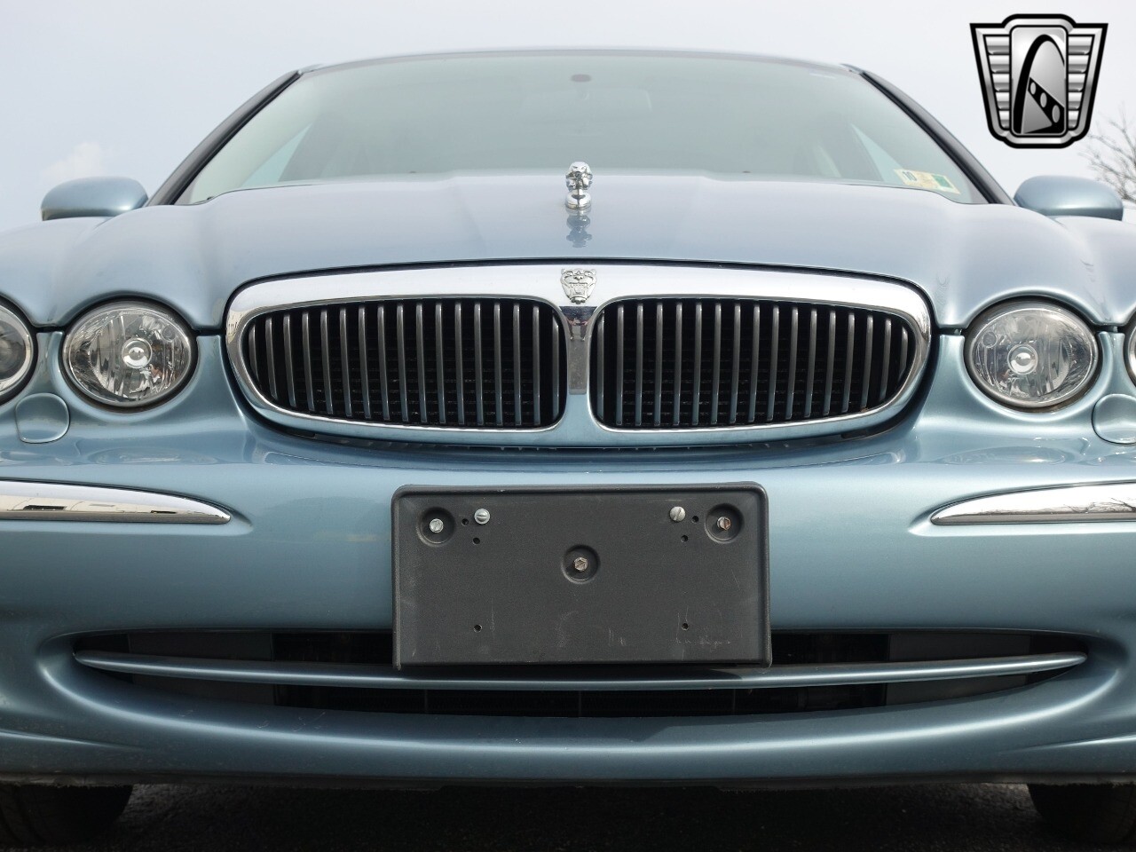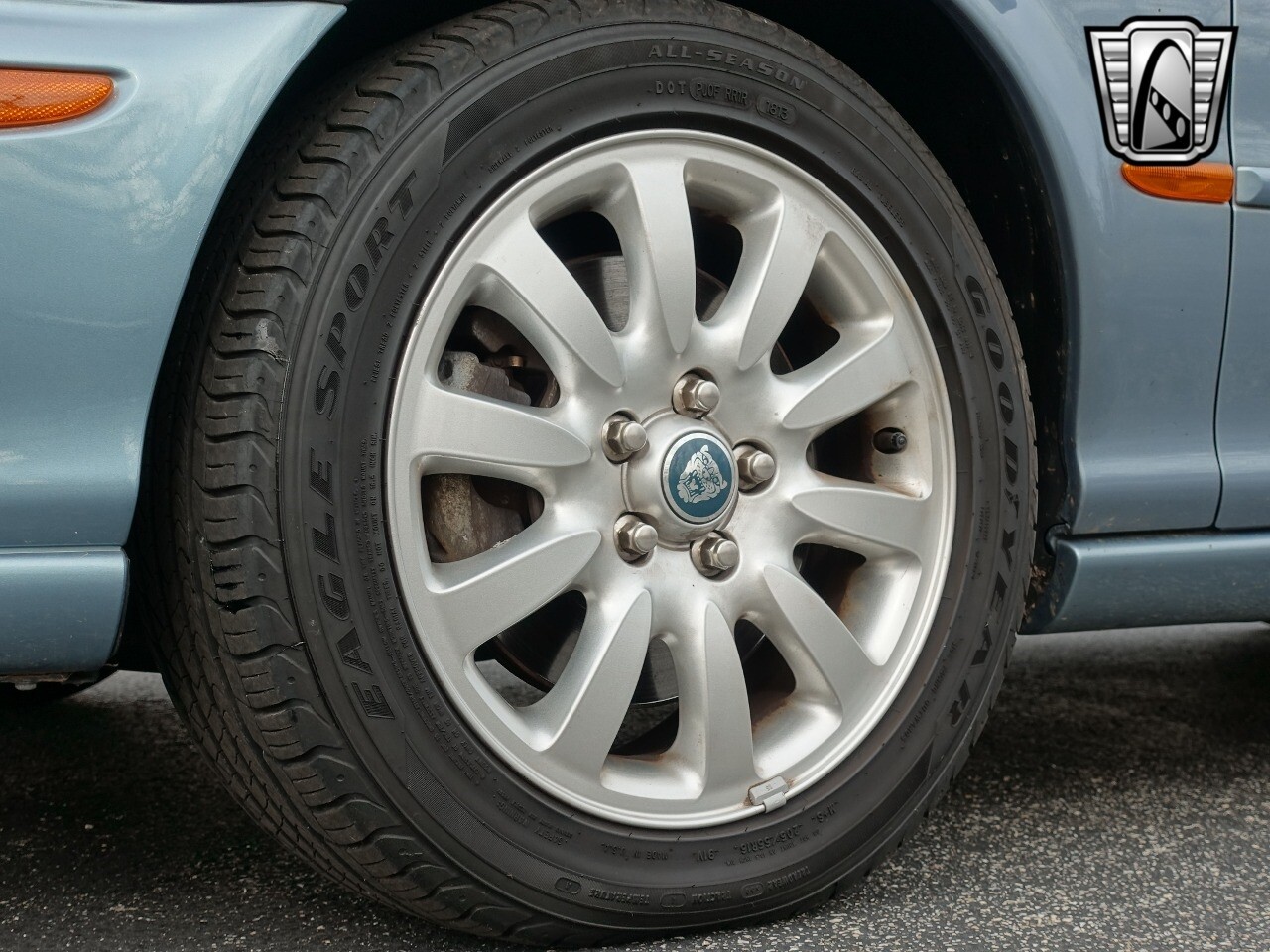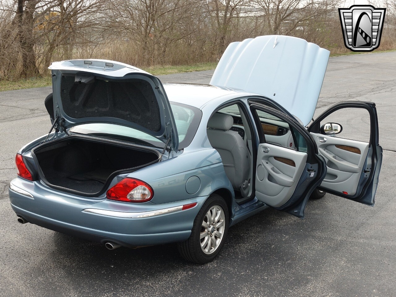 Step into the world of luxury and performance with this 2002 Jaguar X-Type. This stunning vehicle is finished in a striking blue exterior color, complemented by a sophisticated gray leather interior, offering a blend of style and comfort that is truly unmatched.