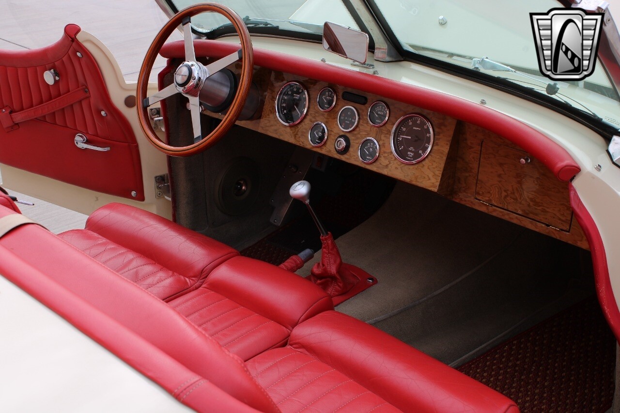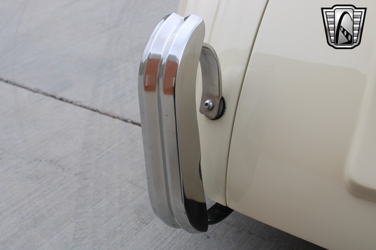 INTERIOR: I am very impressed with the interior. There's nothing cheap about it. Glove soft leather upholstery on the seats, door panels and cushion. Authentic designed seat is very comfortable. I'm 6 foot tall and fit with no issues. Real wood grain dash with all new instruments. All new wiring, it has LED interior lights. The beautiful four spoke aluminum steering wheel with a polished wood rim is mounted on a tilt column. It has premium carpets, carefully cut with sewn bound edges. Coco mats too. Considerable effort was made installing the door handles instead of a pull strap. There is a Lokar floor shifter and a digital indicator on the dash.