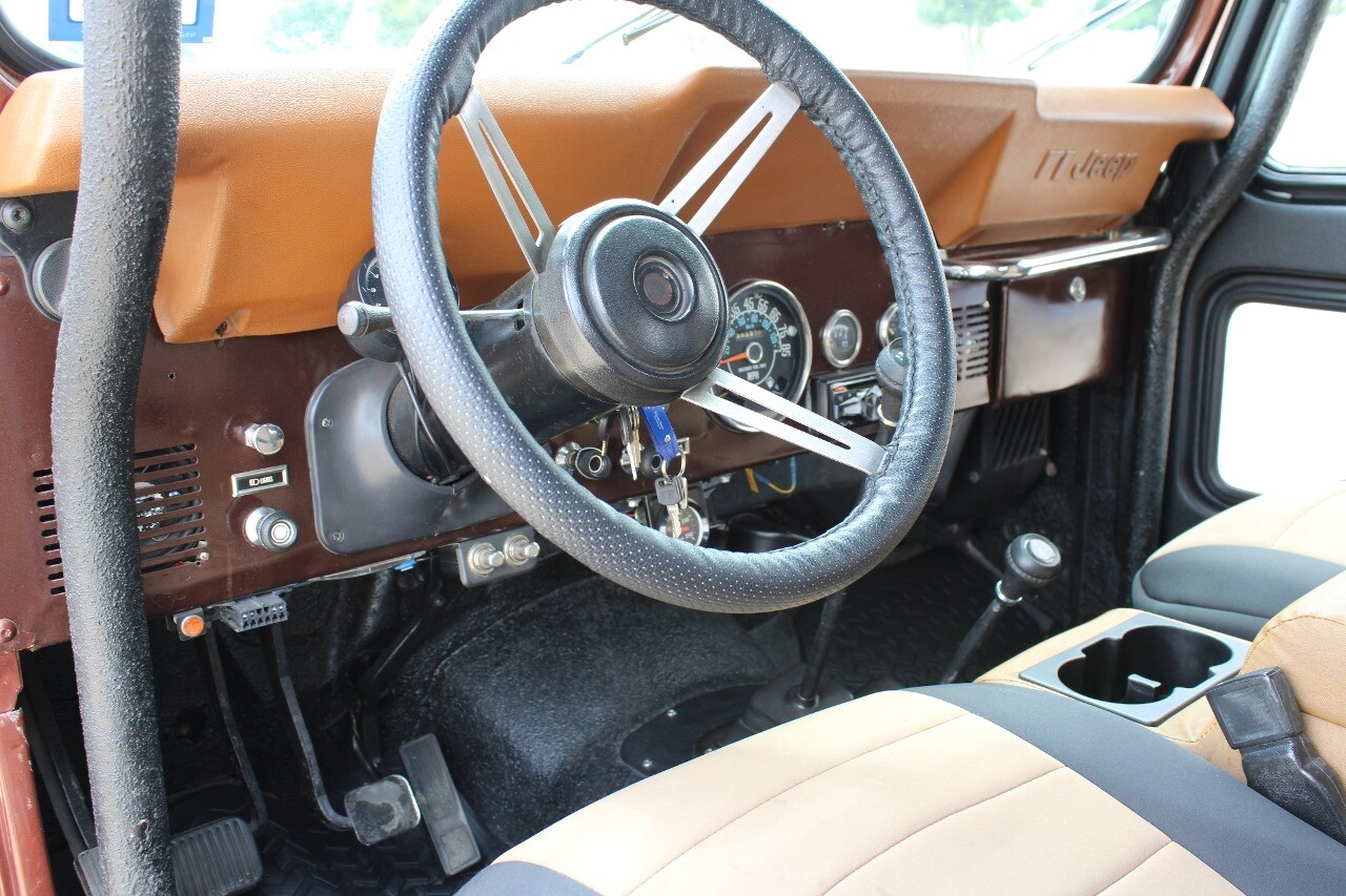 Gateway Classic Cars of Dallas is excited to showcase this classic 1983 Jeep CJ5 350 Swap, a timeless symbol of adventure and freedom. Dressed in a charming Gloss Brown exterior, this iconic machine carries with it a rich history of Jeep's legendary off-road pedigree and a powerful 350 CID V8 engine under its hood.