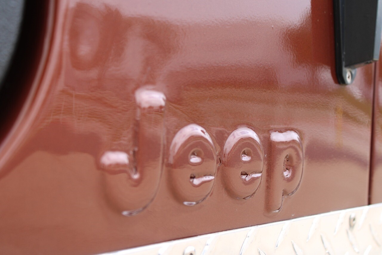 The beauty of this Jeep extends to its inviting tan vinyl interior. Inside, you'll find an AM/FM radio for your entertainment needs. The vehicle also comes equipped with seatbelts, a safety feature that underscores Jeep's commitment to combining adventure with responsibility.