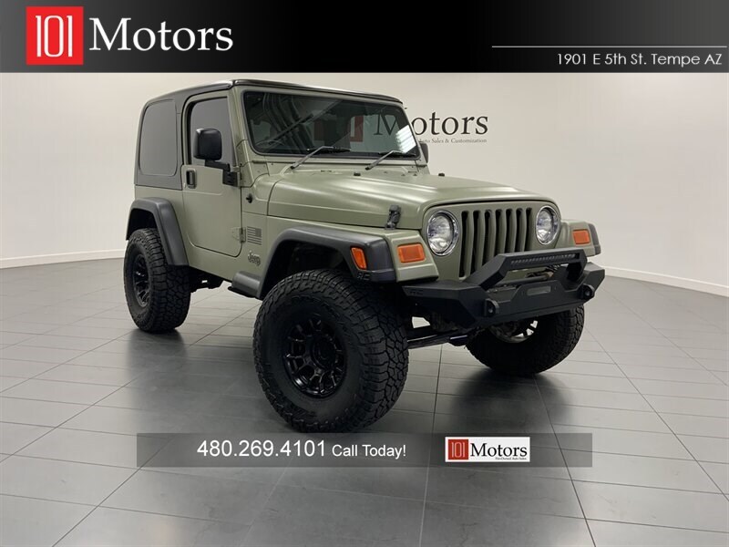 101 Motors is proud to present this 2006 Jeep Wrangler Sport. This right-hand drive TJ is equipped with a 4.0L V6 mated to a 4-speed automatic transmission. This Jeep is wrapped in a textured khaki green vinyl and sits on 15 inch Raceline wheels wrapped in 33 inch Falken all-terrain tires. This Wrangler is ready to take you on your next adventure. You don’t want to miss this opportunity, call today!!