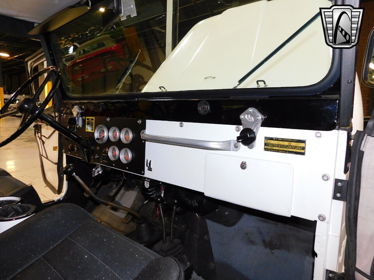 Gateway Classic Cars is proud to present this 1973 Jeep CJ5. What a way to enjoy a summer driving around the countryside or on the beach with this 4x4 Jeep. The owner has made so many upgrades that it's hard for us to even capture. The powerhouse in this Jeep consists of a 4.2L (238 cubic inch) engine and a 4-speed Ford T-8 transmission that was rebuilt approximately 3500 miles ago. It also has a Dana 44 rear with a 4:10 gear ratio. The convertible top does come off for some fun in the sun. It has a 2.5" BDS lift kit, BDS steering stabilizer, BDS shocks, CPP master brake cylinder, CPP brake booster, Weber DGS carburetor, Mountain Offroad steering box, new gas tank, and much much more. To make this Jeep even more impressive it has power steering, power brakes, and had posi-traction added. The color combination of a White exterior with a Black interior makes this jeep stand out and look timeless. If you are ready for owning something that is fun on and off road, this Jeep CJ5 is for you. .