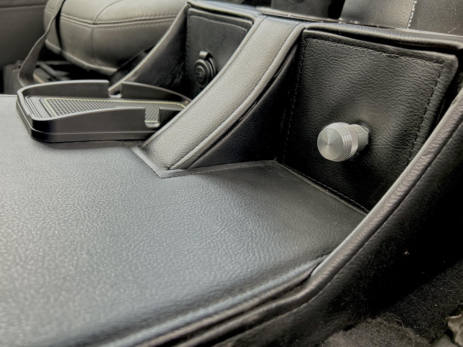 Heavy-duty rubber floor mats protect the front and rear footwells, and the leather-wrapped center console houses a convenient storage cubby, as well as a wireless fast-charging pad for mobile devices, USB charging points, and two oversized aluminum cup holders. Security is handled by a two-way Viper® keyless entry system with remote starting.