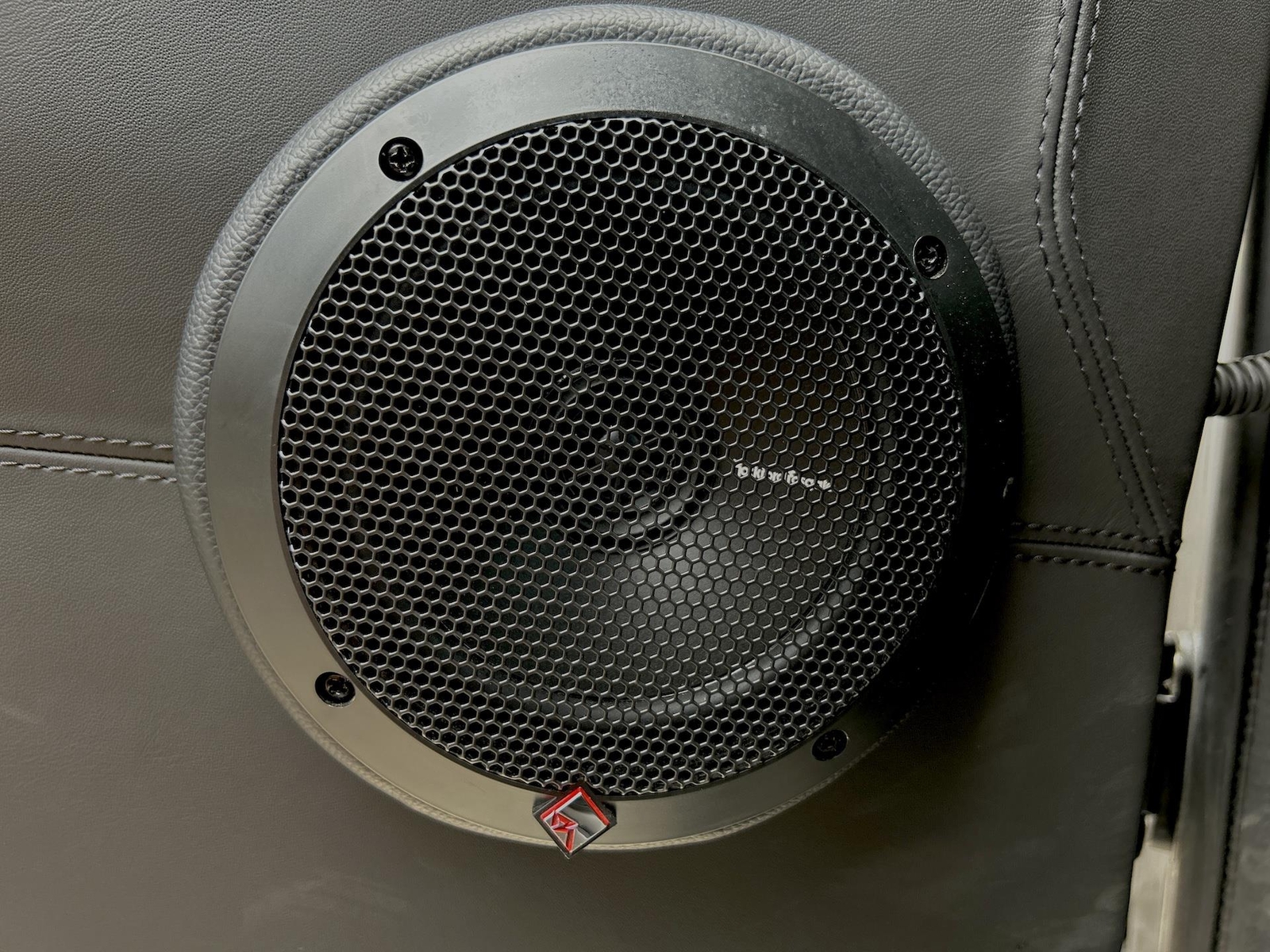 A piano black center fascia houses the state-of-the-art infotainment system featuring a Kenwood® DMX9708S 7-inch HD capacitive touch-screen head unit with wireless Apple CarPlay® and Android Auto®, Bluetooth®, built-in Digital Signal Processor, and GPS navigation backed by a rich sounding Rockford Fosgate® 6-speaker array and a Blaupunkt® GTHS131 200-watt active subwoofer with remote bass controller, enhanced by a Kenwood® KAC-M3004 200-watt amplifier.