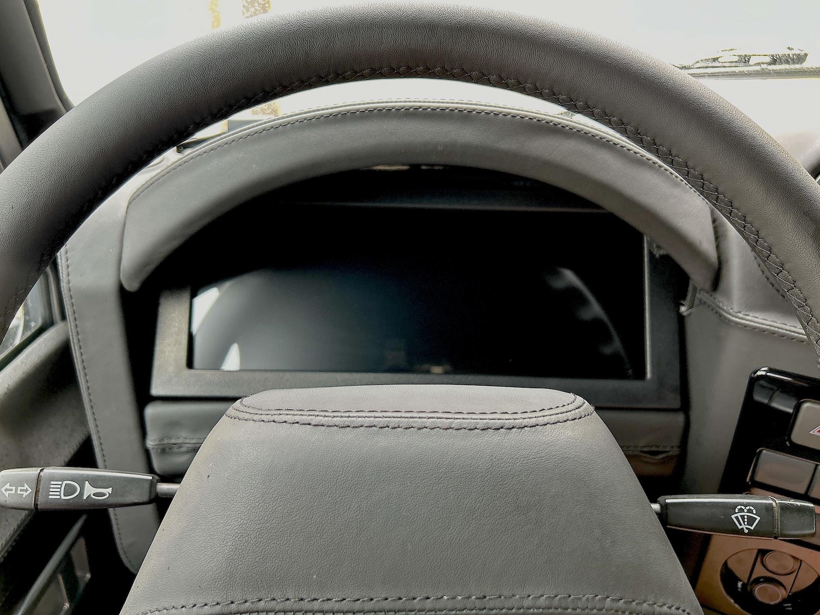 Satin black, powder-coated Fire & Ice®-style tubular side steps assist with ingress and egress to the well-appointed passenger cabin where you’ll find the high-back, heated front sport seats, the flat-folding 60/40 rear seats, and the door cards upholstered in supple Charcoal Gray Leather with a chic square stitch accent. Behind the chunky, leather-wrapped sport steering wheel is an impressive driver command center focused around a responsive 12.3” high-definition digital instrument cluster, offering the latest driver-focused technology and capable of relaying vital information with split-second timing and accuracy.