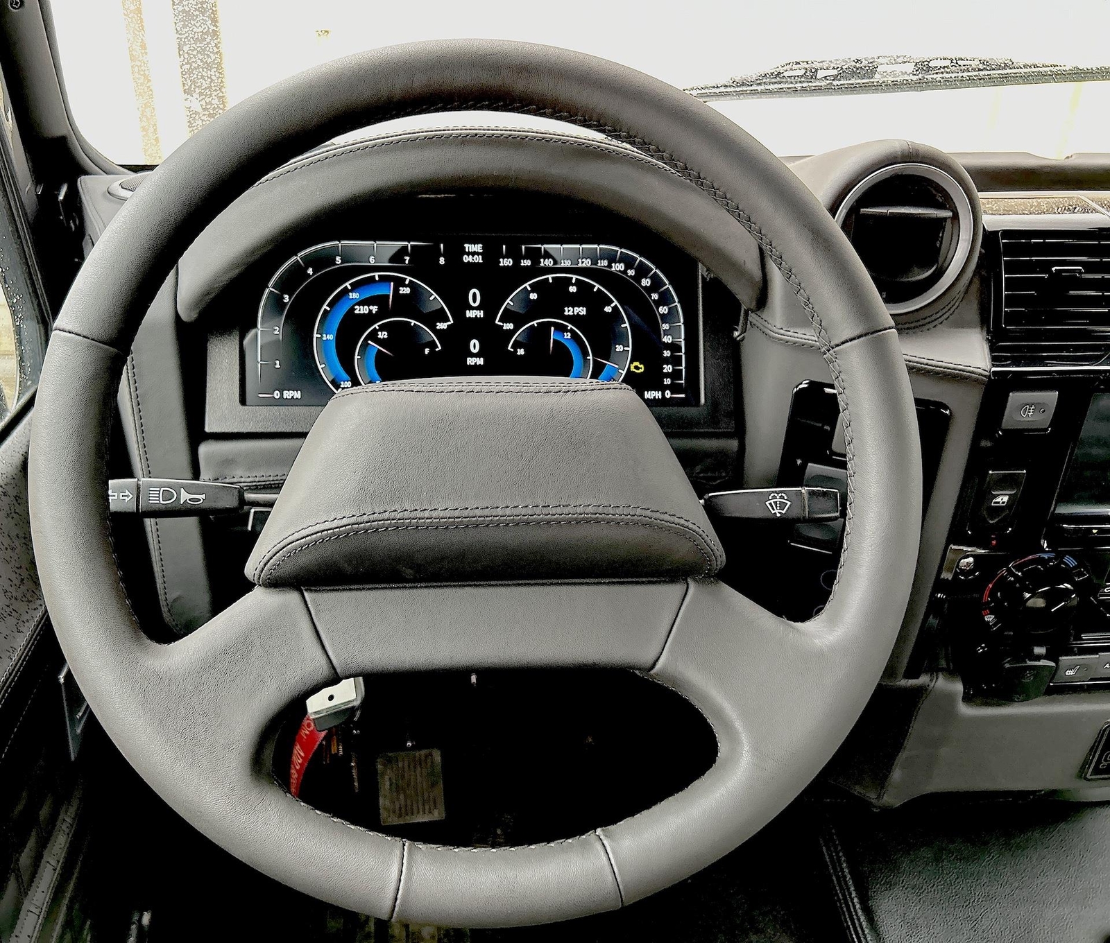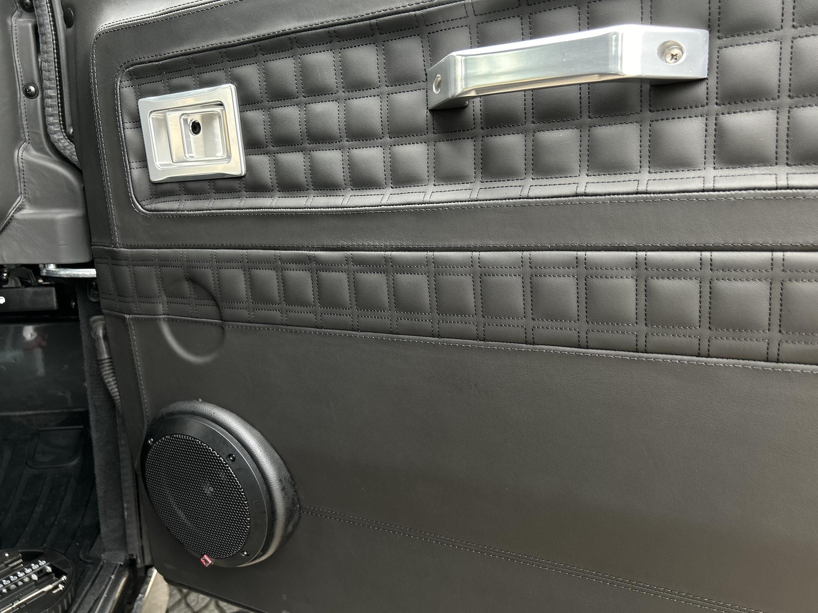 This robust build was recently completed by our team of skilled Master Craftsmen at our headquarters in Castle Hayne, North Carolina. Under the bonnet lies a muscular 6.2L Corvette® LS3 V8 providing spirited forward motivation, while the precise-shifting 6L80E 6-speed automatic transmission controlled by a PCS® push-button gear selector with LED display mated to a heavy-duty, center differential lock-equipped LT230 transfer case distributes constant power to all four wheels, ensuring the brawny 430+ horsepower and 425+ pound-feet of torque makes it to the ground. Powerful disc brakes at all four corners ensure stops are quiet, safe, quick, and efficient.