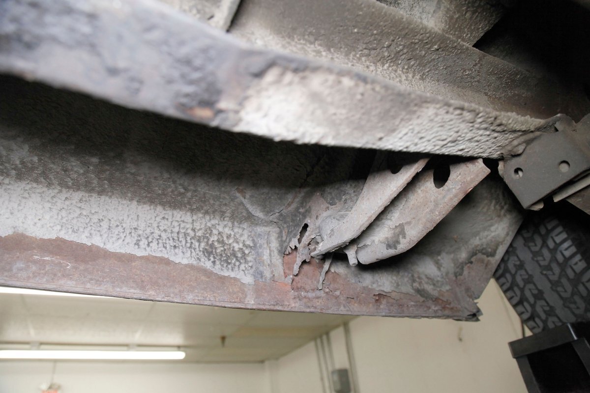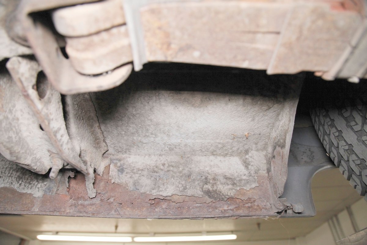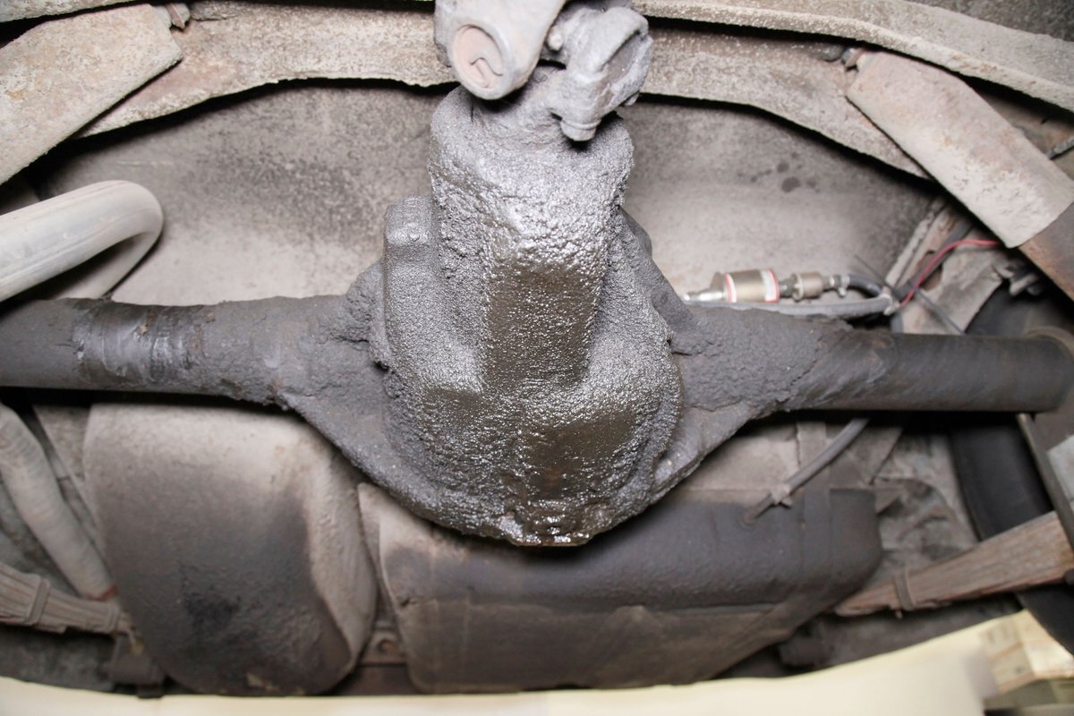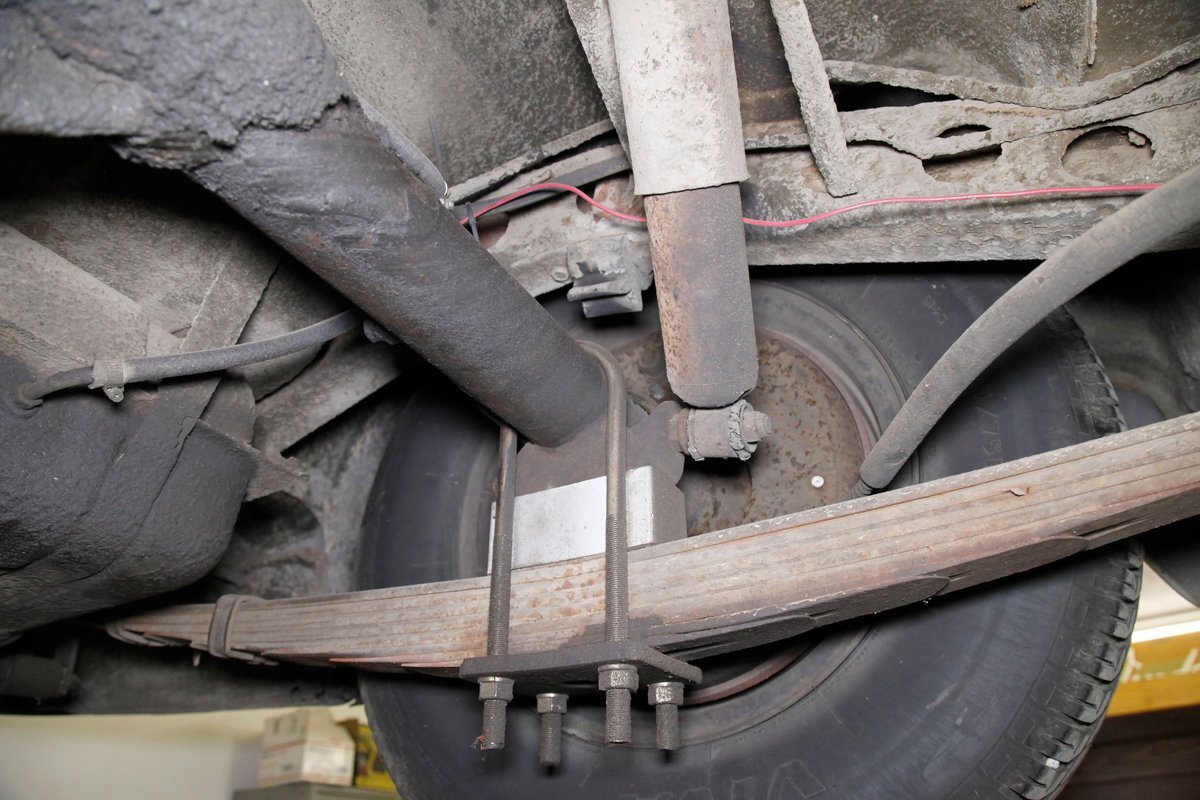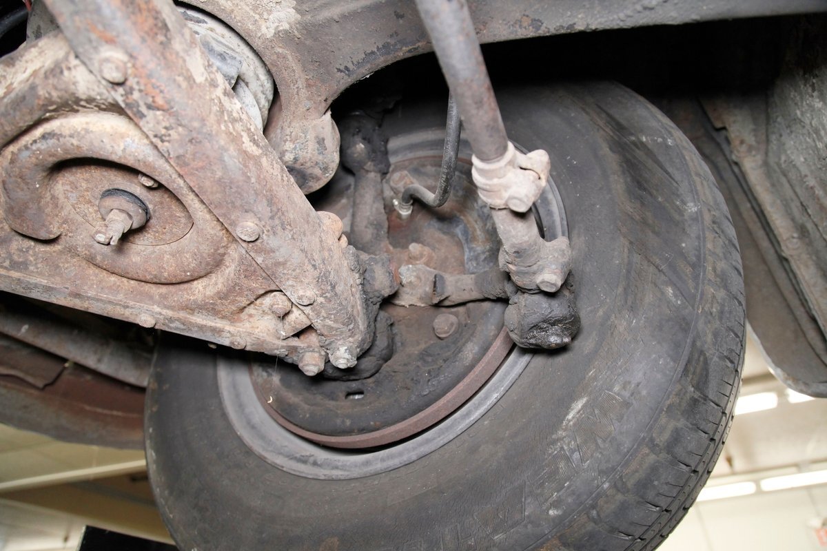 Solid steel framing and floor pans underneath have a nice coating of factory undercoating. Single stock style exhaust snakes its way rearward, past independent coil springs upfront and to the rear leaf springs. Drum brakes are on all 4 corners. It is mostly rust free with the majority of the flaws being patina and surface rust on the usual suspects.