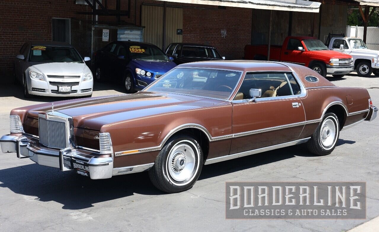 If you were a successful business person in the late ‘70s – or perhaps a teenager lusting over the ultimate cruiser – this 1976 Lincoln Continental Mark IV is likely the car you were driving or dreaming about!! The ultimate status symbol of success, the Lincoln Continental Mark IV was the largest coupe available, featuring unique trim styling, oblong “porthole” rear windows, “radiator-style” front grill, hidden headlights, “spare tire” rear trunk lid, and much more – plus genuine room for 6 adults! Interior was styled to be the class of field, with deeply padded velour seats, shag carpeting, faux wood trim on dash & door panels, plus an actual Cartier analog clock!! Powered by a 460 CI / 7.5L 16-valve V8 mated to a three-speed automatic transmission, this big cruiser held its own against much smaller & sportier models of the time! The ultimate ‘70s status symbol of success, with loads of style to spare, this 1976 Lincoln Continental Mark IV can be yours if you act quickly. See it today and take a test drive at Borderline Classics & Auto Sales in Downtown Dinuba!!