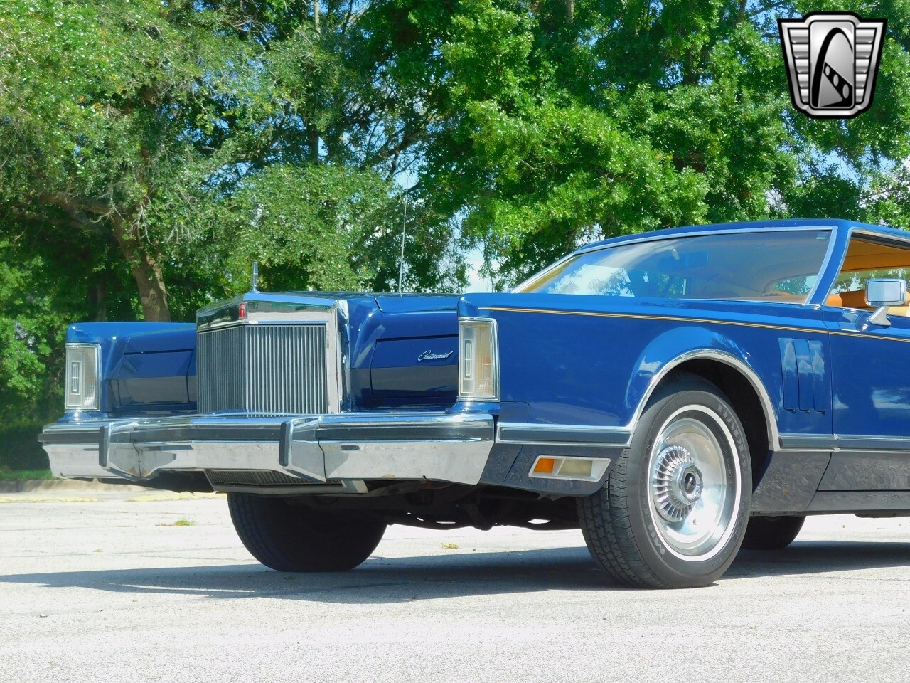 Gateway Classic Cars of Orlando Florida is proud to offer this 1977 Lincoln Continental Mark V Bill Blass edition. For a long time among American made cars, Lincoln has been a brand that has contributed in setting the standard on how a domestic vehicle can be a beacon of luxury. This Continental shines very well in that category. As you walk around the vehicle you notice nice details like the hideaway headlamps, and tan landau roof with color keyed pin stripe. From the moment you swing the heavy doors open, you are invited in by the gorgeous tan leather interior that has been outfitted with options like power locks, power seats, and power windows, showing clearly that this car was fitted with quite a few bells and whistles for it's time. Under the hood is a 460 cubic inch V8 that transfers it's healthy power and torque to the back wheels through a 3-speed automatic transmission. Imagine how this car can get up and go! Now is your chance to own this blue beauty and the window is closing with every moment you spend thinking about it! Options include AC, AM/FM radio, spare tire, cruise control, power brakes, power steering, power locks, jack, power seats, power windows, seat belts, leather interior and radial tires..