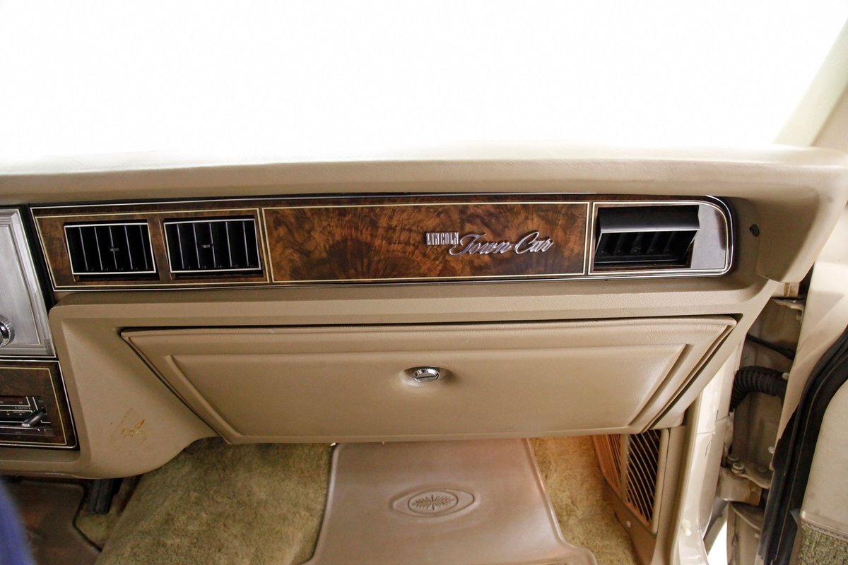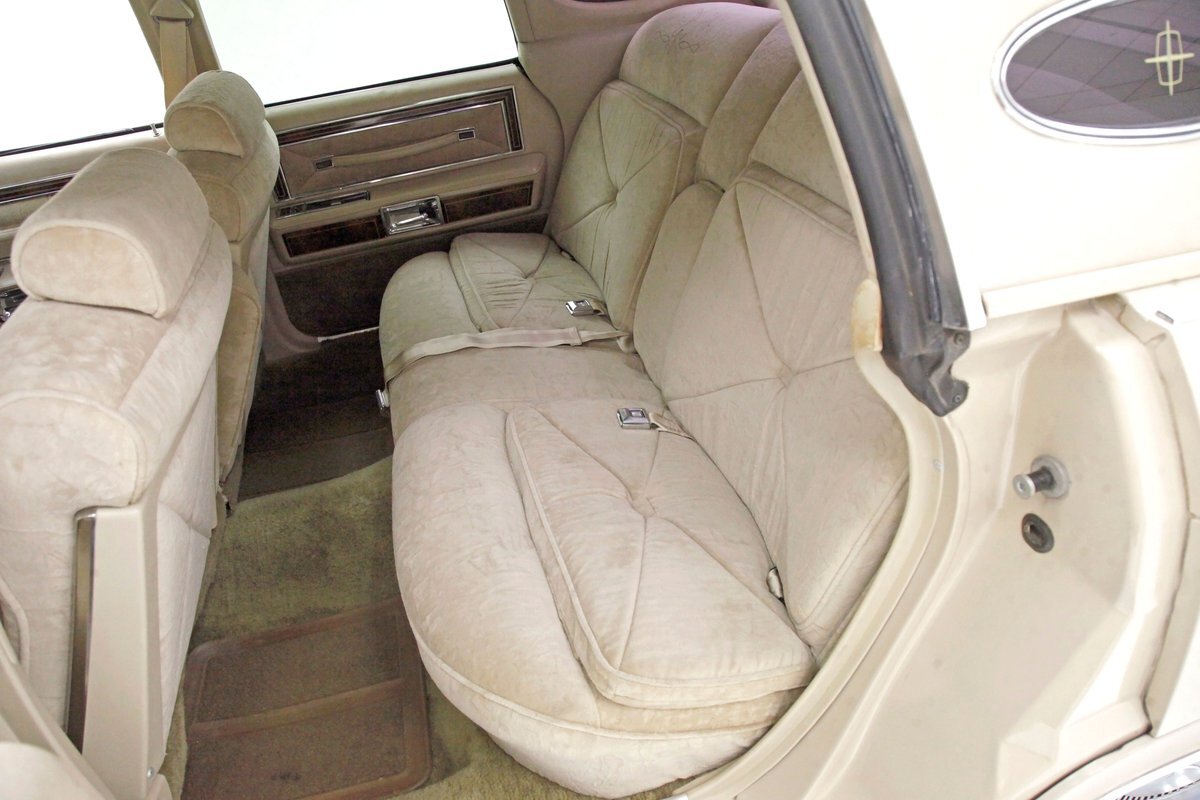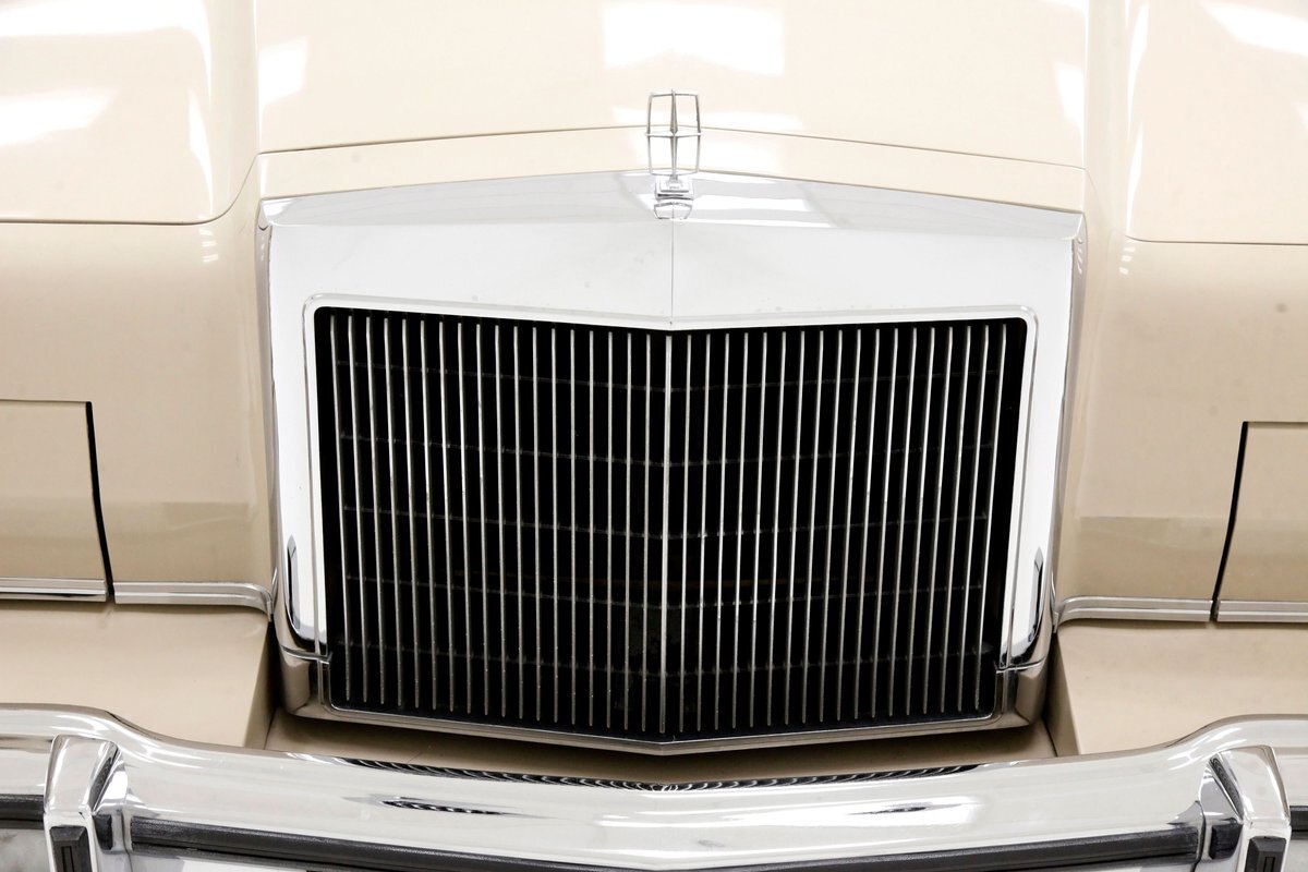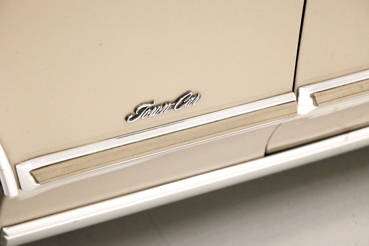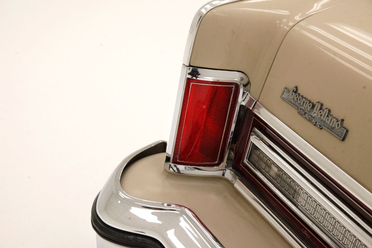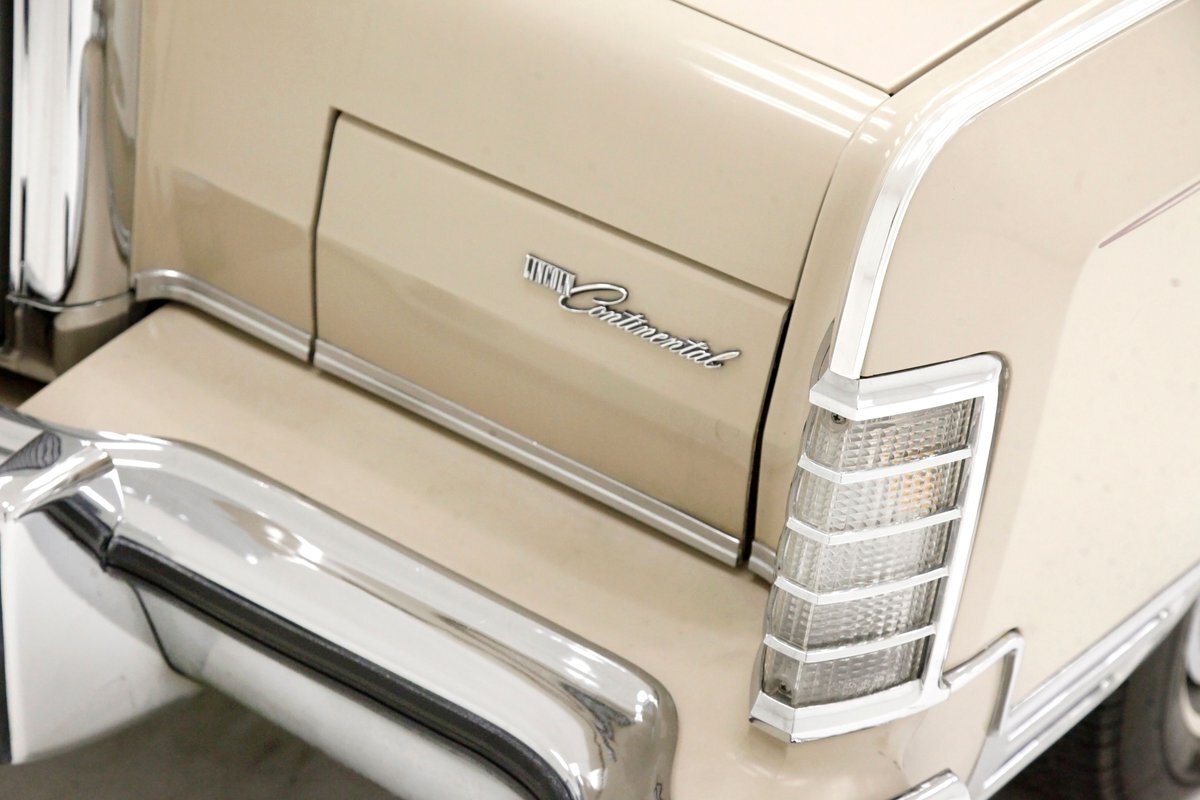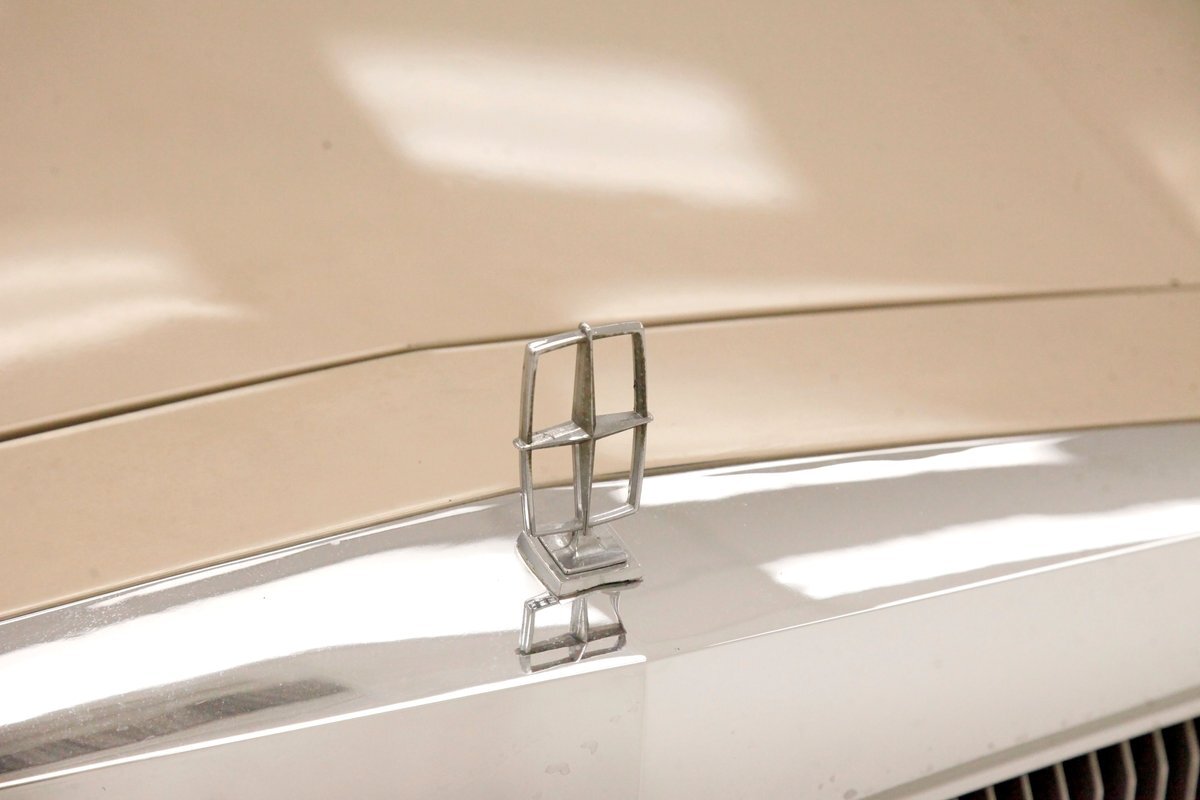 Dressed up to the nines this square and rectangle gentleman wears a sport coat in Light Chamois and lots of trimmings in near perfect chrome. With barely a ding on its straight steel large panels, and fastidiously minded gaps, you have arrived. The big square front chromed grille and old fashion styled radiator surround topped with the Lincoln star and flanked by hidden headlights, corner signal lights wrapped in horizontal ribbings, and a massive mirror-like bumper below, this is only the beginning. Moving back, we can take a drive on the large hood and front quarters which have below the belt line trim in chrome and beige vinyl, along with some running lights, wheel well trim surrounds and a brown dual pinstripes. This drops us off at the front doors, straight and true, more below the belt line trim, pinstripe and now rocker trim moving rearward to two more doors. This rear set of doors backs up to the rear quarter, and the 2 bedroom apartment sized trunk with a single cathedral styled rear taillight on each corner. Another big pristine bumper, and some rear panel trimmings and a horizontal reflector is way back, and up top a padded vinyl landau styled top for the rear passenger area roof. This sports tinted glass on the sides and rear, an opera light on the B pillar and an oval opera window in the C pillar. Standard Lincoln wheel covers in their full splendor cover all 4 corners, and now you too can be the escort to the Belle-of-the-ball.