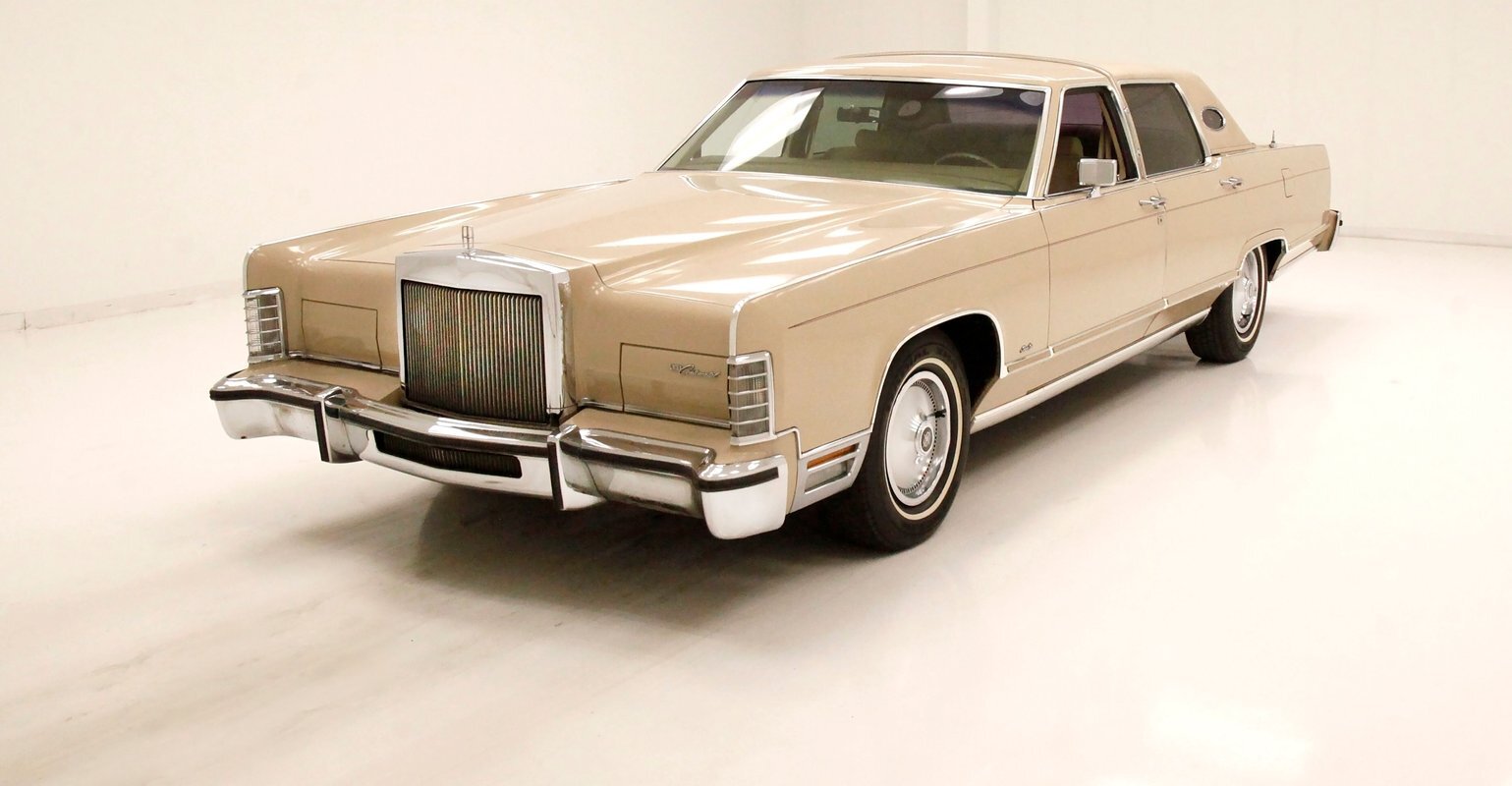 For consignment, we're nearing the end of the true American large luxury cars and now coming to us to grace our Hallowed Halls, we give you this long, big, huge, wonderfully comfortable, opulent, steel paneled, Chamois 4 door Lincoln Town Car from 1978 that has always been garage kept. It's also showing 82,707 miles, but due to the title reading "mileage exempt" we cannot verify these as actual, but one quick look tells us it is. Things don't get much bigger than this, but with big cars comes big power and big luxury...read on.