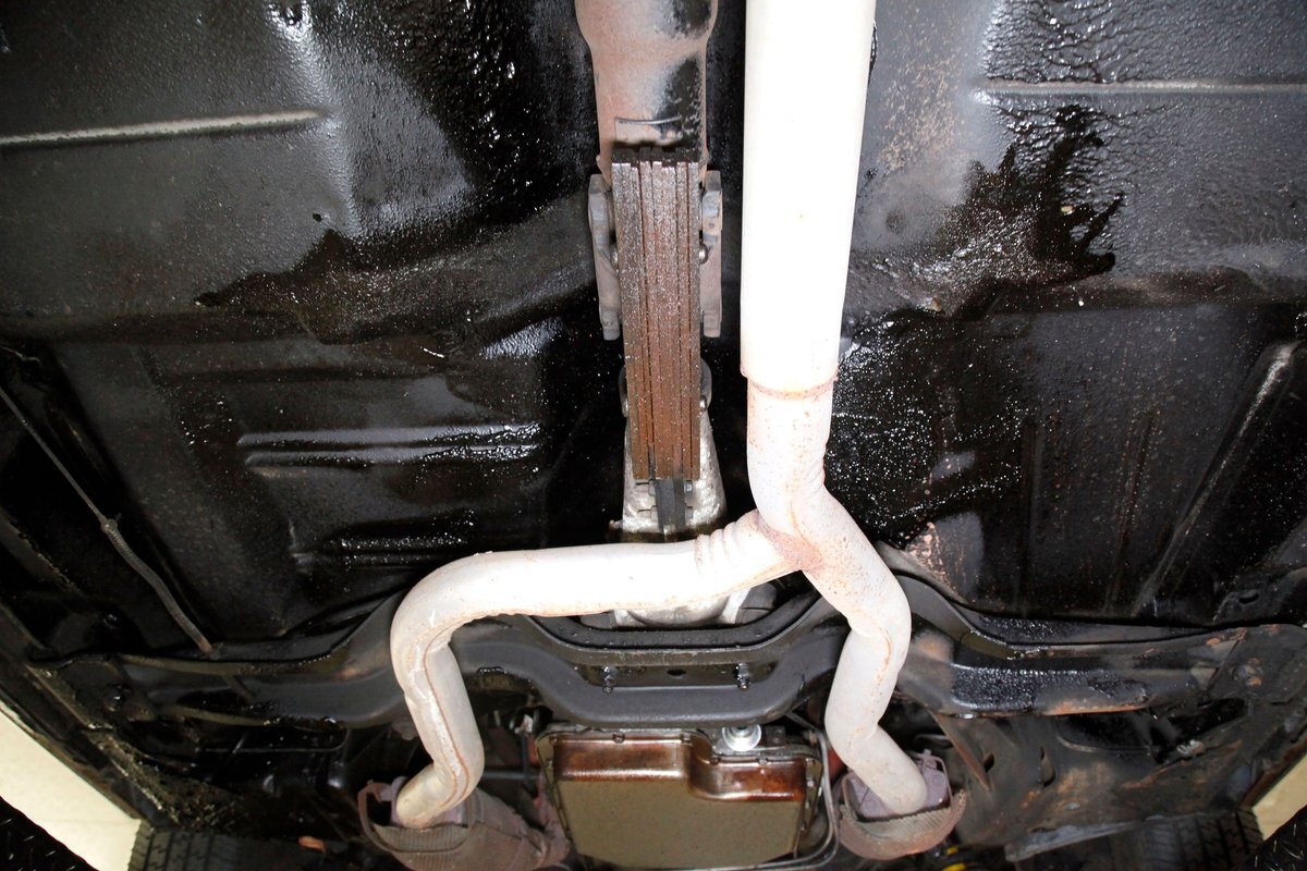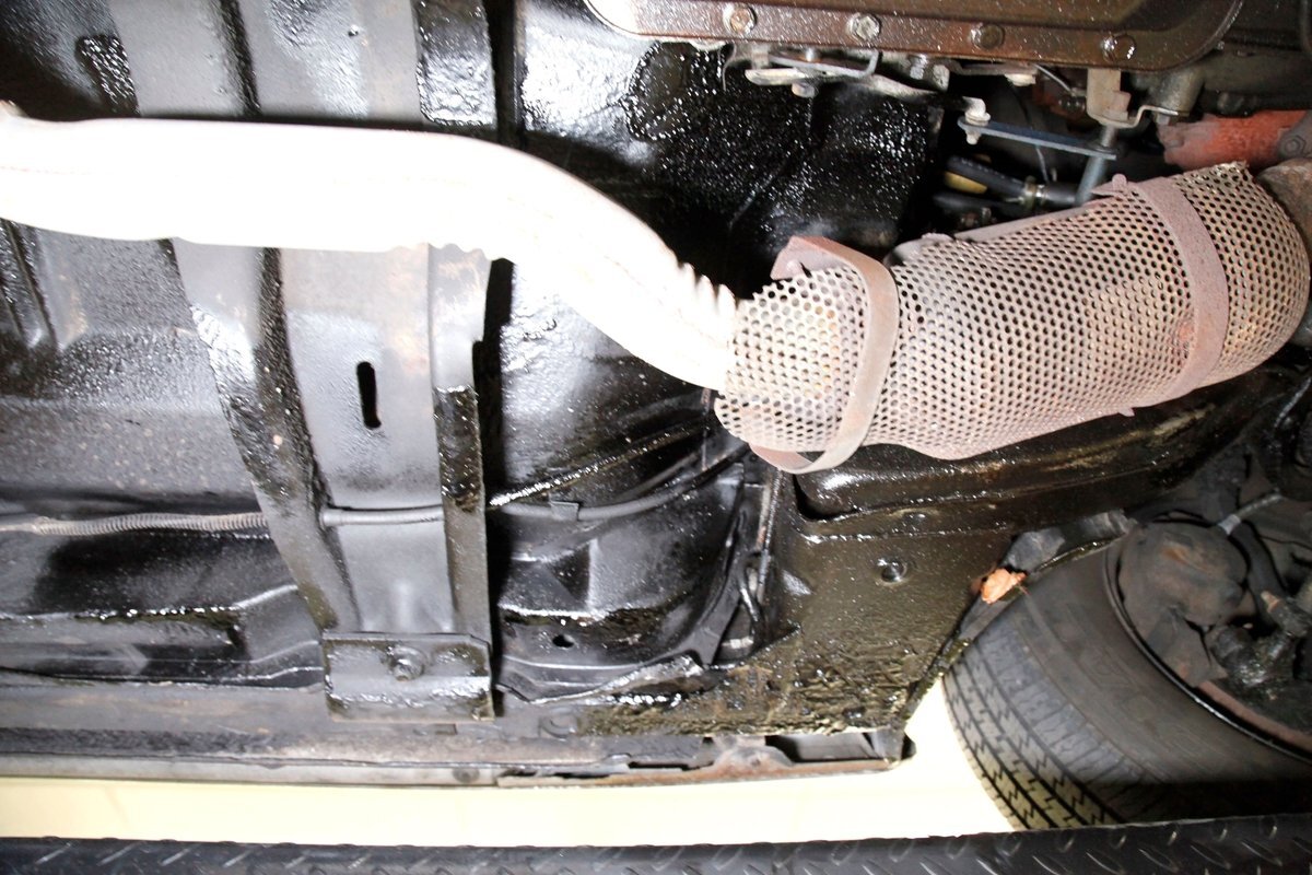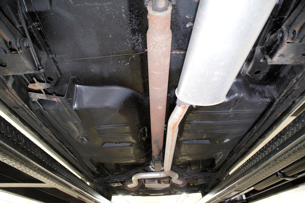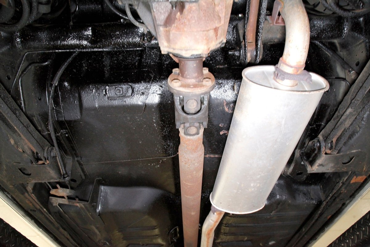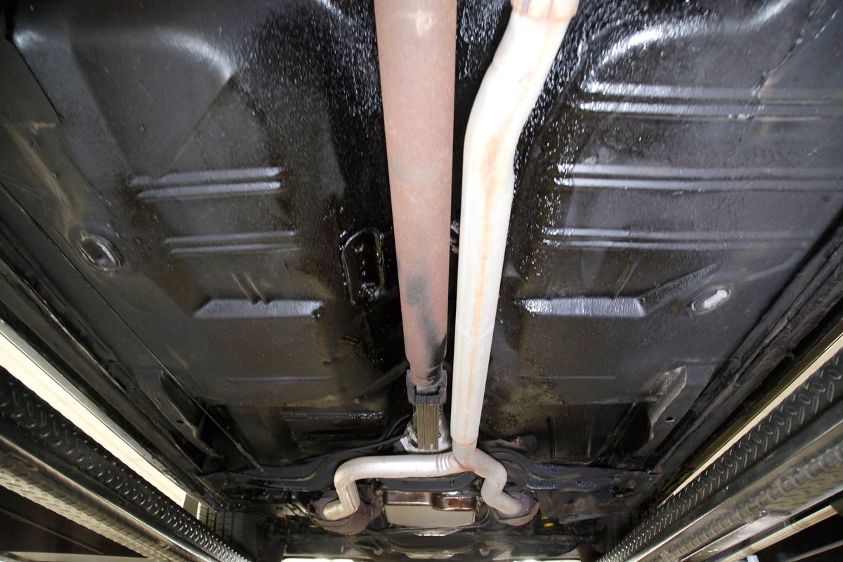 Low road miles and garaging have left us with just a light coating of surface rust on some of the usual suspects, but all structurally solid all around. Plenty of undercoating covers the wheel wells, floor pans, frame, and rockers. Independent coil spring front suspension with power disc brakes show up front, and on back, a 4 link with coil springs with power drum brakes provide the ride. A like new single exhaust system is on to handle spent fossil removal and is looking fine and dandy.