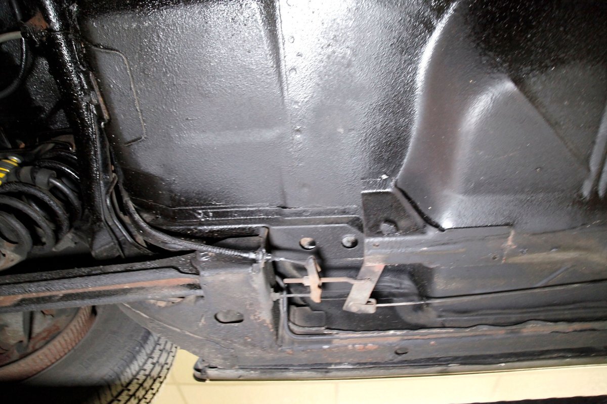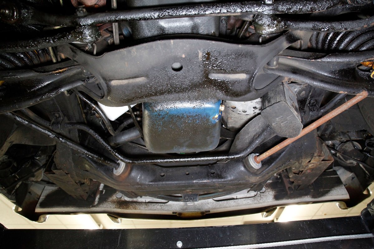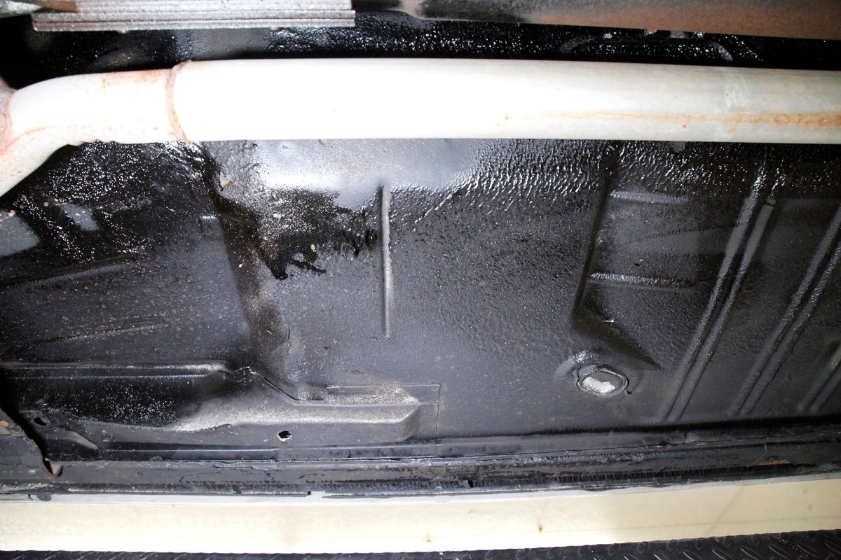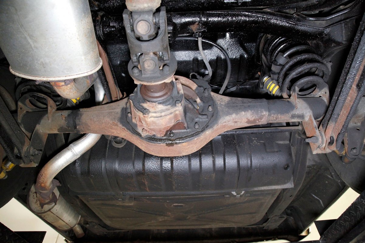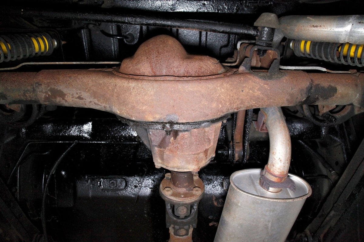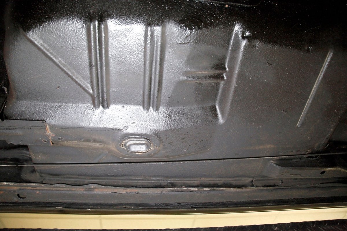 Low road miles and garaging have left us with just a light coating of surface rust on some of the usual suspects, but all structurally solid all around. Plenty of undercoating covers the wheel wells, floor pans, frame, and rockers. Independent coil spring front suspension with power disc brakes show up front, and on back, a 4 link with coil springs with power drum brakes provide the ride. A like new single exhaust system is on to handle spent fossil removal and is looking fine and dandy.
