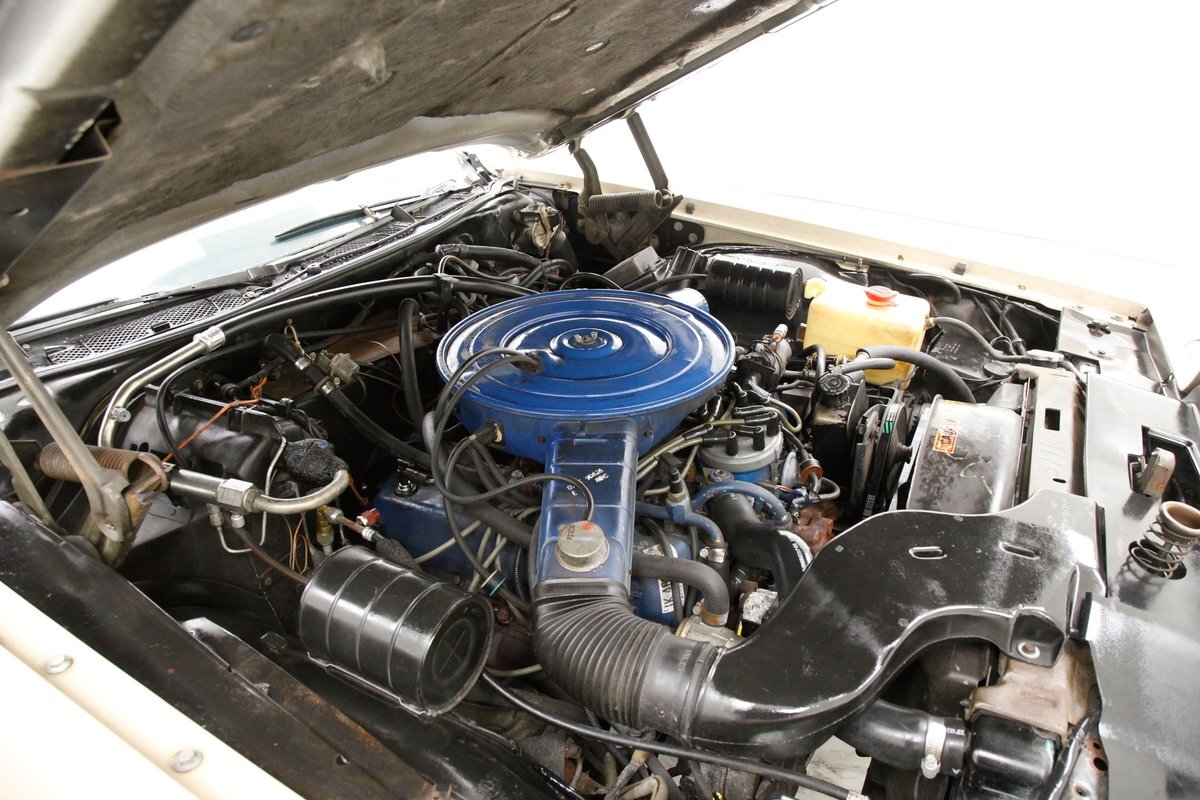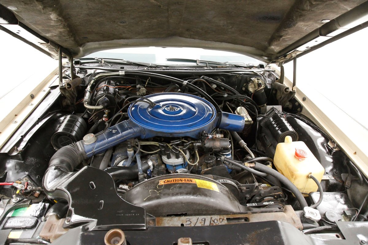 A heave of the long hood shows a detailed and clean original engine bay with the original engine, all showing a nice patina and slight aging appear before our wandering eyes. This is a big 460ci V8 is topped with a 4-barrel carburetor and has a C6 3-speed automatic transmission on back. A Ford 9" rear axle with 3.00 conventional gearing is on to propel you down the road.