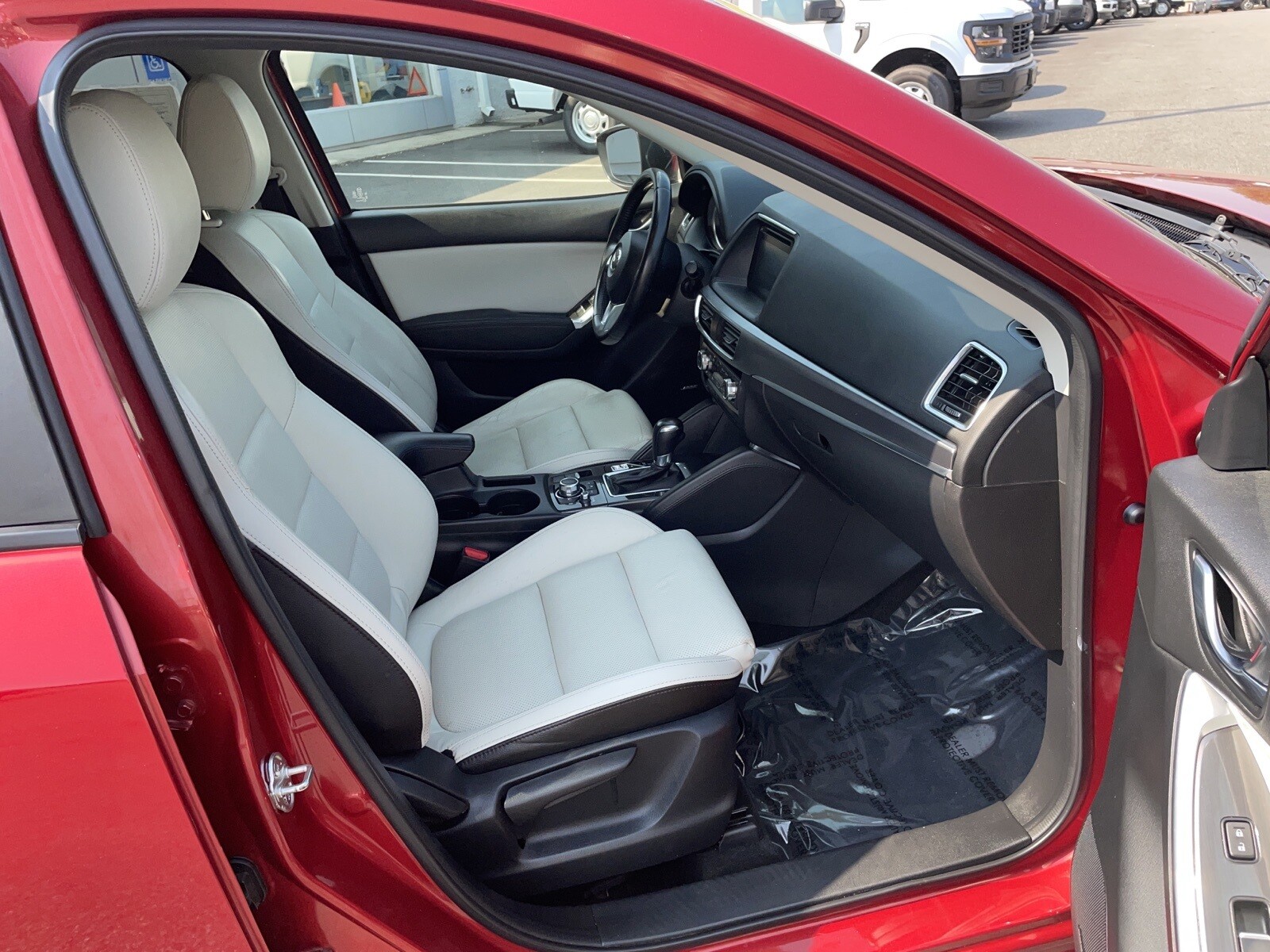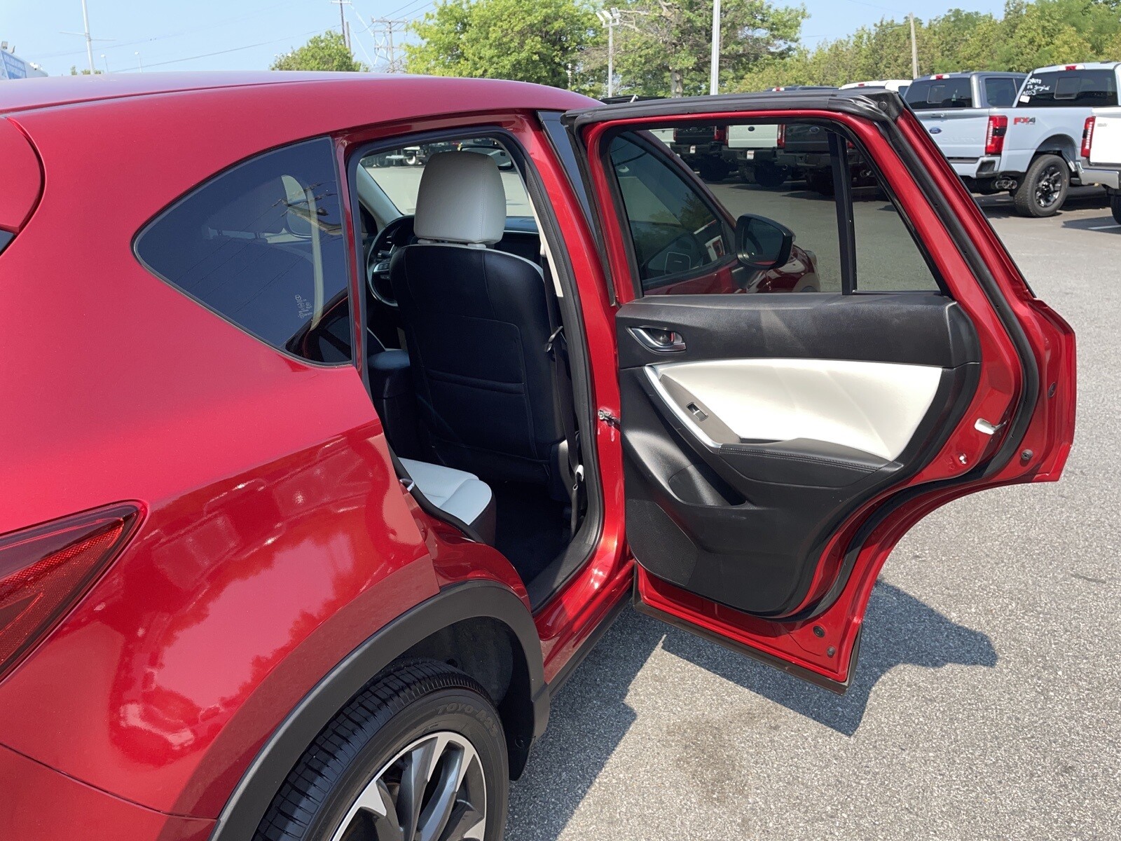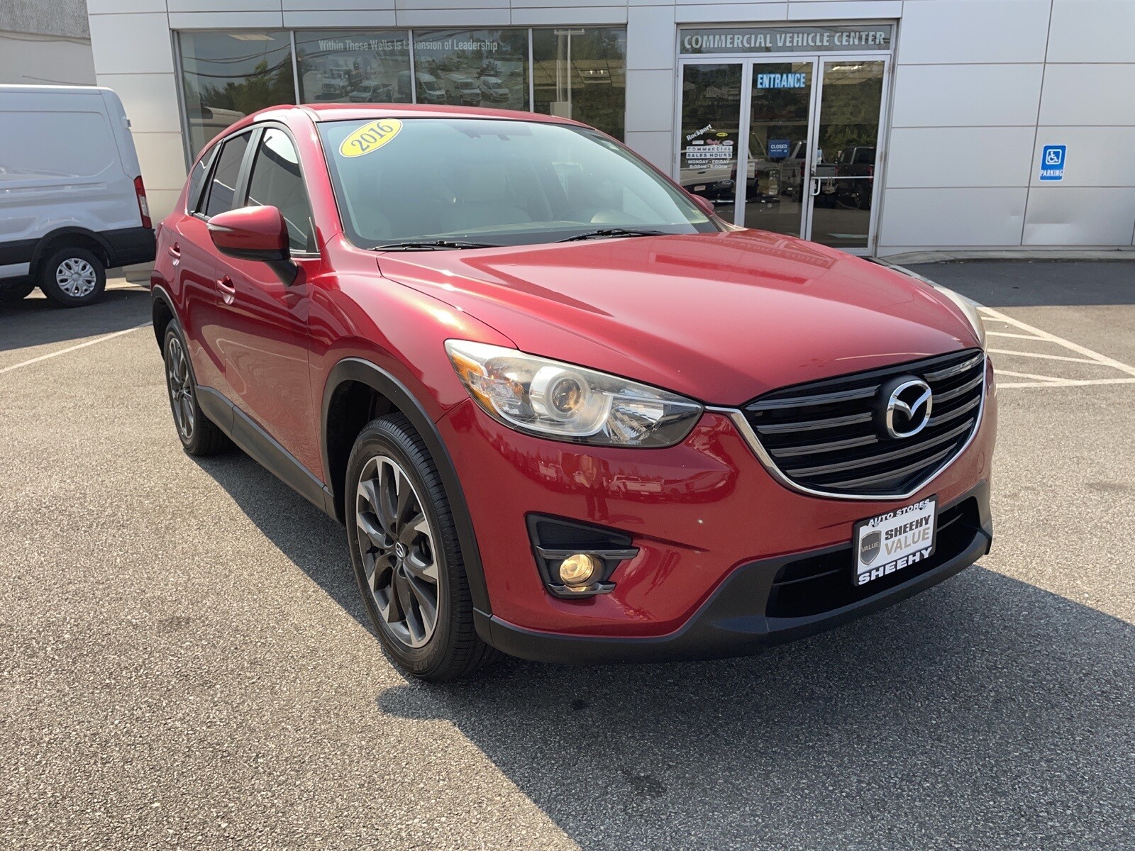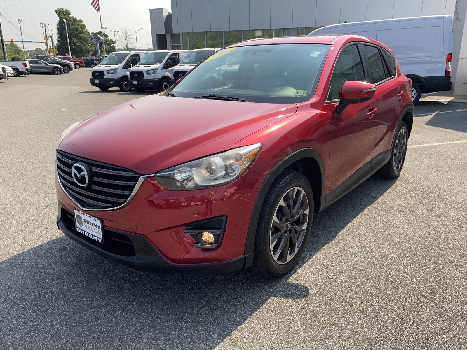 2016 Mazda CX-5 Grand Touring AWD at Sheehy Ford of Springfield! This CX-5 has an exterior color of Soul Red Metallic with Sand/Parchment Leather interior. This preowned Mazda CX-5 is equipped with amazing options like: ABS brakes, Air Conditioning, Power driver seat, Power steering, Power windows, Rear window defroster, Steering wheel mounted audio controls, and Traction control.