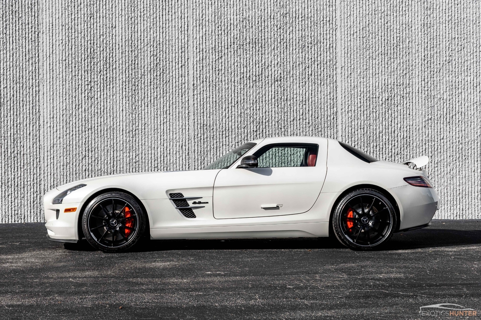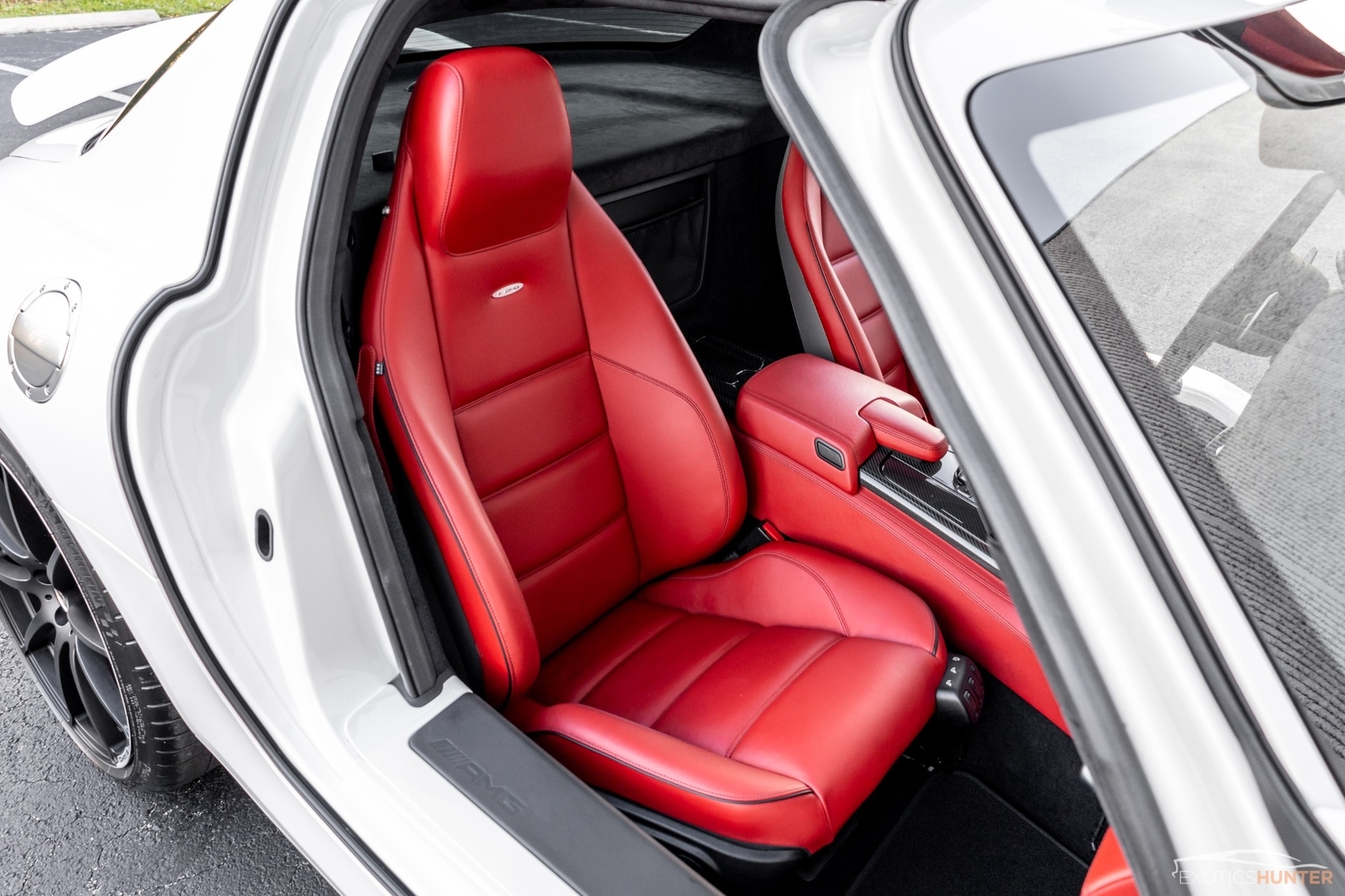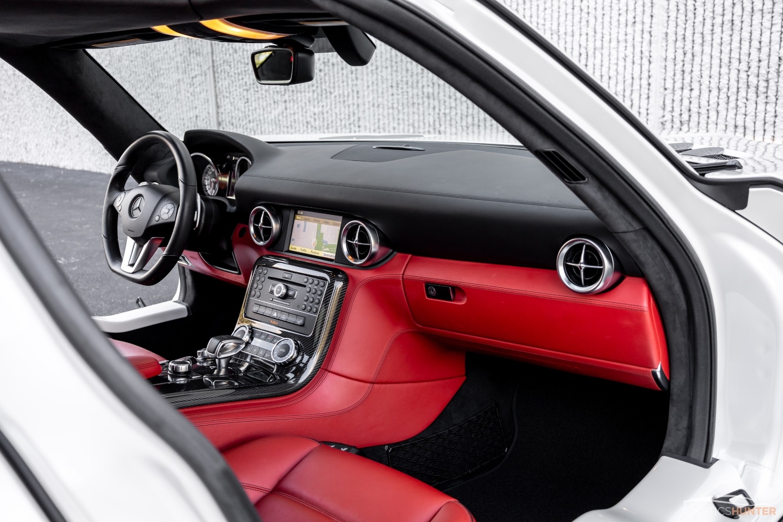 Proudly presenting this 2012 SLS AMG in one of the most desirable color combinations available, Designo Mystic White II on Classic Red. This timeless spec is properly optioned, featuring carbon fiber trim, 19"/20" AMG forged wheels in matte black, carbon mirrors, and more. With less than 5,000 miles, this SLS is collector grade, and is very likely to increase in value over time. Don't miss the opportunity to make this beautiful SLS yours before it's gone.
