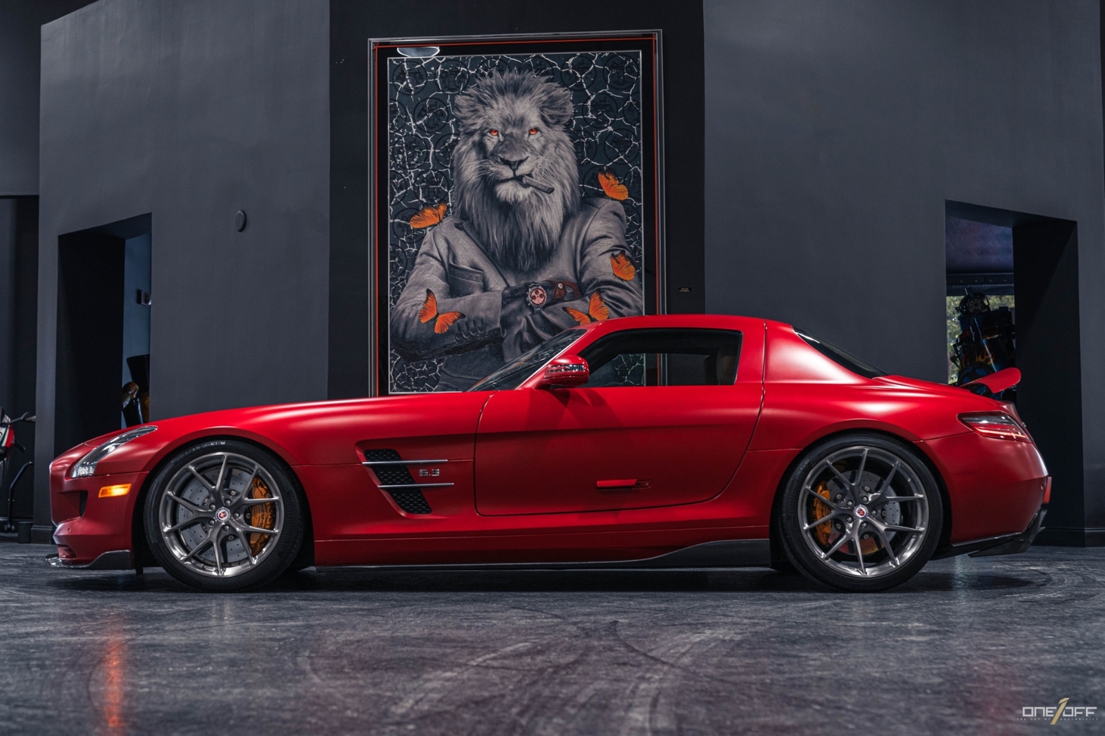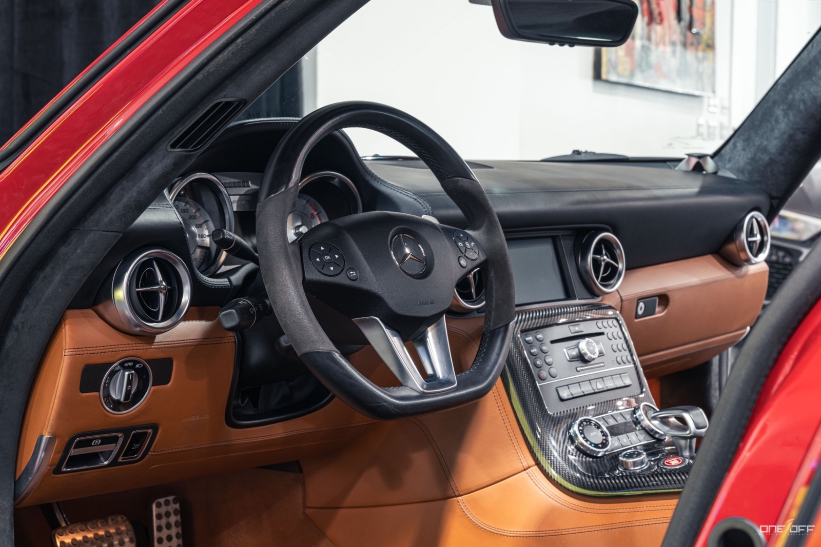 Breathtaking is an understatement. This masterfully modified Le Mans Red '12 SLS has us drooling. Lowered on HRE forged wheels, the fitment couldn't be any better. I have never heard a better sounding SLS, the Akrapovic exhaust doesn't compare to anything else available. To make this spec even more unbelievable, a carbon fiber body kit has been installed to achieve a much more aggressive look. From the factory, carbon ceramic brakes, 1000W B&O sound system, carbon fiber interior trim + extended carbon interior trim, Designo interior, and more were commissioned onto this SLS. Don't miss the once-in-a-lifetime opportunity to make this incredible build your own.