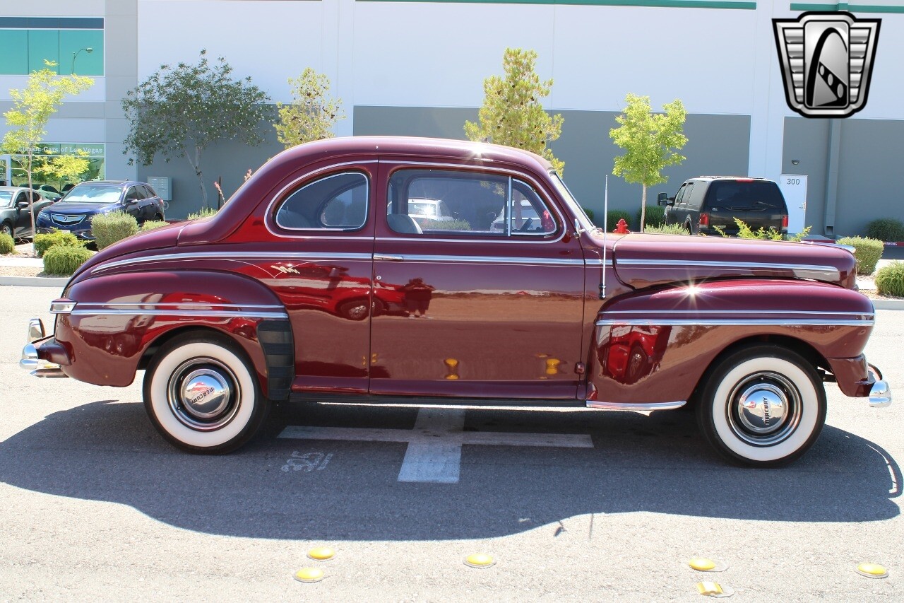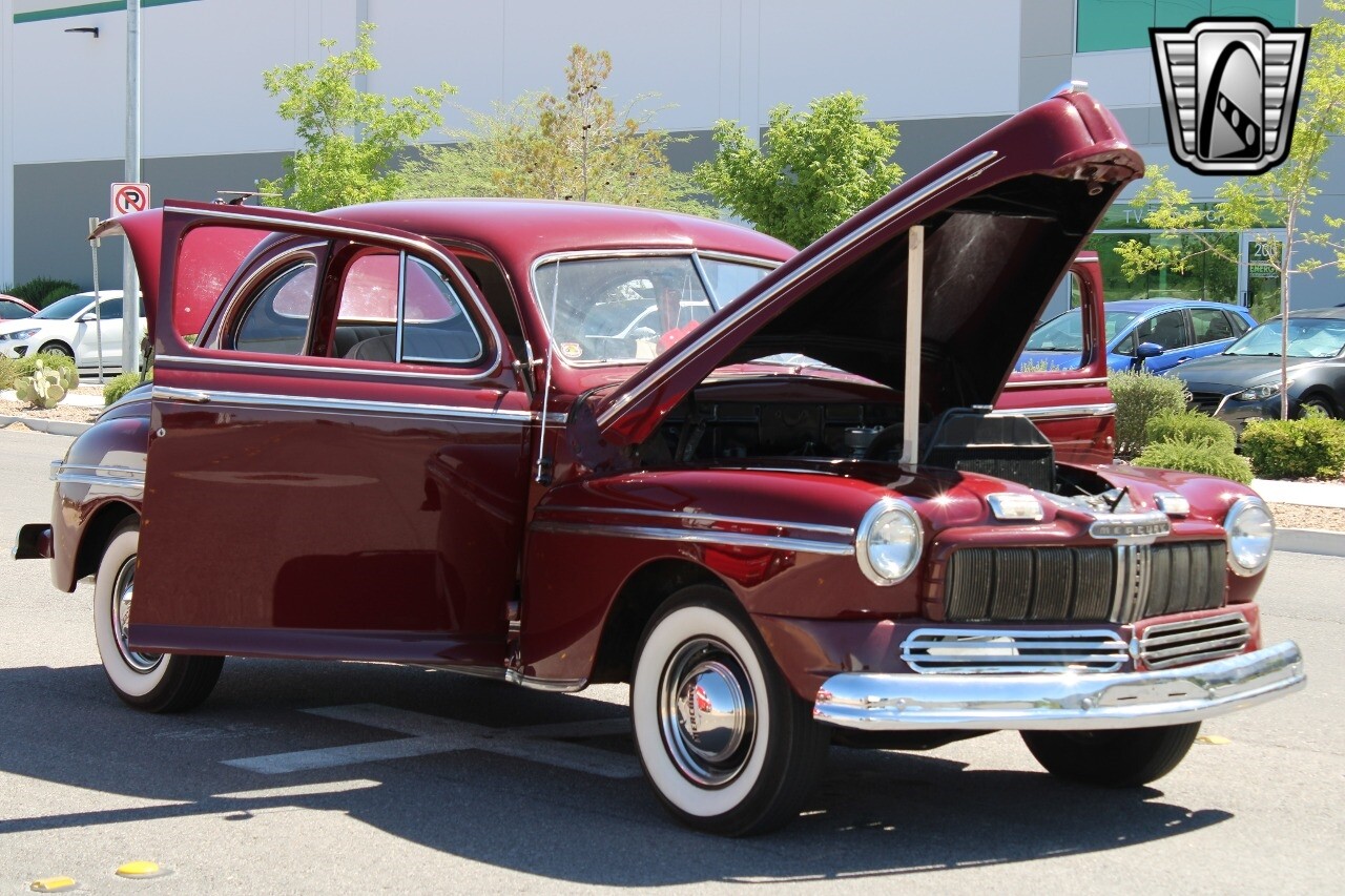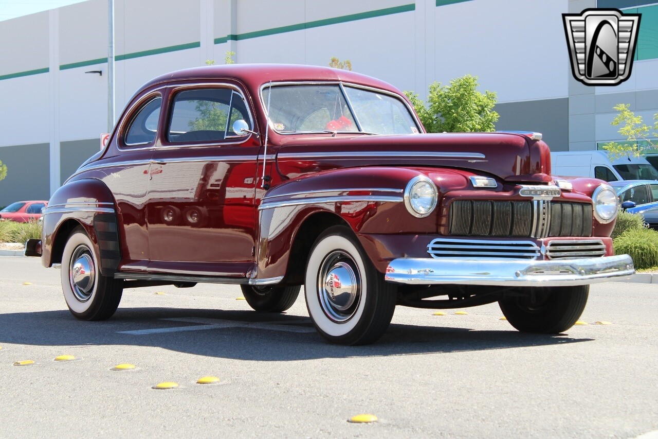 Gateway Classic Cars of Las Vegas presents this 1946 Mercury Eight. This stunning vehicle boasts a striking maroon exterior that captures the essence of mid-20th century elegance and style. The vibrant color is complemented by a sophisticated beige interior, creating a timeless and inviting cabin space that exudes both comfort and class.