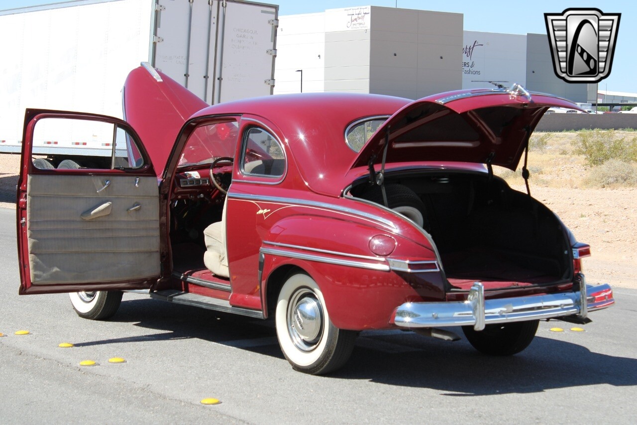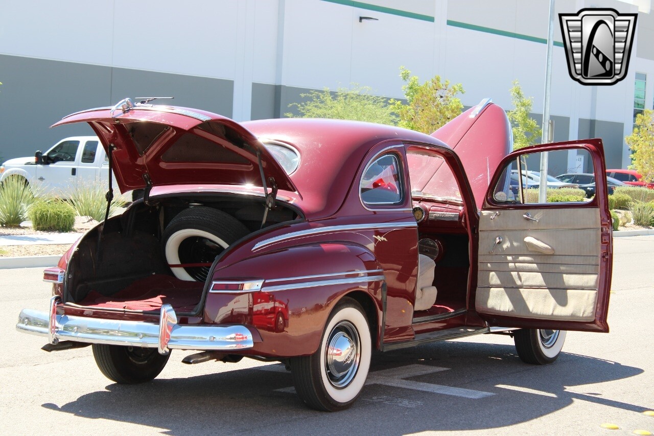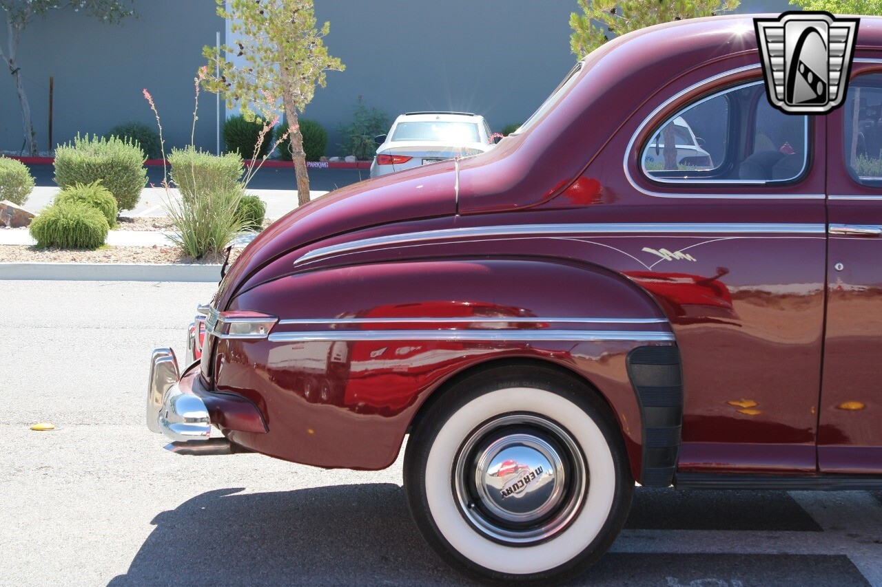 Gateway Classic Cars of Las Vegas presents this 1946 Mercury Eight. This stunning vehicle boasts a striking maroon exterior that captures the essence of mid-20th century elegance and style. The vibrant color is complemented by a sophisticated beige interior, creating a timeless and inviting cabin space that exudes both comfort and class.