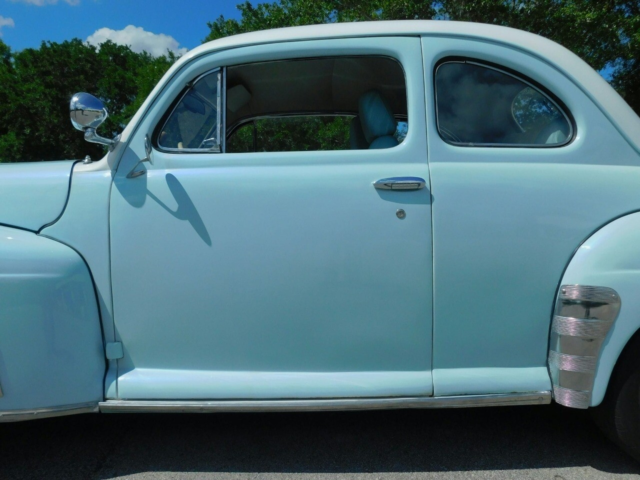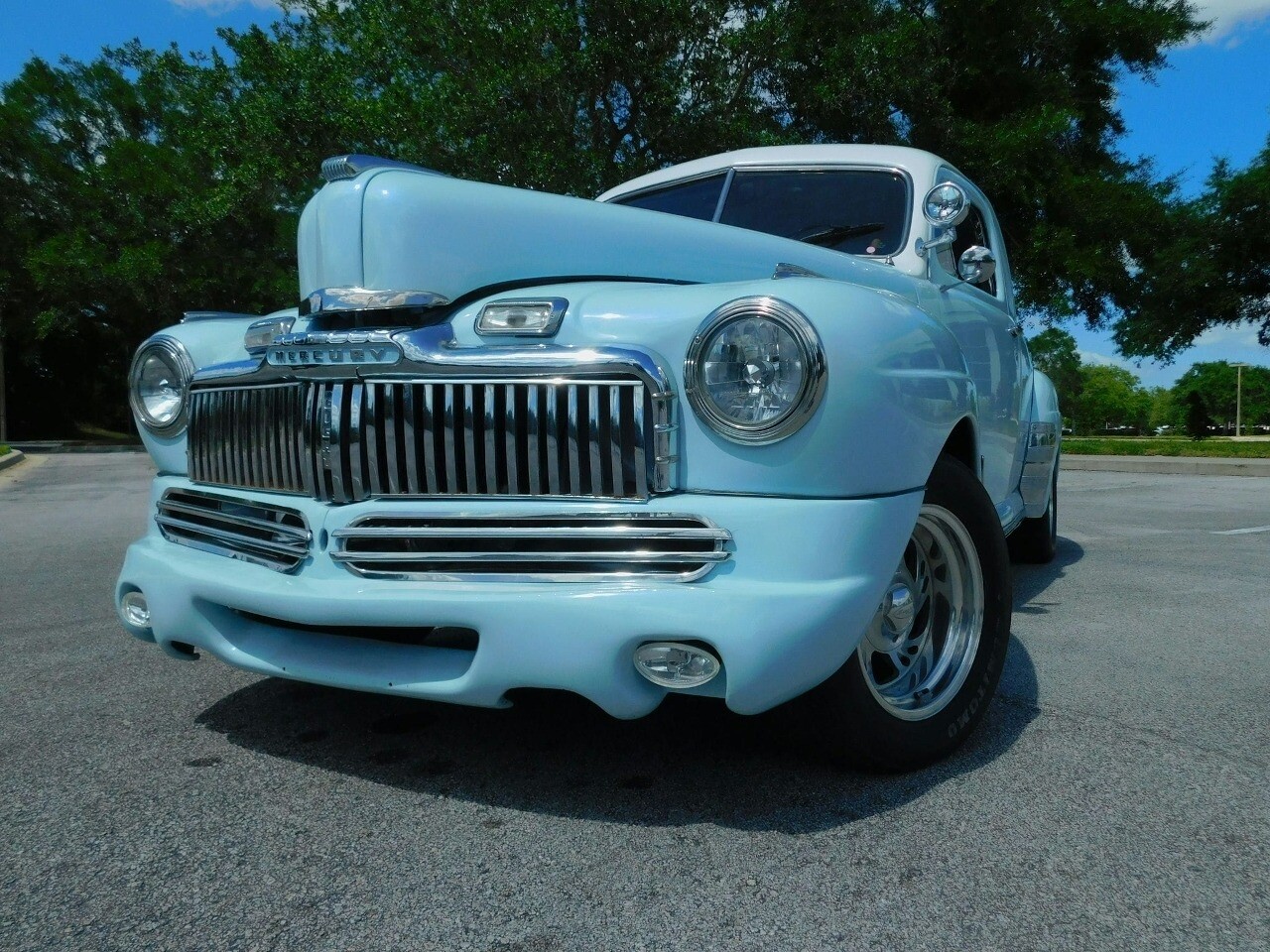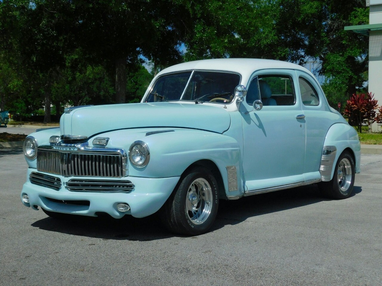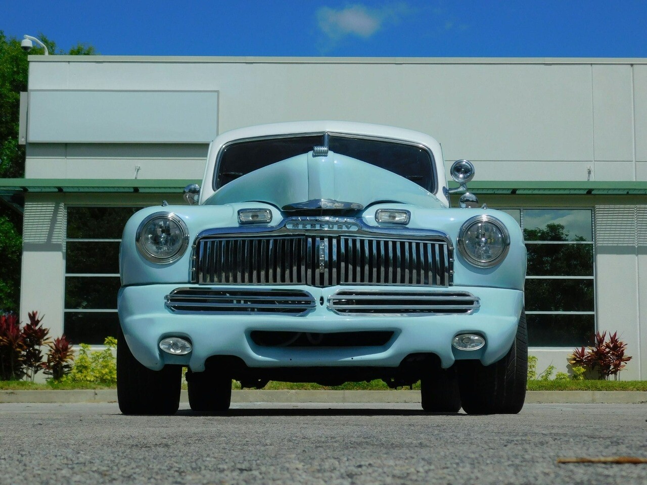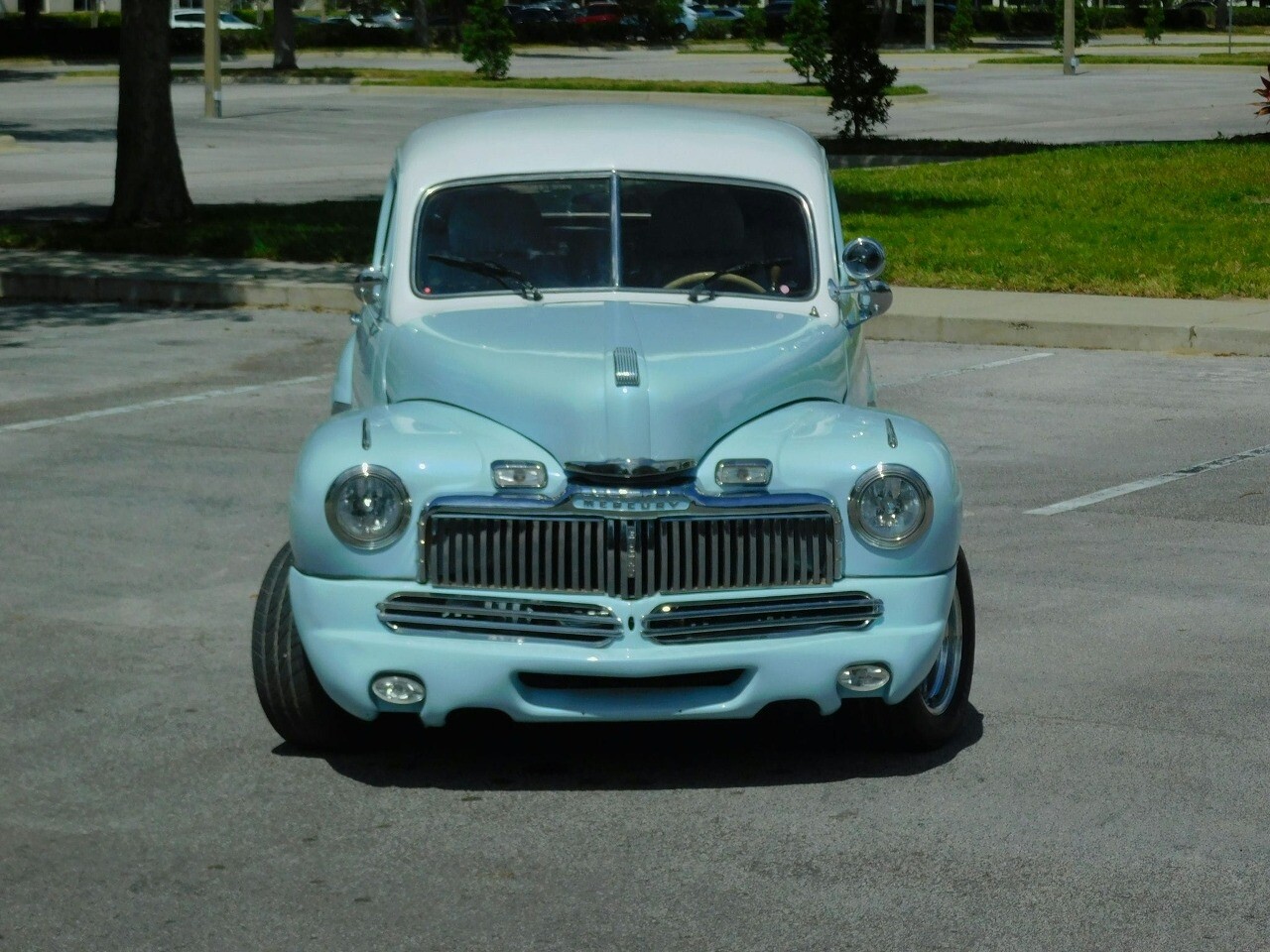 In summary, this light blue 1947 Mercury Eight with its white and light blue interior, V8 engine, and automatic transmission is a remarkable blend of classic charm and modern convenience. With features like power brakes, power steering, power windows, radial tires, and a vinyl interior, this vehicle is a choice for those who appreciate the elegance of a bygone era combined with the comforts of today..