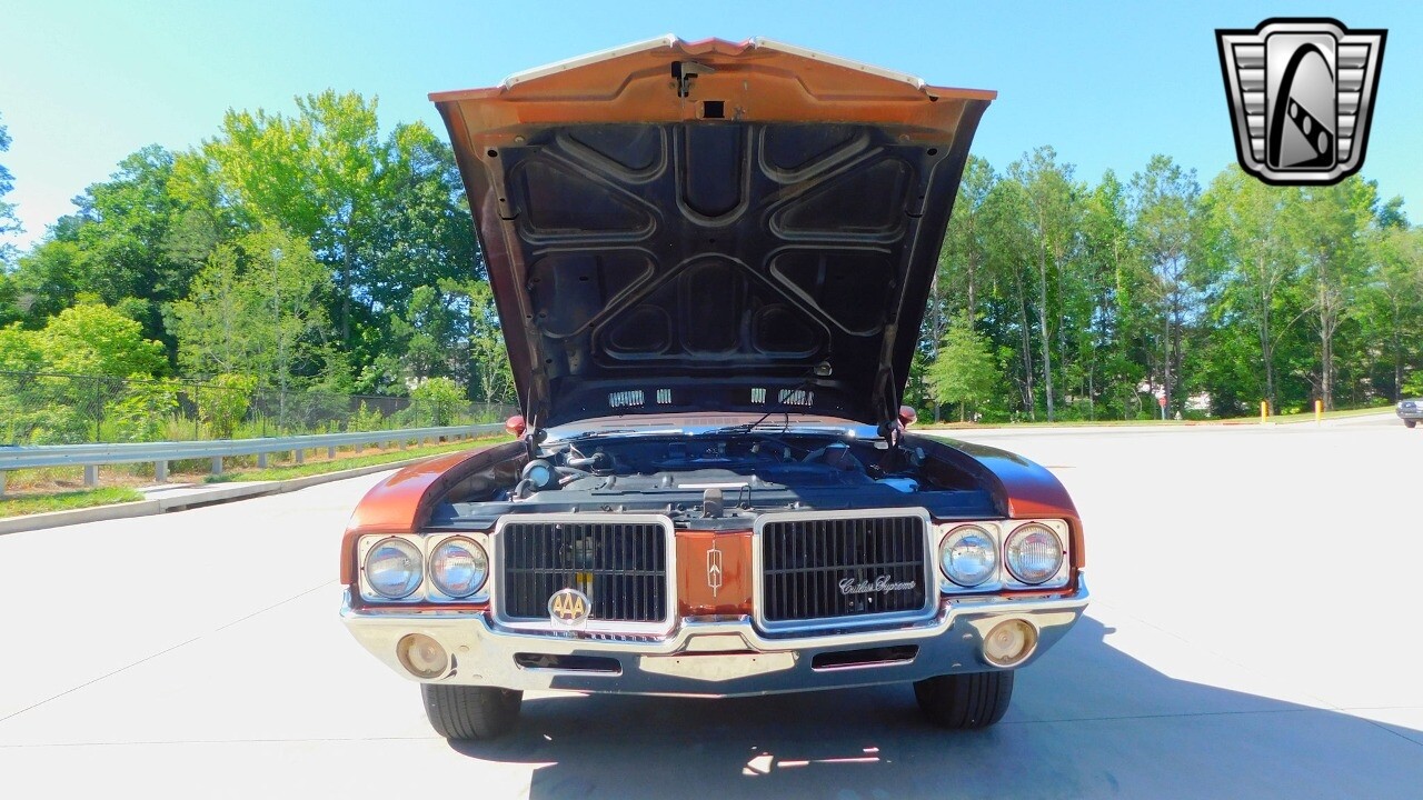 Gateway Classic Cars of Atlanta presents this 1971 Oldsmobile Cutlass, in a striking Copper Metallic exterior. This vintage beauty is powered by the famous Rocket 350ci V8 engine, paired with an automatic transmission, ensuring a smooth and powerful driving experience.