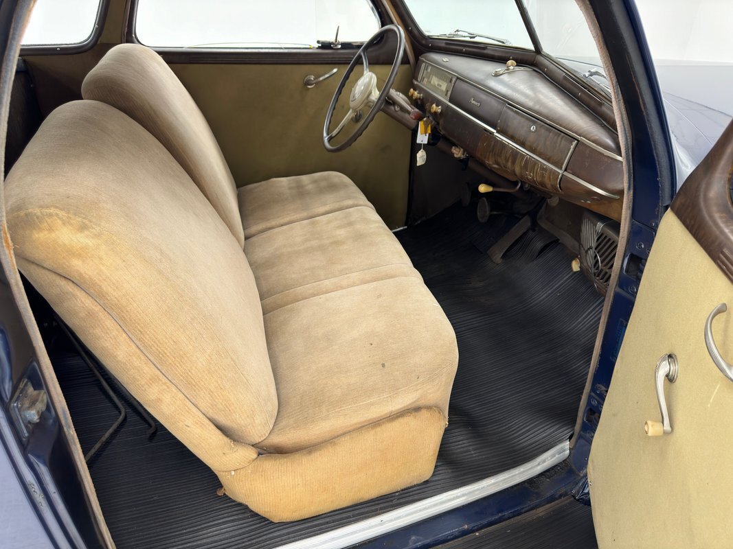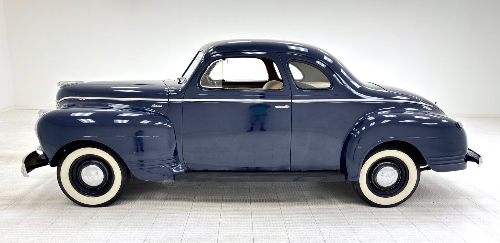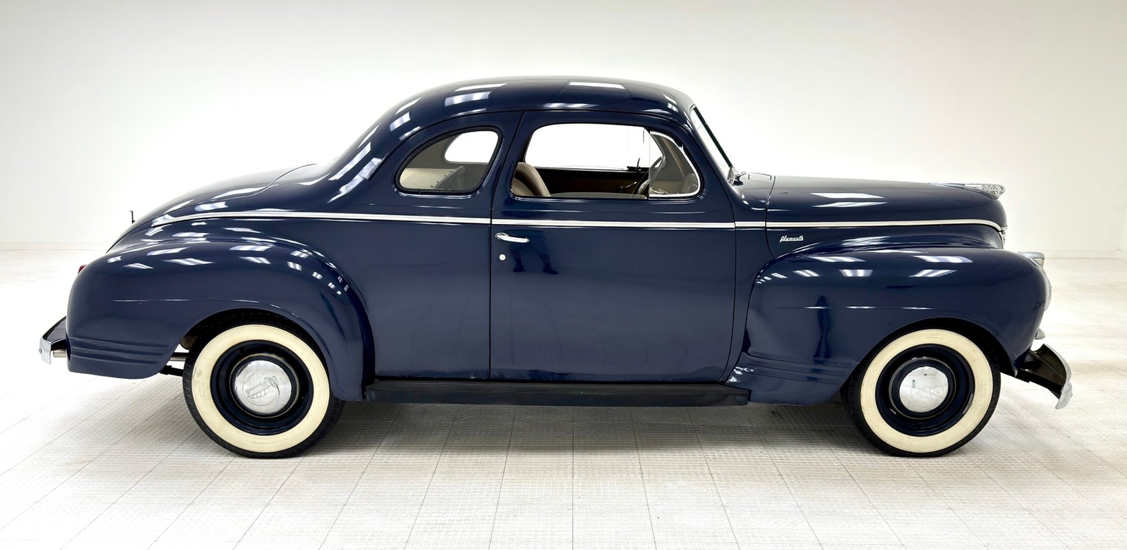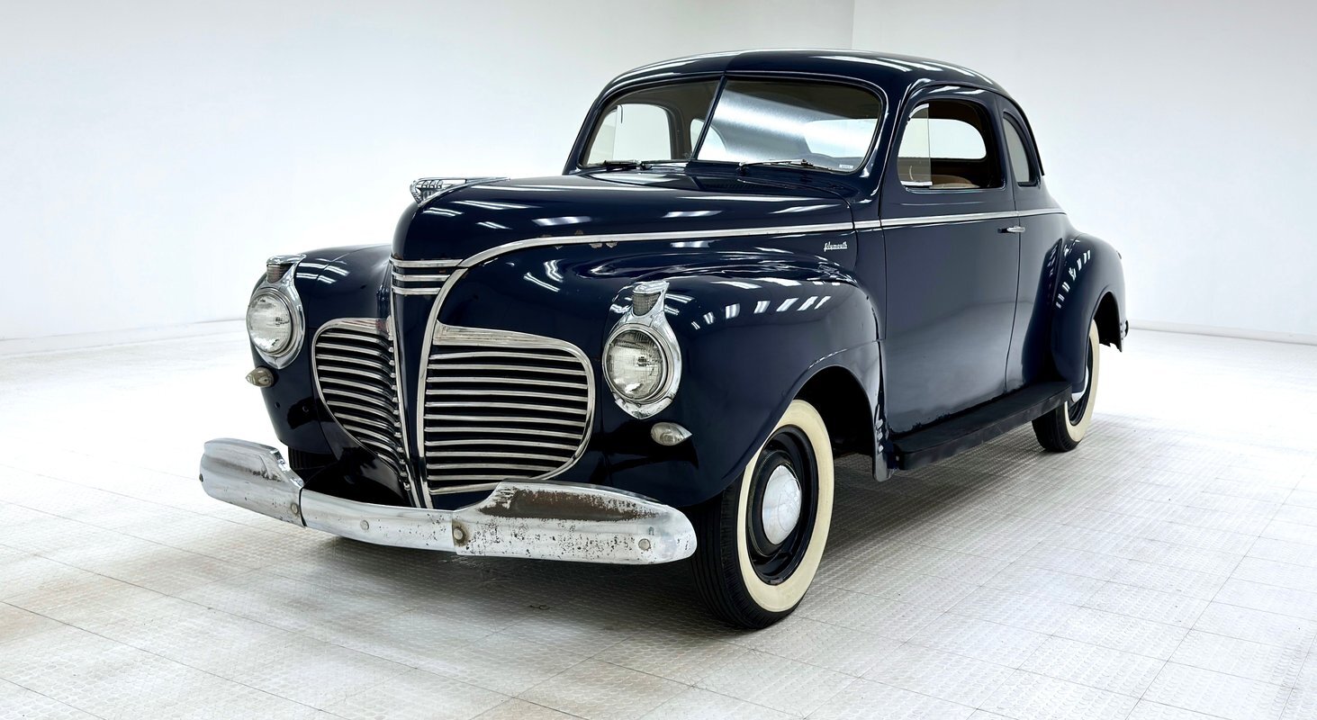 For consignment, a 1941 Plymouth P11 Business coupe representing a time in America when products were demonstrated and purchased in person, presented by traveling salesmen who might even knock on your door with a trunk full of wares to show you. Business coupes were two door vehicles with front seats only, storage behind the seats and of course, a large trunk.