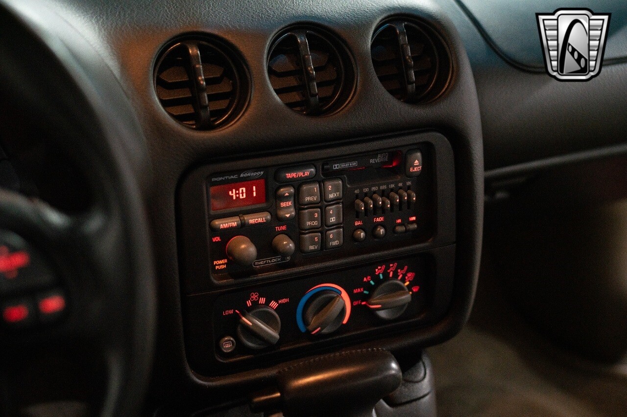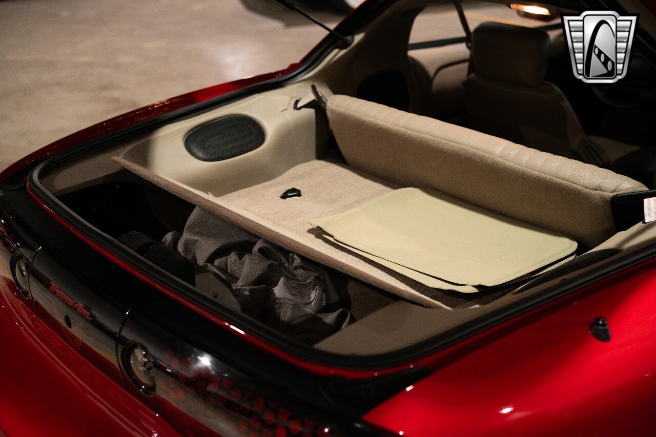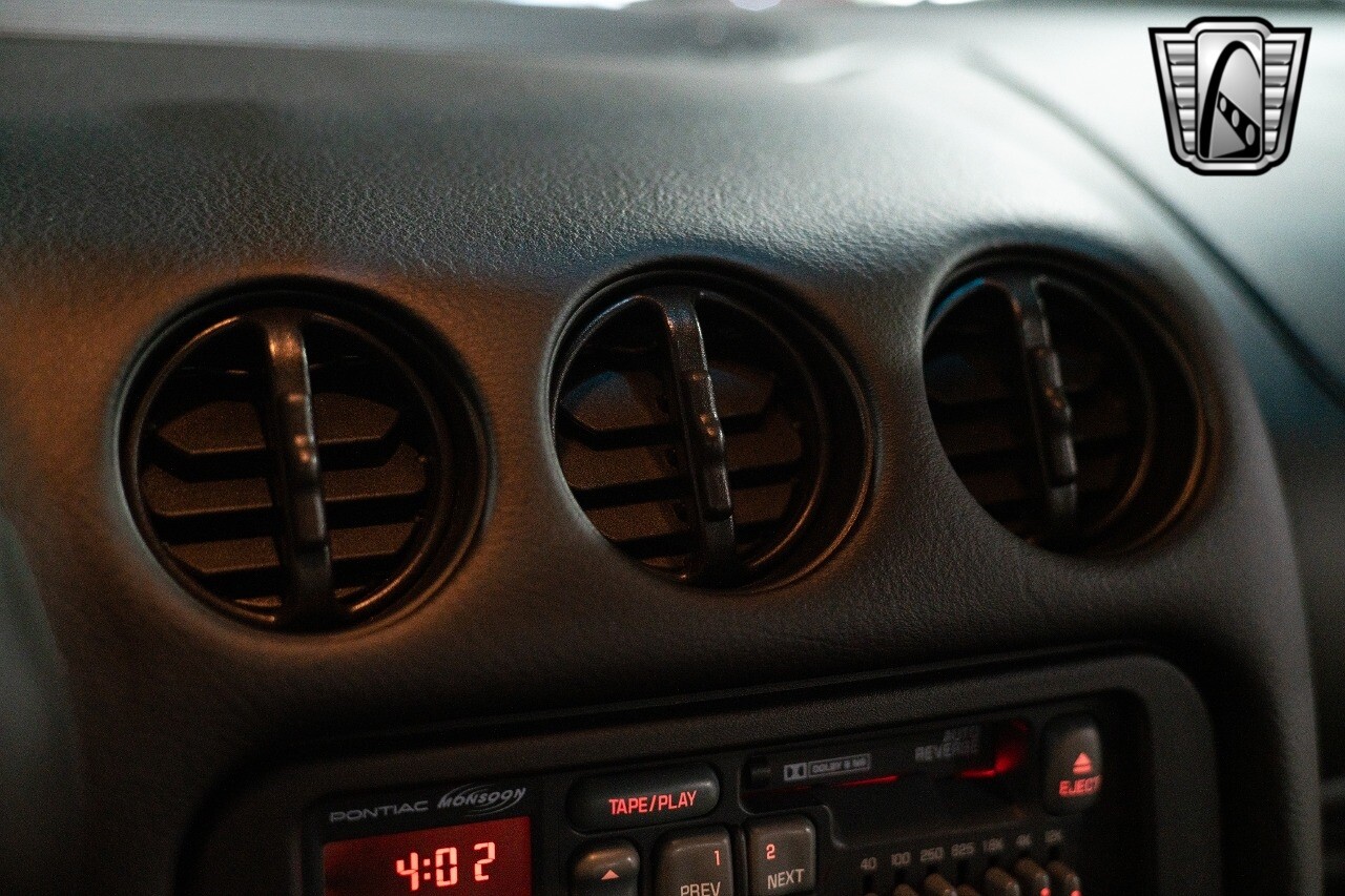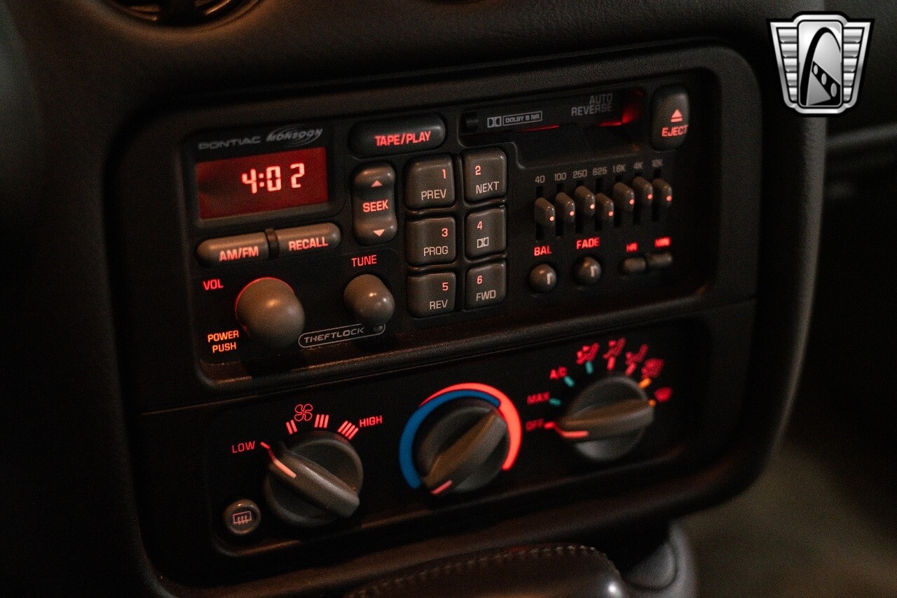 Designed for comfort and convenience, this Pontiac Firebird Trans Am is equipped with air conditioning to ensure a pleasant journey in any weather. The aluminum wheels not only enhance the car's appearance but also contribute to its agile handling. For entertainment, the vehicle features an AM/FM radio and a CD player, allowing you to enjoy your favorite tunes on the go.